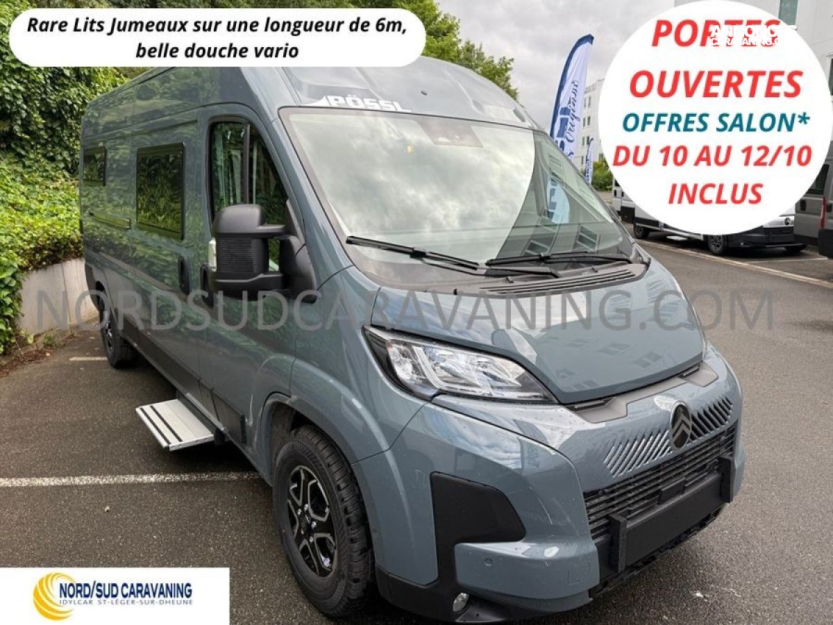 Magnifique Fourgon Compact Pössl sur Citroën Jumper, Lits jumeaux, Douche vario, Marche pied électrique…