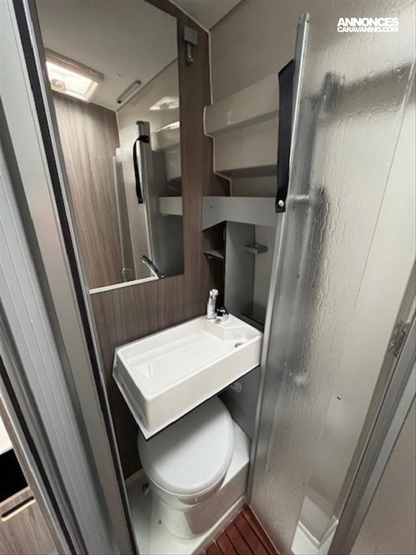 Réfrigérateur à compression 70L, Roue de secours, Régulateur de vitesse, Marchespieds électrique grande largeur, ABS/TCS/ESP, Table dinette amovible, Verrouillage centralisé, Caméra de recul, Rétroviseurs électriques et chauffants, Vitres teintées électriques, Airbag conducteur & passager, Autoradio commandes au volant, Cliamtisation manuelle, Douchette ext. porte latérale