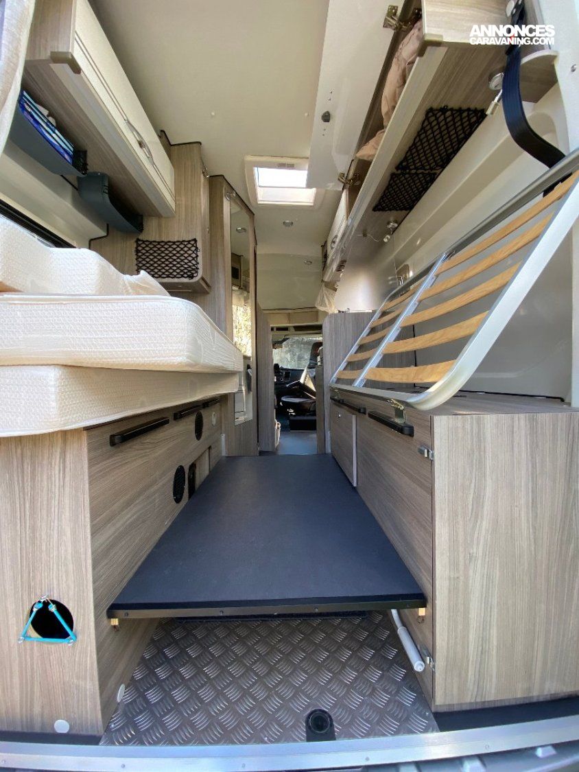 3 couchages( lit arrière 1880x1370 sommier lattes, lit amovible avant : 1770x1060)
