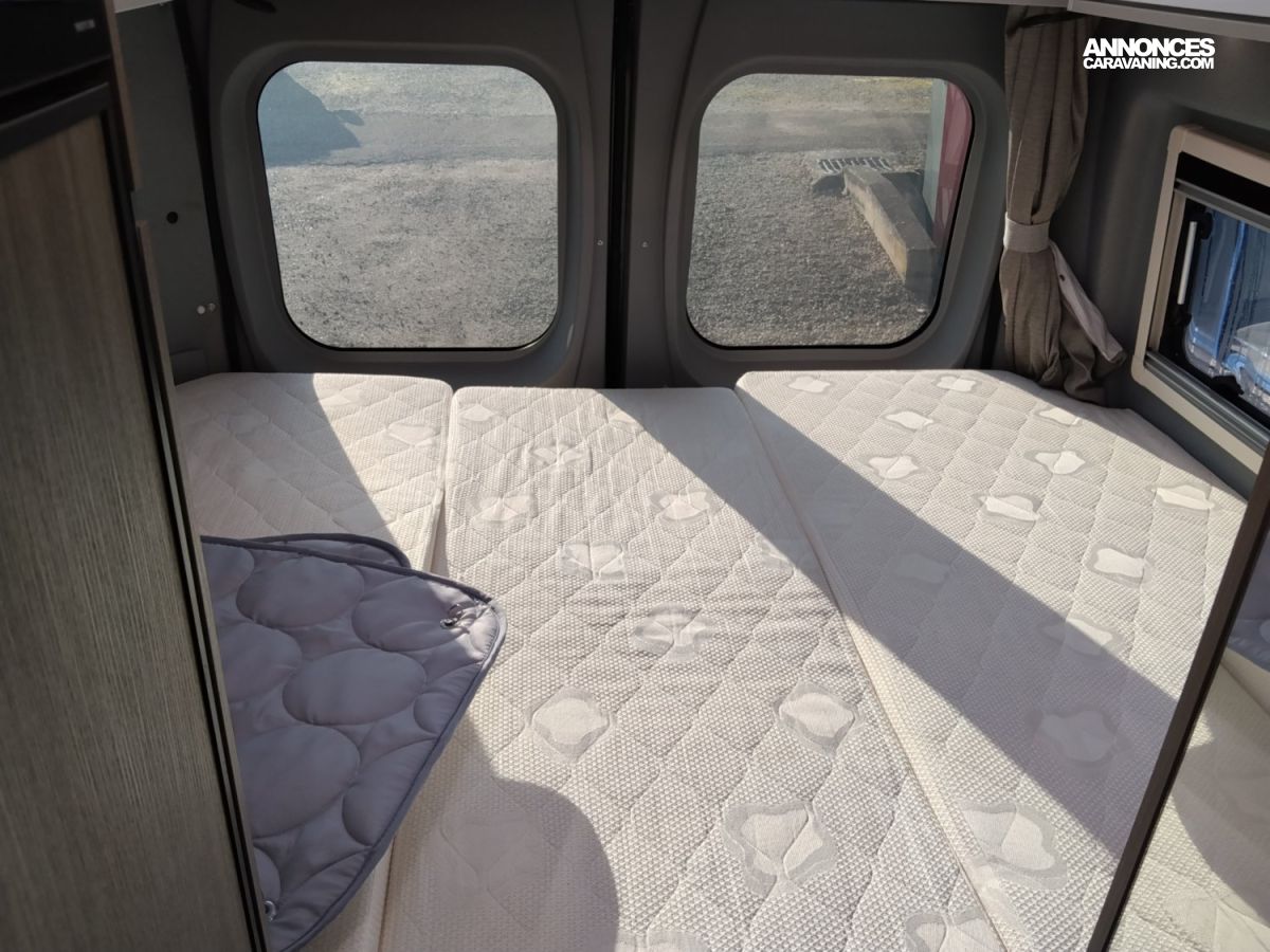 BATTERIE LITHIUM, PEINTURE GRIS FER, REFRIGERATEUR 138 LT, STORE EXTERIEUR, PANNEAU SOLAIRE, MARCHEPIED ELECTRIQUE, STORE D'OCCULTATION CABINE TYPE REMIS, MULTIMEDIA + CAMERA DE RECUL, COUCHAGE DINETTE, MOUSTIQUAIRE DE PORTE CELLULE