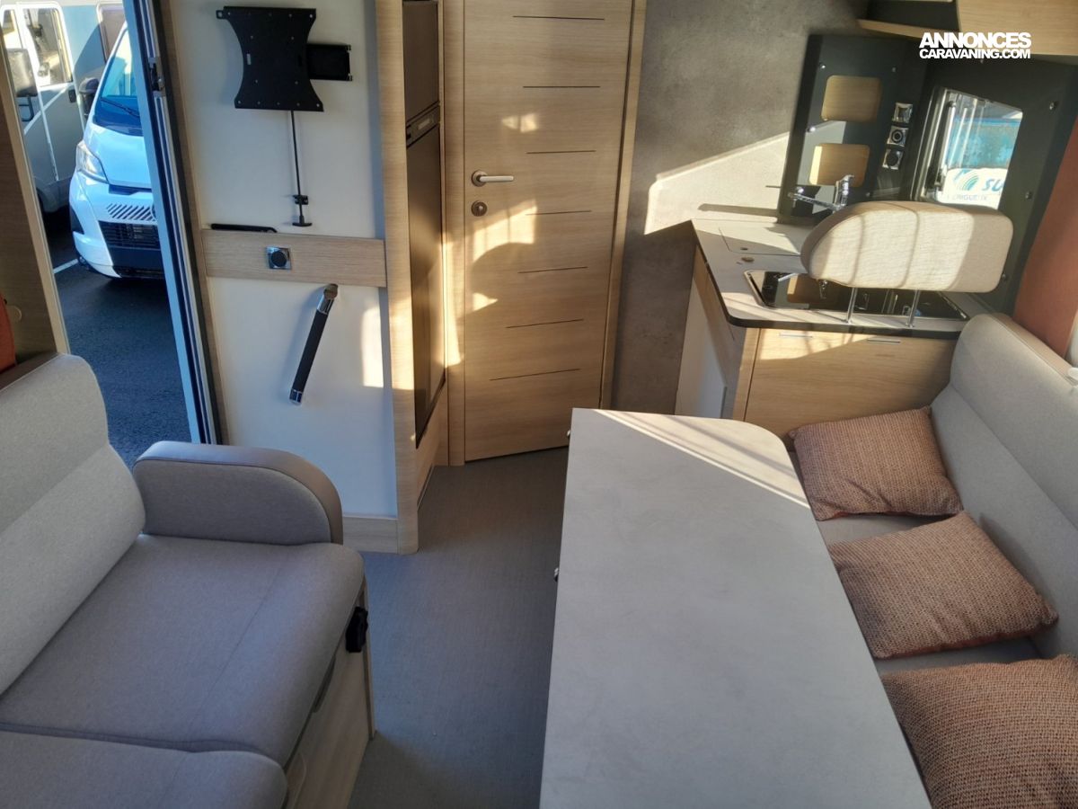 skyview, Truma combi 4 gaz avec CP Plus, double DIN Pioneer, hotte, occultants/moustiquaires, caméra de recul, attelage, store+ LED automatique, panneau solaire, antenne 4G+support TV, frigo 156L, grande soute éclairée et chauffée, dressing XXL, lit et table électrique, sanitaire séparé spacieux et lumineux, salon spacieux (6 pl).