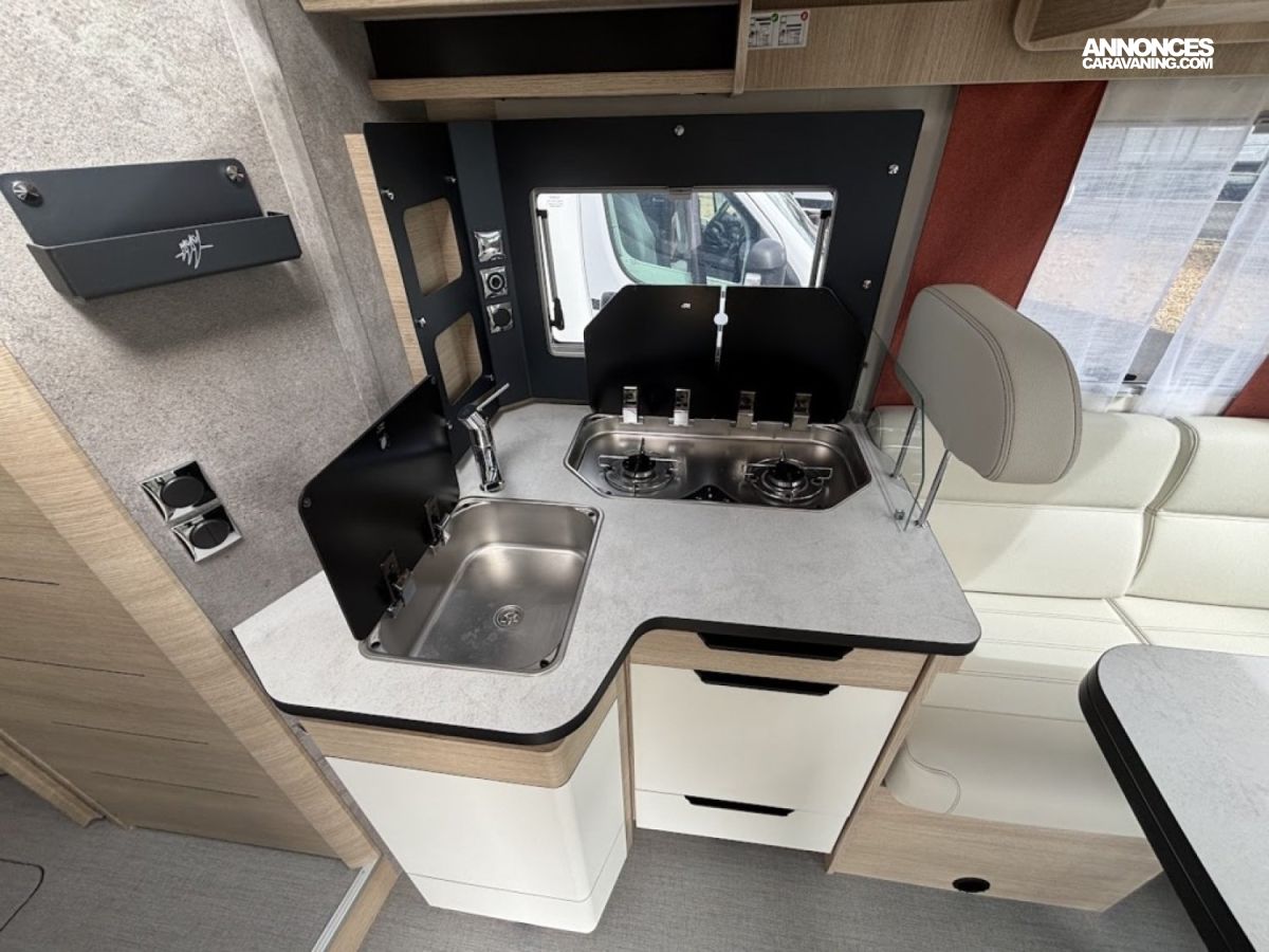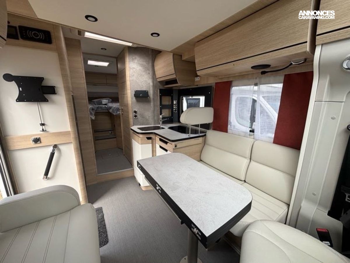 Options usine du modèle présenté :rnrnPACK SELECT : camera de recul, station CARPLAY/Radio DB, pneus all season 3pmsf, traction+ et hill descent control, commandes radio au volant, Inverseur automatique Porte cellule vitrée 2pts, Store plissée cabine, moustiquaire de porte, 2 plip …rnPack smart Fiat : jantes alliage léger 16″, volant et pommeau cuir,rnhabillage gris aluminum sur bouche d’aérationrnChauffage TRUMA Combi 6EH + Tissu MILAN + Lit pavillon electriquernBoite automatique à 8 vitessesrnrnREMISE EXEPTIONNELLE : - 5 450 €rnSoit prix total du véhicule exposé : 82 400 €