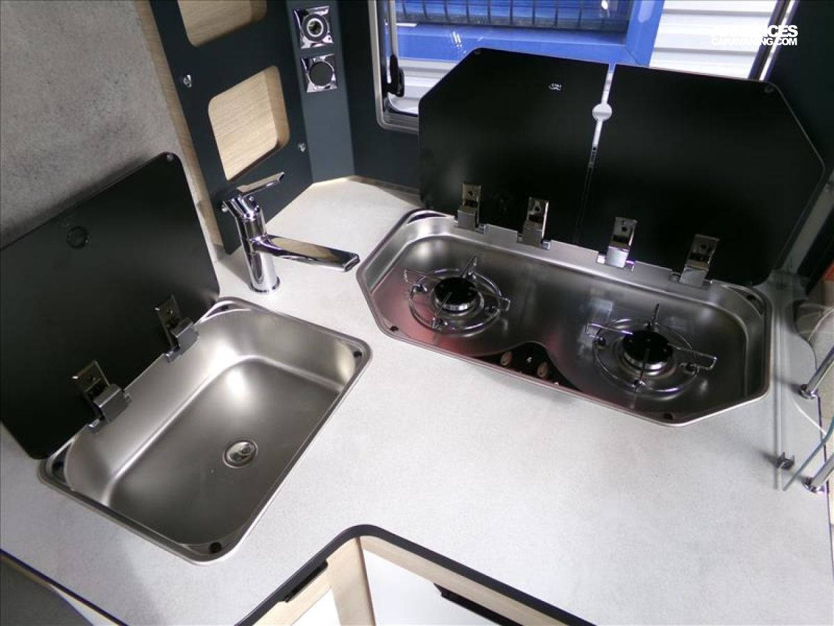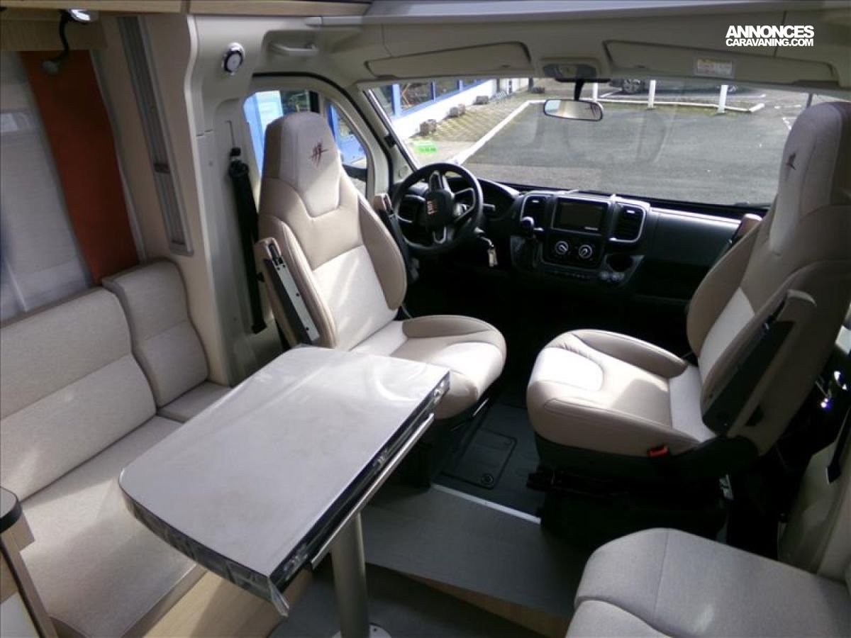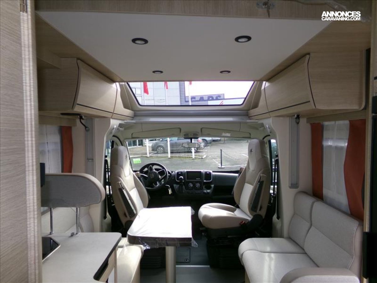 Stop & start, Verrouillage centralisé portes cellule et cabine, Toit panoramique SKYVIEW dégirvrant électriquement, Soute traversante, Chauffage truma combi4 avec cde de chauffage CP +, Soute/garage chauffé, Eclairage d'ambiance 100% led, Sommier à lattes et matelas mousse BULTEX, Evier inox, Grand réfrigérateur AES 135 L