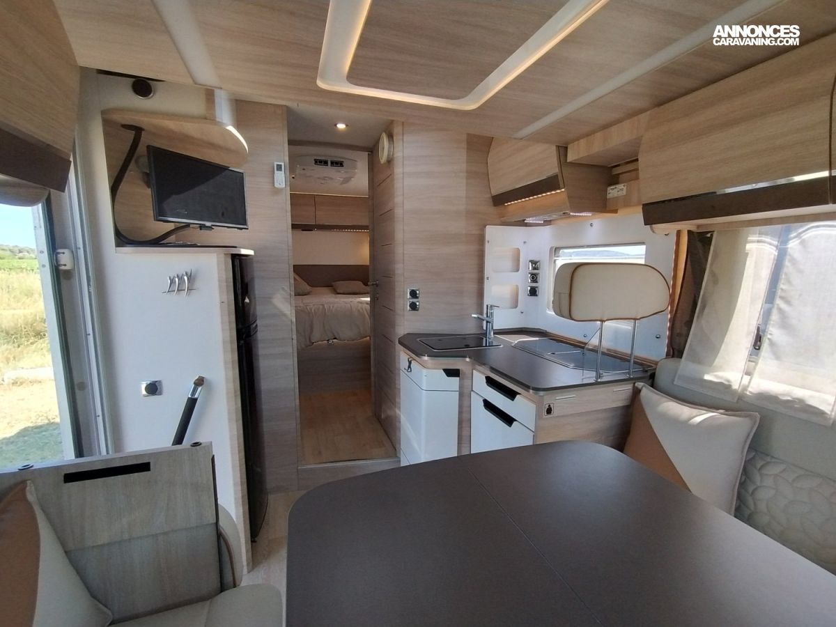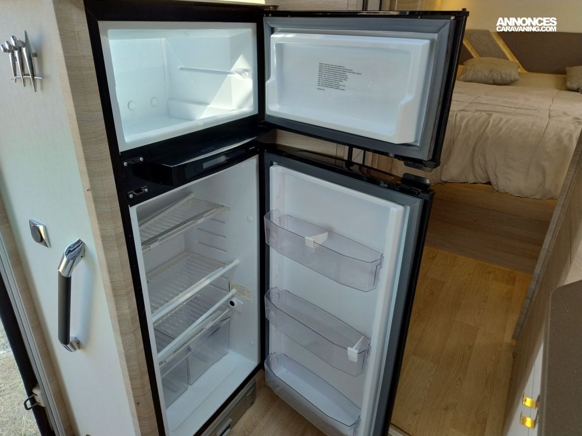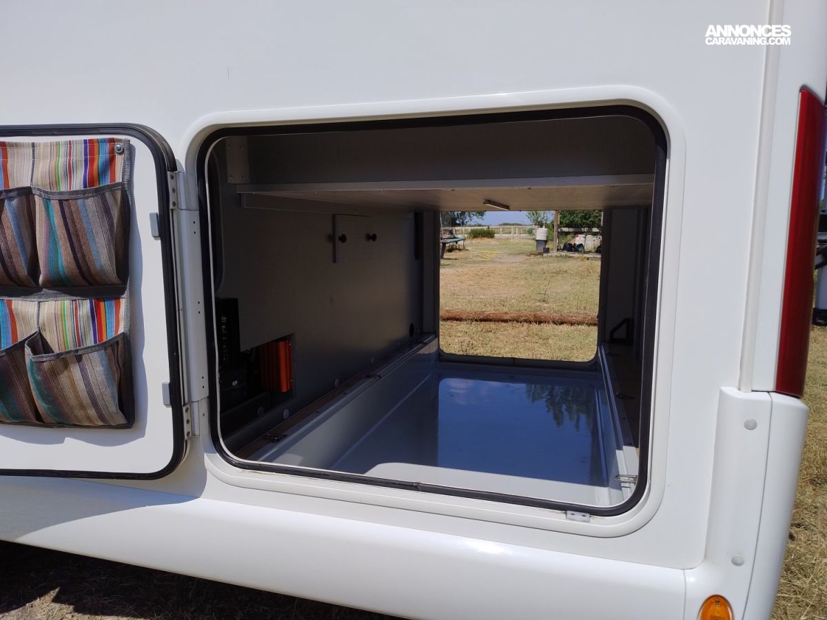 Ce véhicule est également doté de nombreux rangements, d’un chauffage Truma Combi Hybride gaz et électricité et d’une TV avec parabole automatique.
