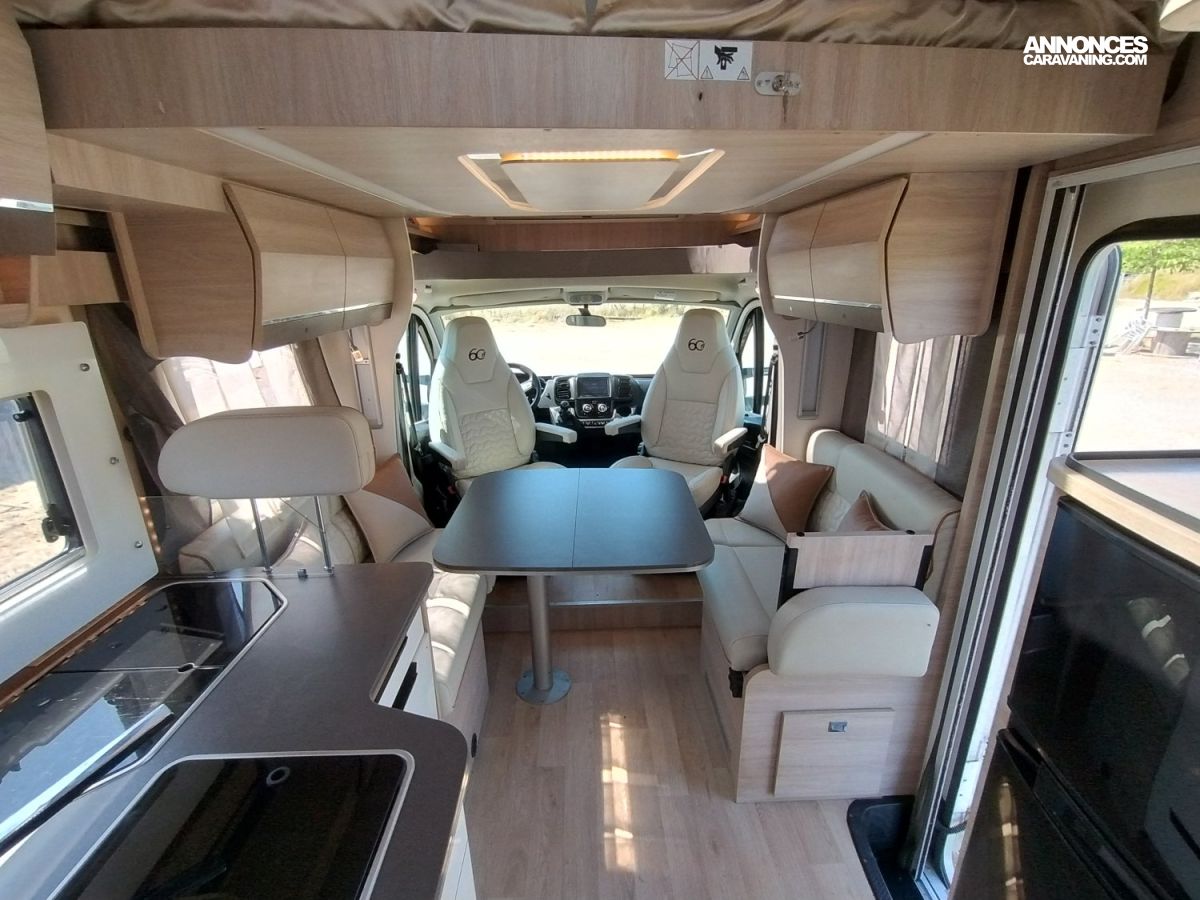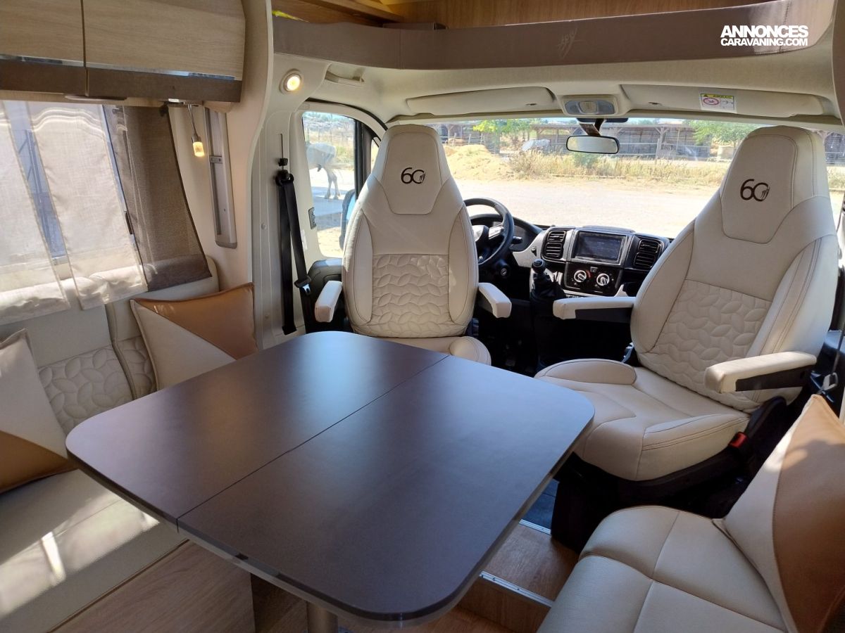 Cette édition spéciale "60 ans" se distingue par ses finitions intérieures soignées, son design moderne et ses équipements exclusifs. La cellule est équipée de la climatisation, idéale pour les séjours estivaux, ainsi que d’une batterie Lithium, offrant une autonomie et une performance largement supérieures aux batteries traditionnelles. Le grand salon face à face, la cuisine équipée avec grand réfrigérateur, ainsi que la salle d’eau et douche séparé, assurent un confort haut de gamme à bord.