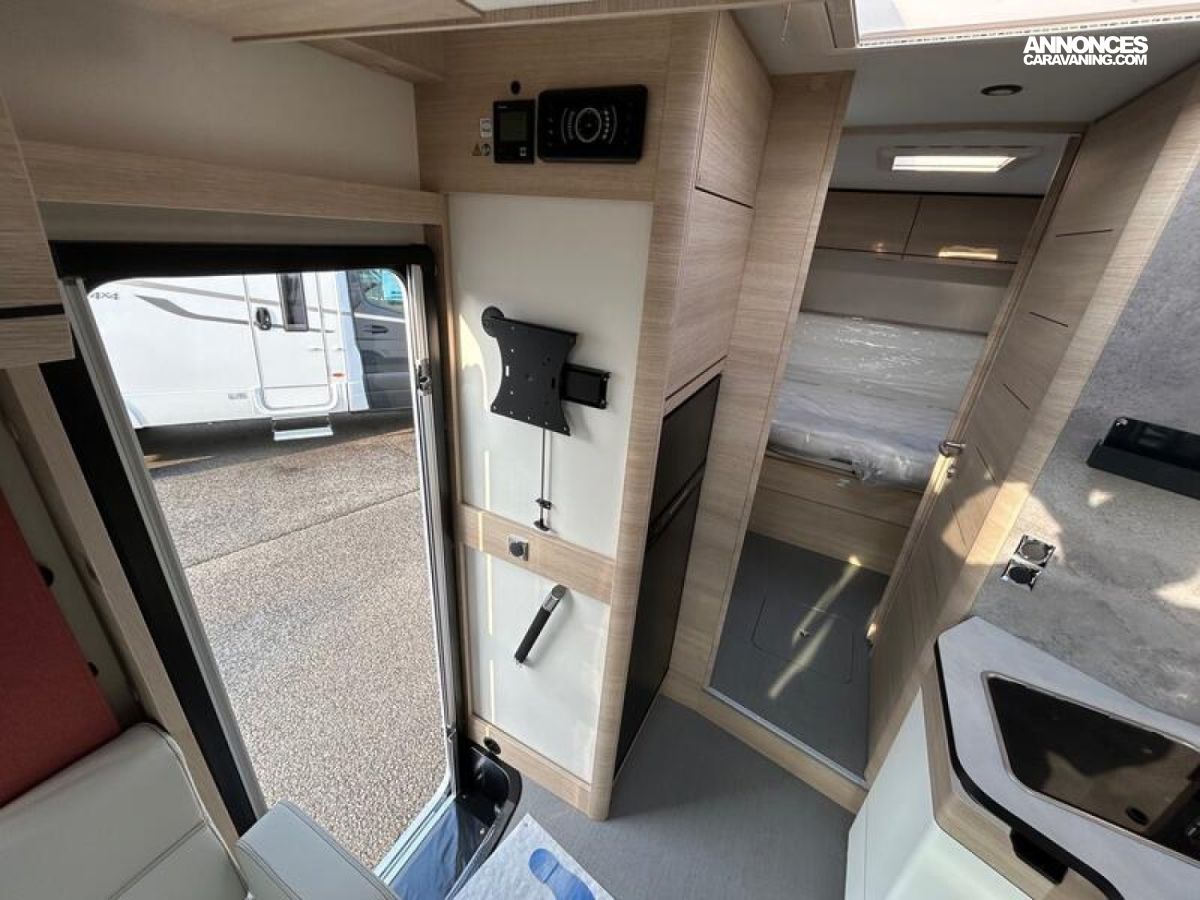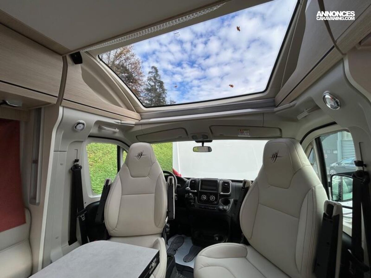 PACK SELECT •Caméra de recul intégrée avec vision nocturne •Station multimédia DAB PIONEER® avec écran 6,2" •Régulateur de vitesse avec limiteur •ESC spécial campig-car avec ASR (antipatinage), ROM (réduction du roulis) et aide au démarrage en côte •Rétroviseurs extérieurs électriques et dégivrants •Sièges cabine réglables en hauteur •Stores isothermes à abattant pour portes cabine et sur glissières pour pare-brise •Porte cellule à serrure 2 points avec baie fixe et poubelle intégrée •Moustiquaire de porte cellule •Inverseur de gaz automatique Duo Control •2e clef télécommandée (PLIP) : 4250 €