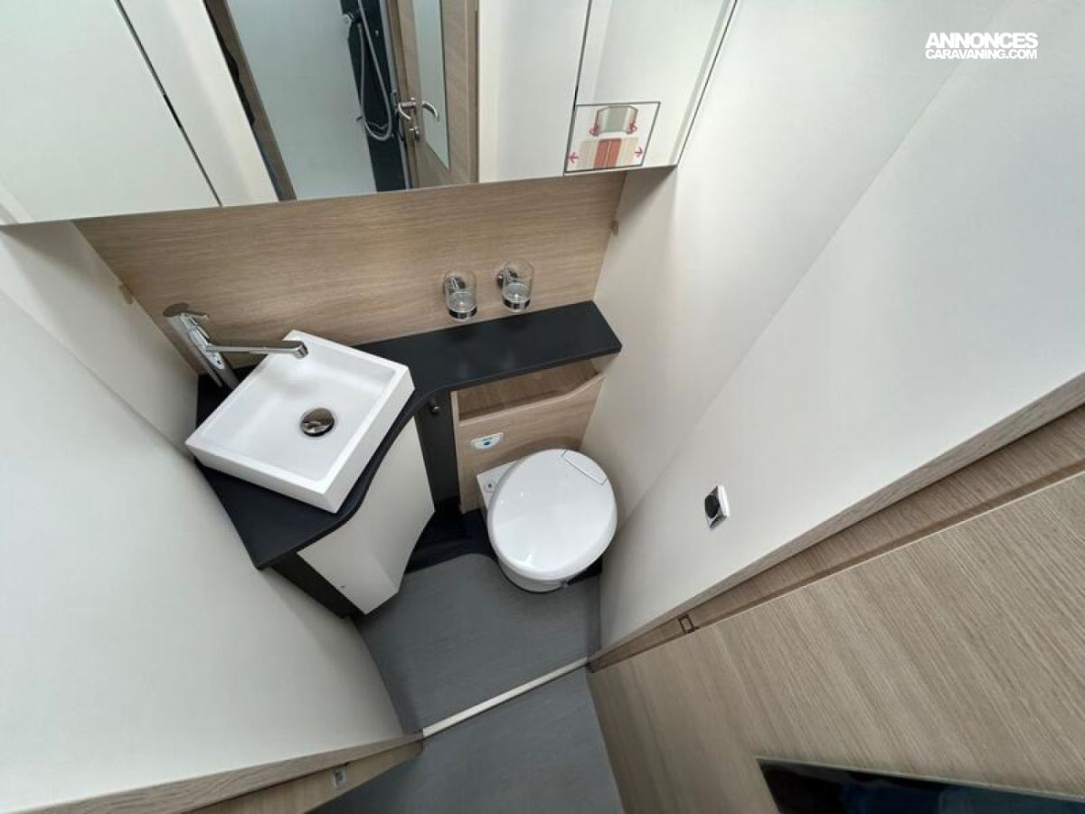 Lit permanent réglable en hauteur (≈20 cm) assisté par vérins électriques + TRUMA Combi 6 EH (gaz + électrique) avec commande de chauffage CP PLUS + Kit lino protecteur : 1850 €