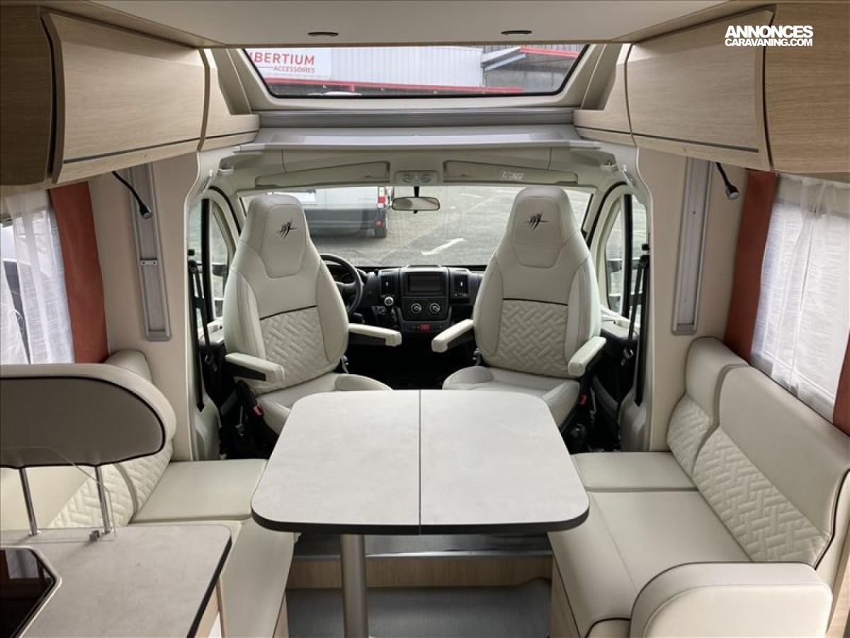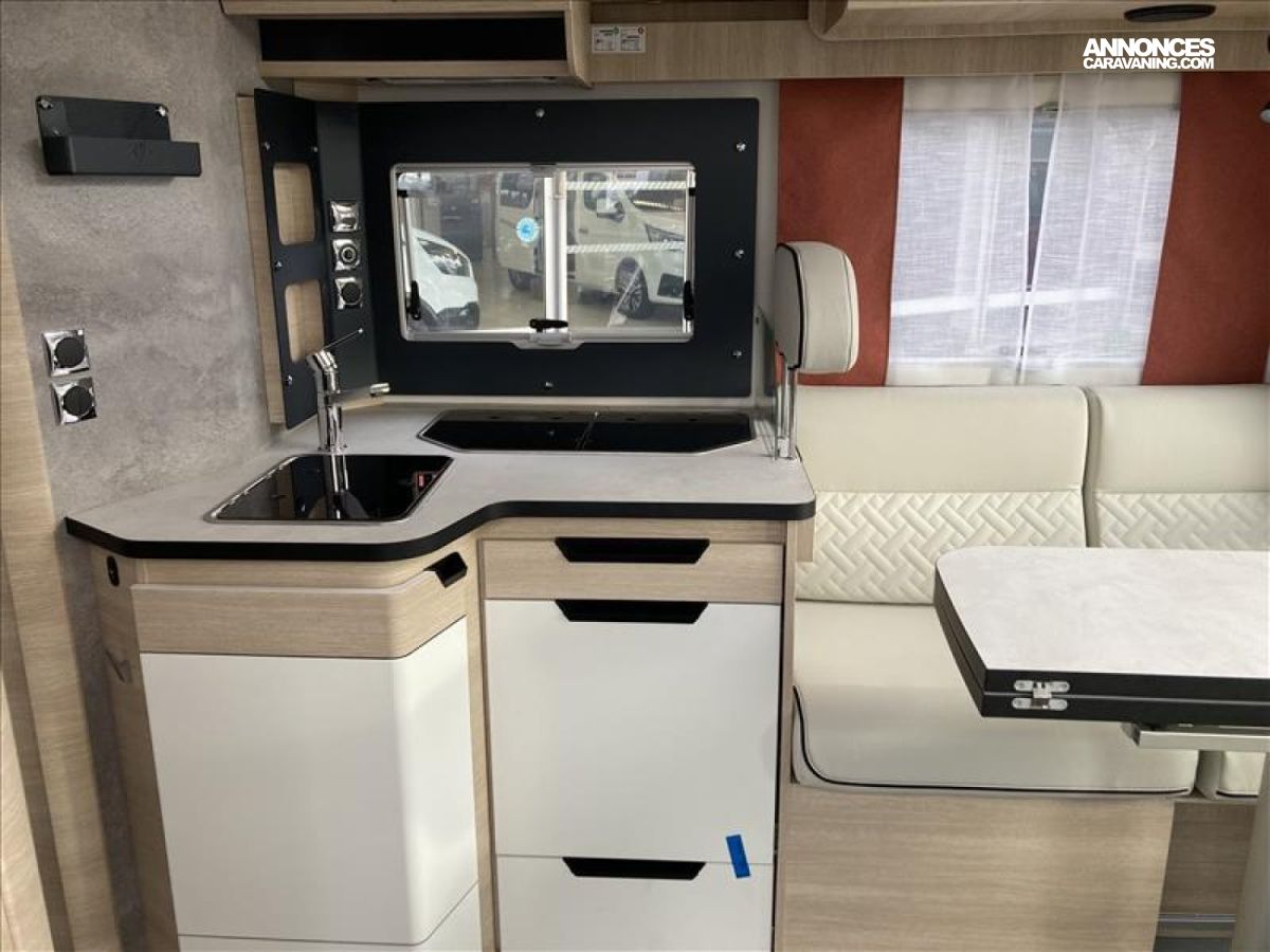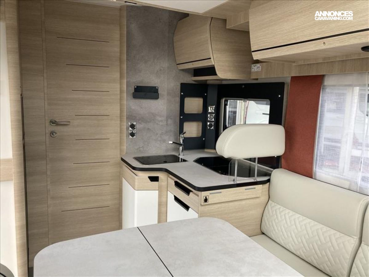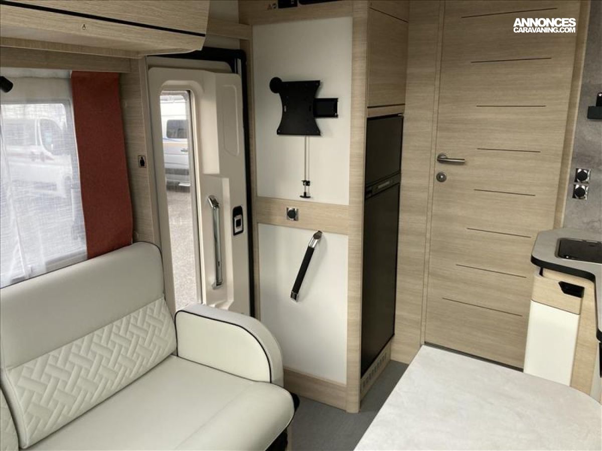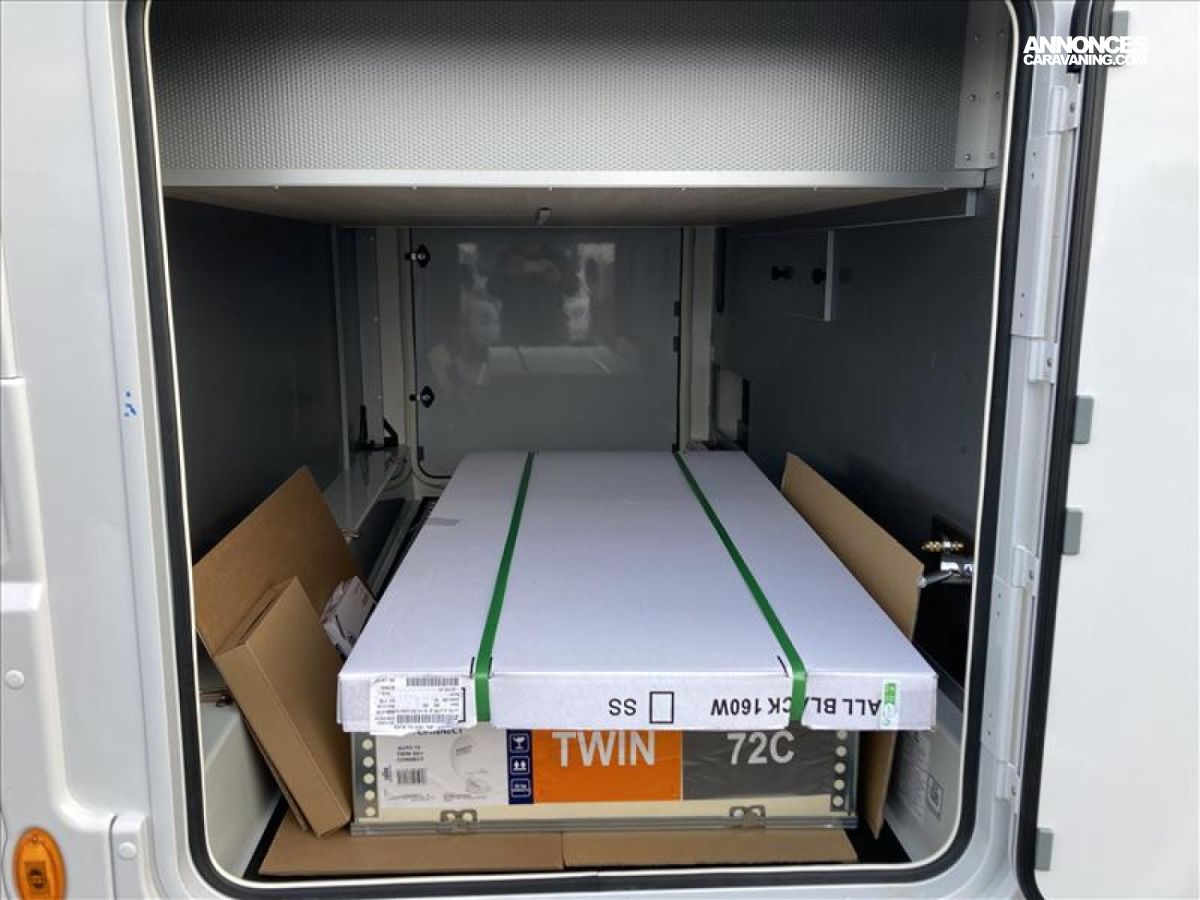 TPMS : contrôle de pression des pneus automatique, Vérouillage centralisé portes cellule et cabine, Grand réfrigérateur AES 156 L, Chauffage Truma Combi 4 avec cde CP PLUS, Système Anticrash, permet de rouler avec le chauffage gaz, Pare chocs arrière avec feux LED, Soute / garage chauffé, Rampe d'éclairage LED plafond soute, Fonction coming home avec éclairage automatique lampe auven, Stop & Start