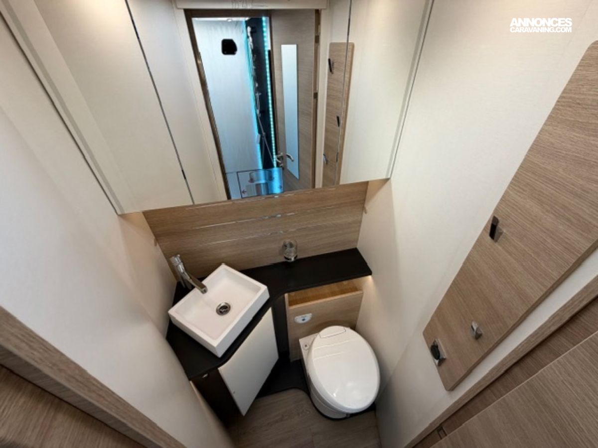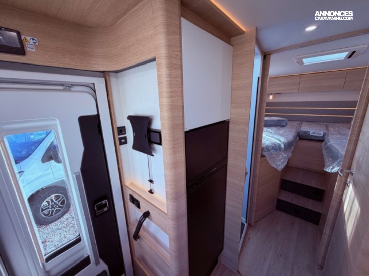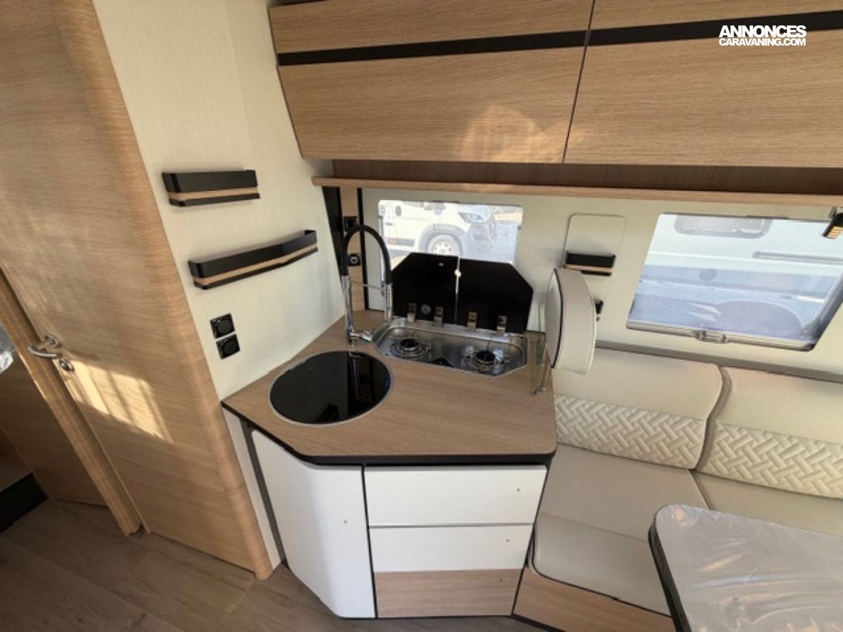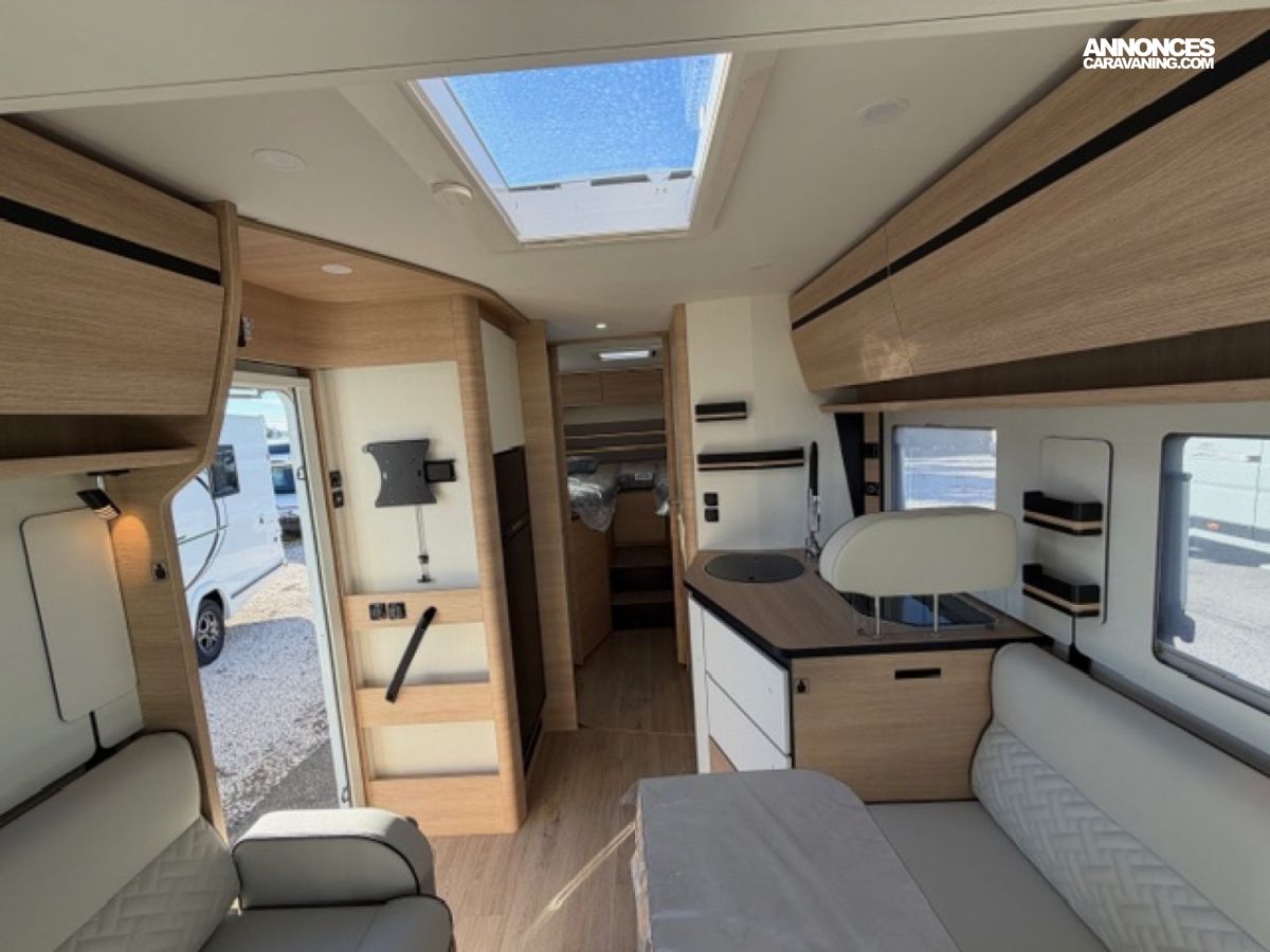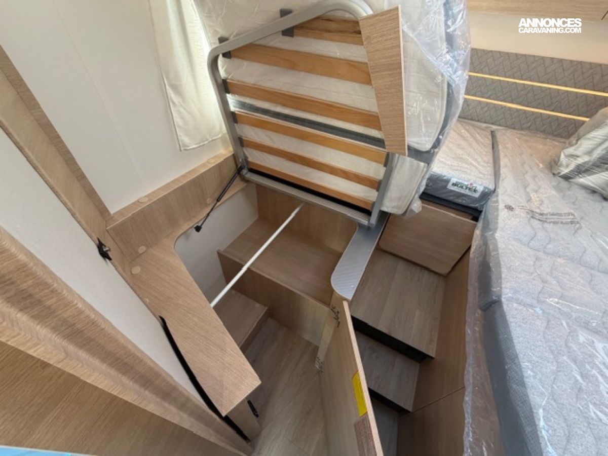 Son salon face face est configuré pour un confort optimal à 4 personnes, sa cuisine est entièrement équipée avec sa colonne frigo congélateur 156L, sa hotte aspirante et ses rangements avec condamnation centralisée.