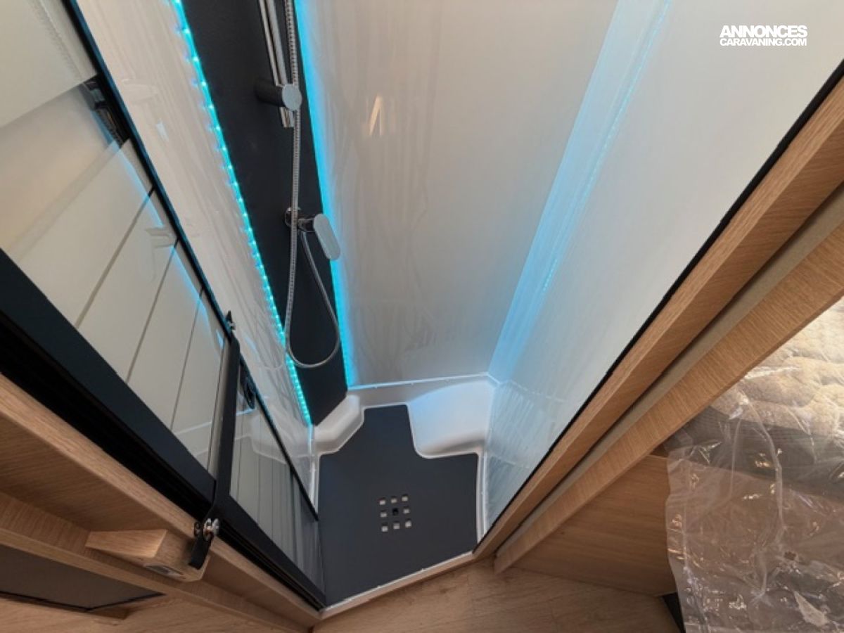 Véhicule haut de gamme s'il en est : entièrement polyester, double plancher avec de magnifiques rangements traversants, toutes les eaux hors gel et un châssis AL-KO afin d'avoir une tenue de route et un confort irréprochables !!