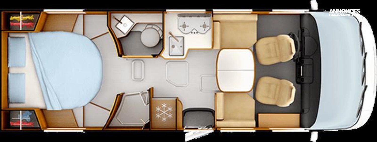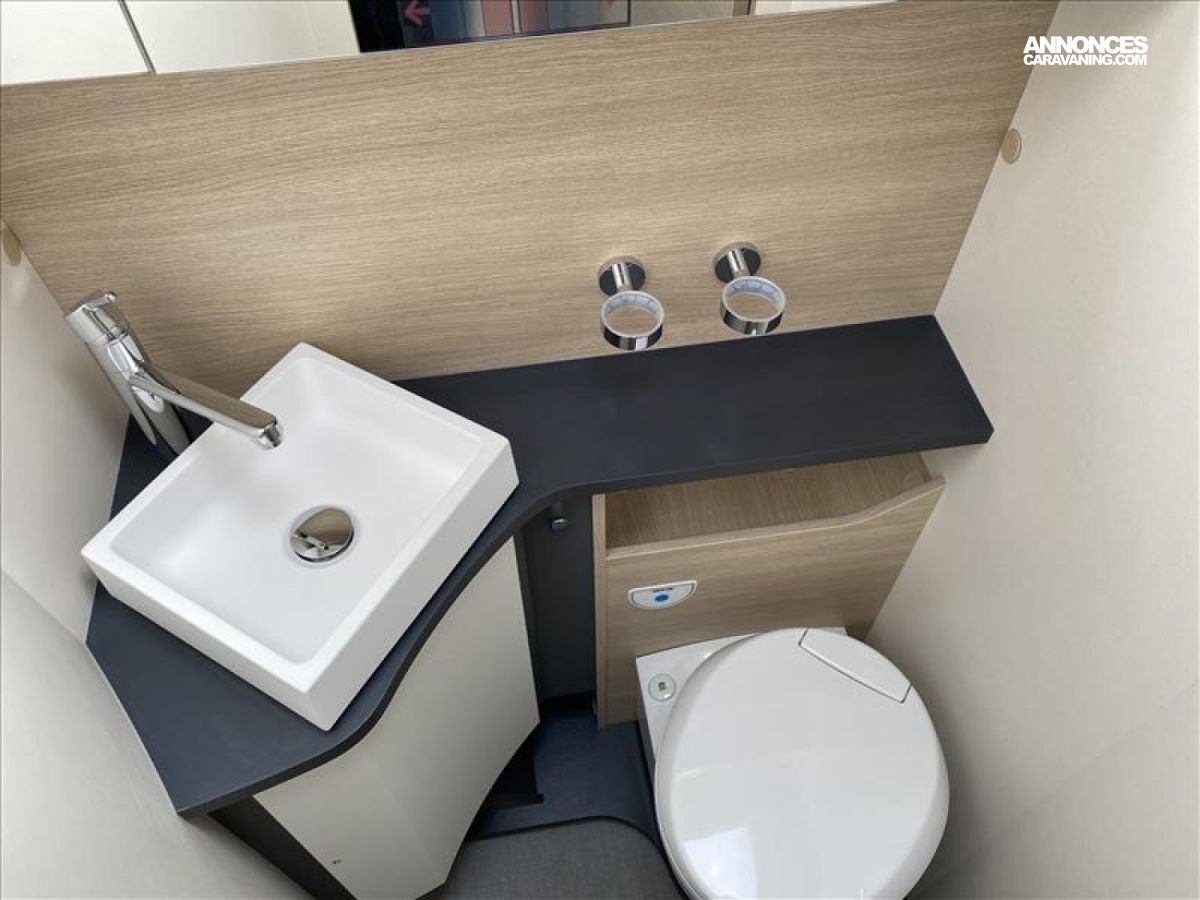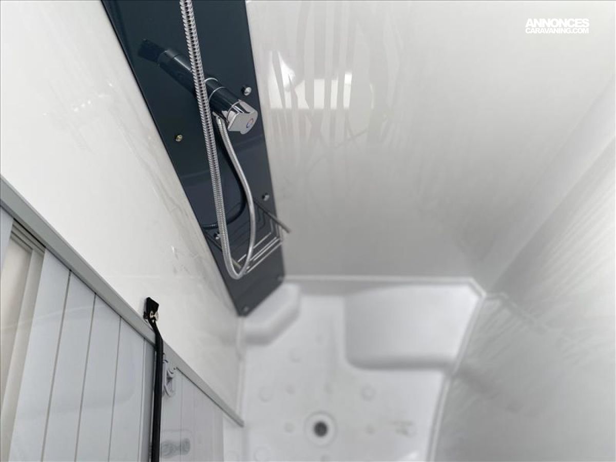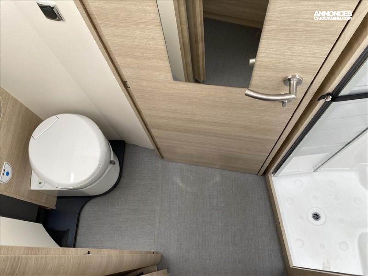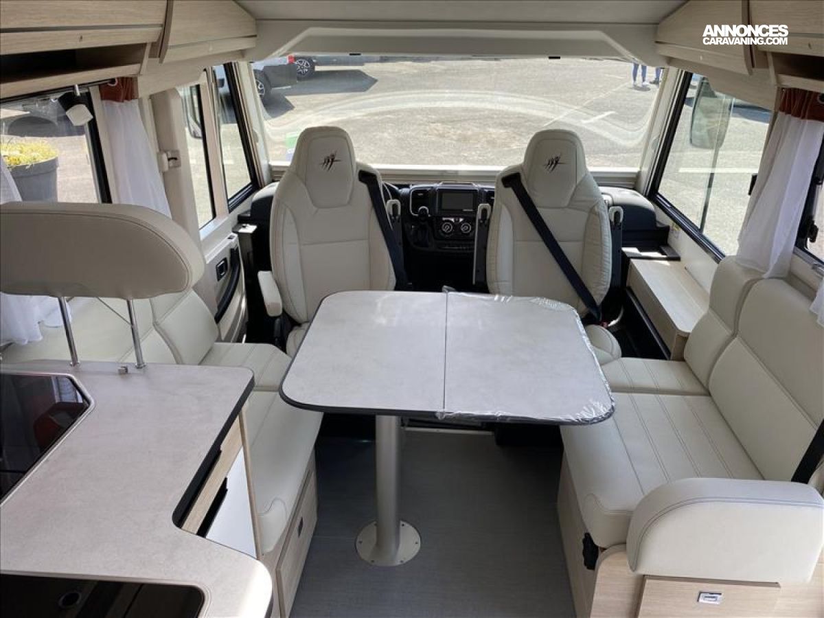 Accès double plancher intérieur/extérieur, Châssis AL-KO suspensions à roues indépendantes, Direction assistée électrique, Double plancher chauffé et éclairé, Hotte cuisine encastrée avec éclairage LED, Soute/garage chauffé, Système anticrash, permet de rouler avec le chauffage gaz, Grand réfrigérateur AES 135 L avec tiroir à bouteilles