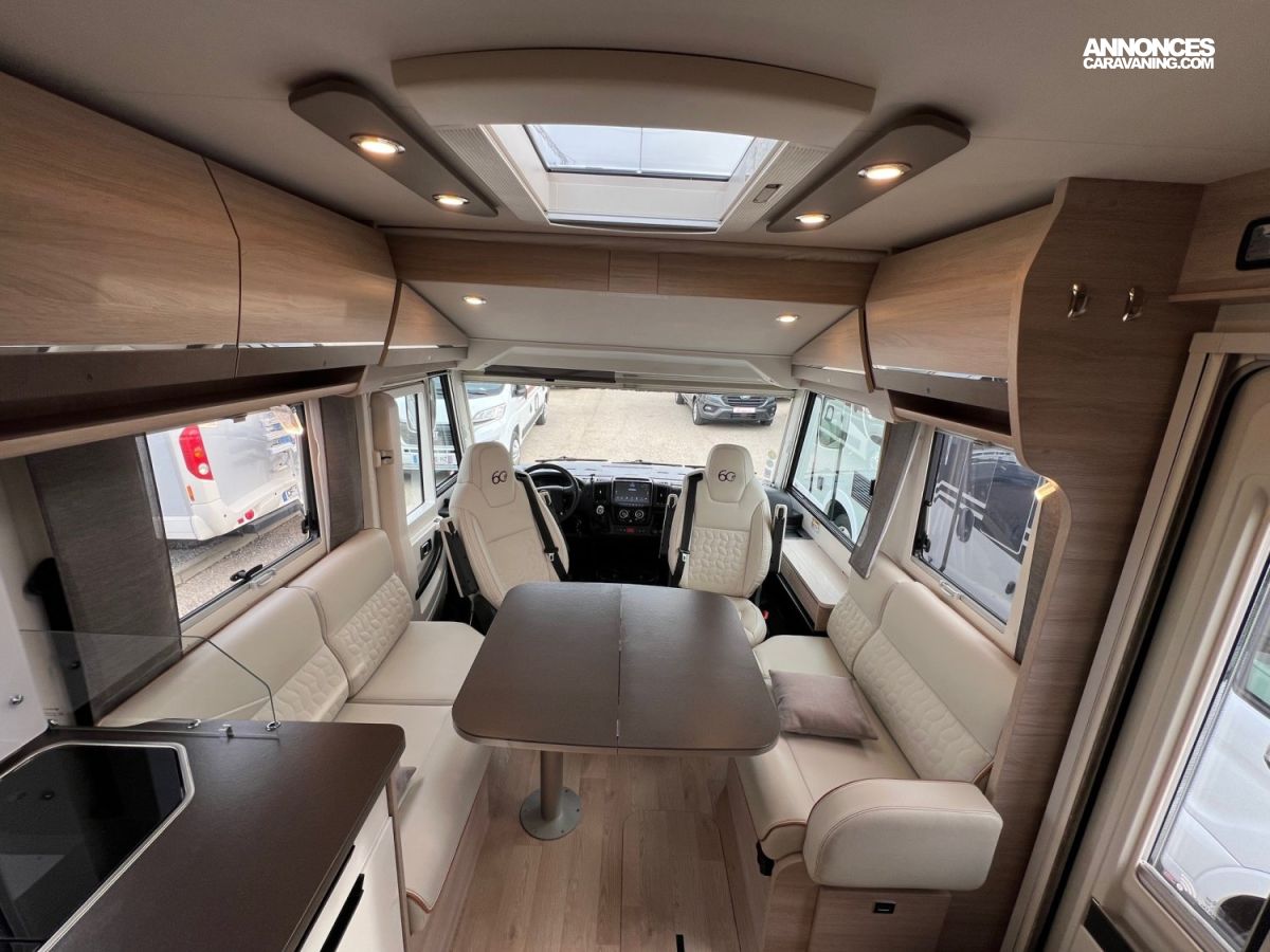 SMART TV 32", STORE EXTERIEUR, PANNEAU SOLAIRE, BATTERIE LITHIUM 150 AMP, PORTE VELOS EN SOUTE, TETE DE LIT REGLABLE, DOUBLE PLANCHER TRANSVERSANT, STORES REMIS, TRUMA 6EH, SERIGRAPHIE 60 ANS, MARCHE PIED ELECTRIQUE, CHASSIS ALKO, JANTES ALU 16", 160CV, MOUSTIQUAIRE DE PORTE, HOTTE ASPIRANTE, STATION MULTIMEDIA ALPINE, ANTENNE SAT AUTO, LIT CENTRAL REGLABLE EN HAUTEUR