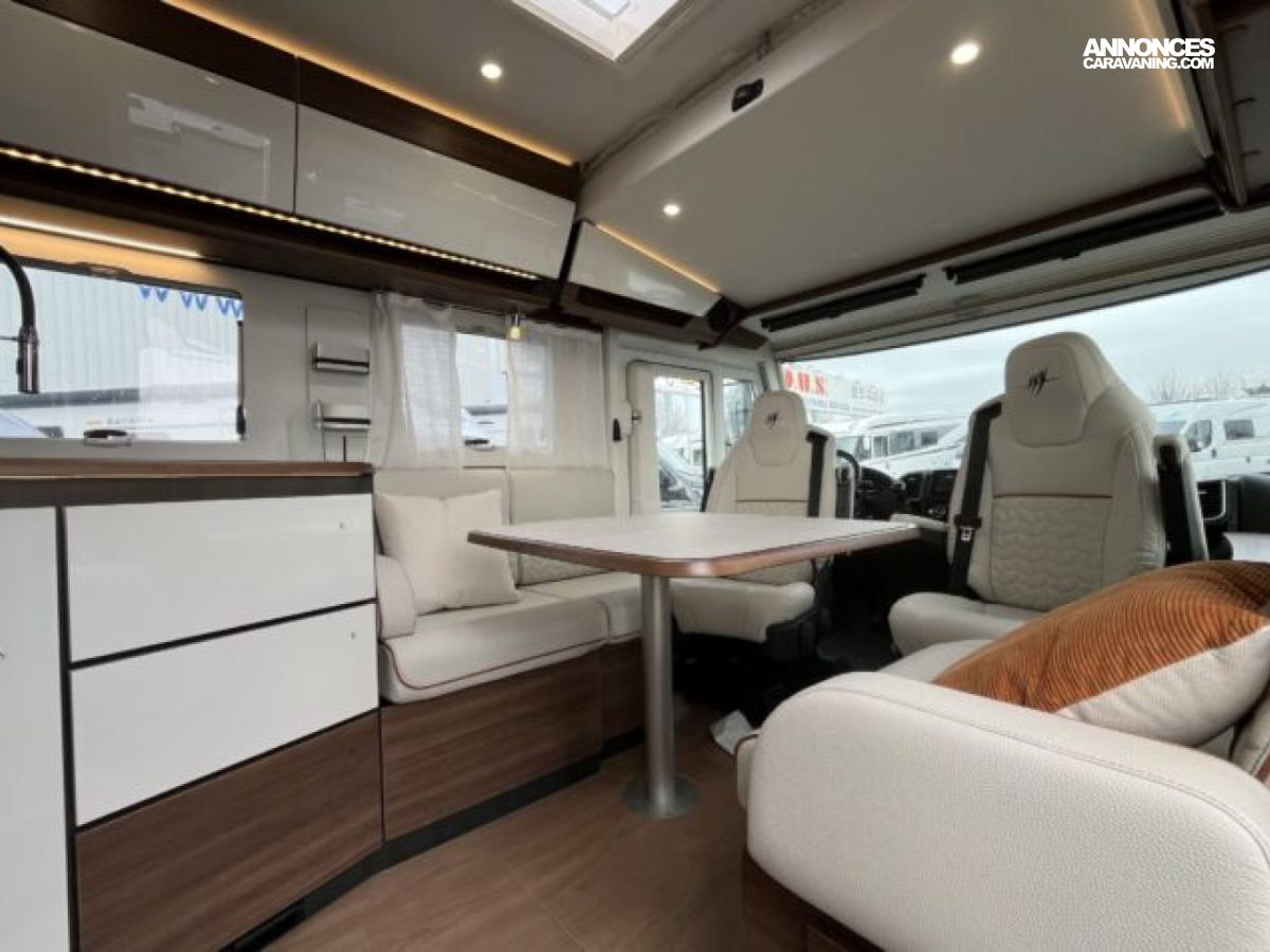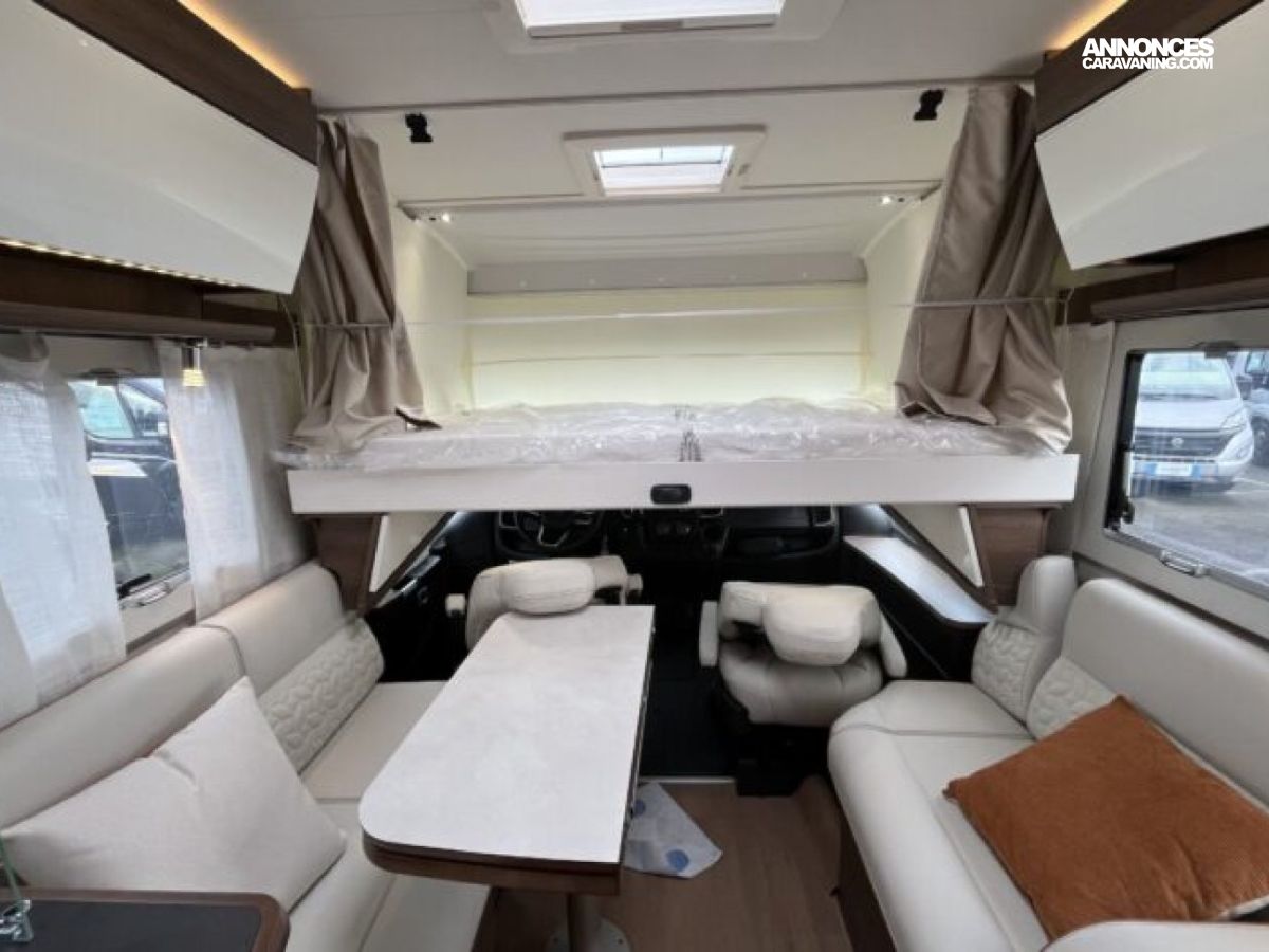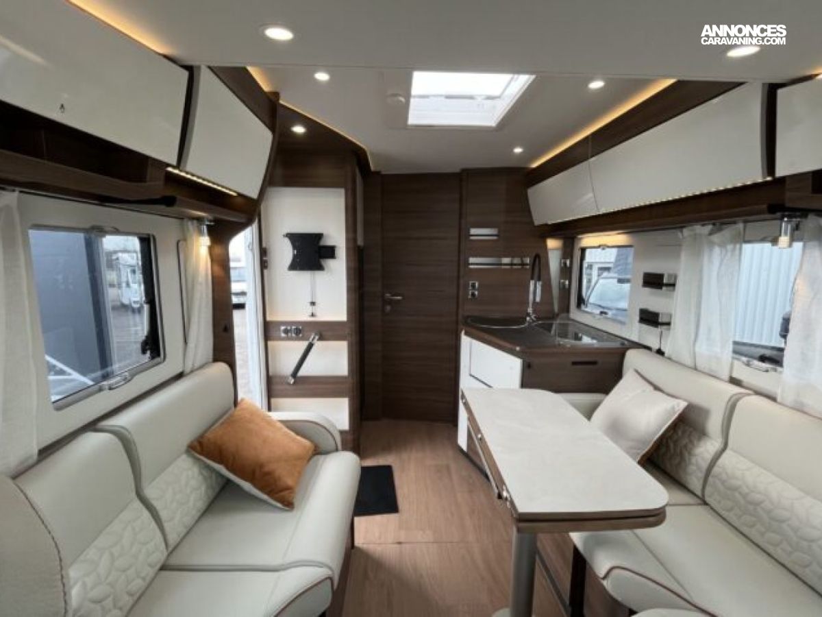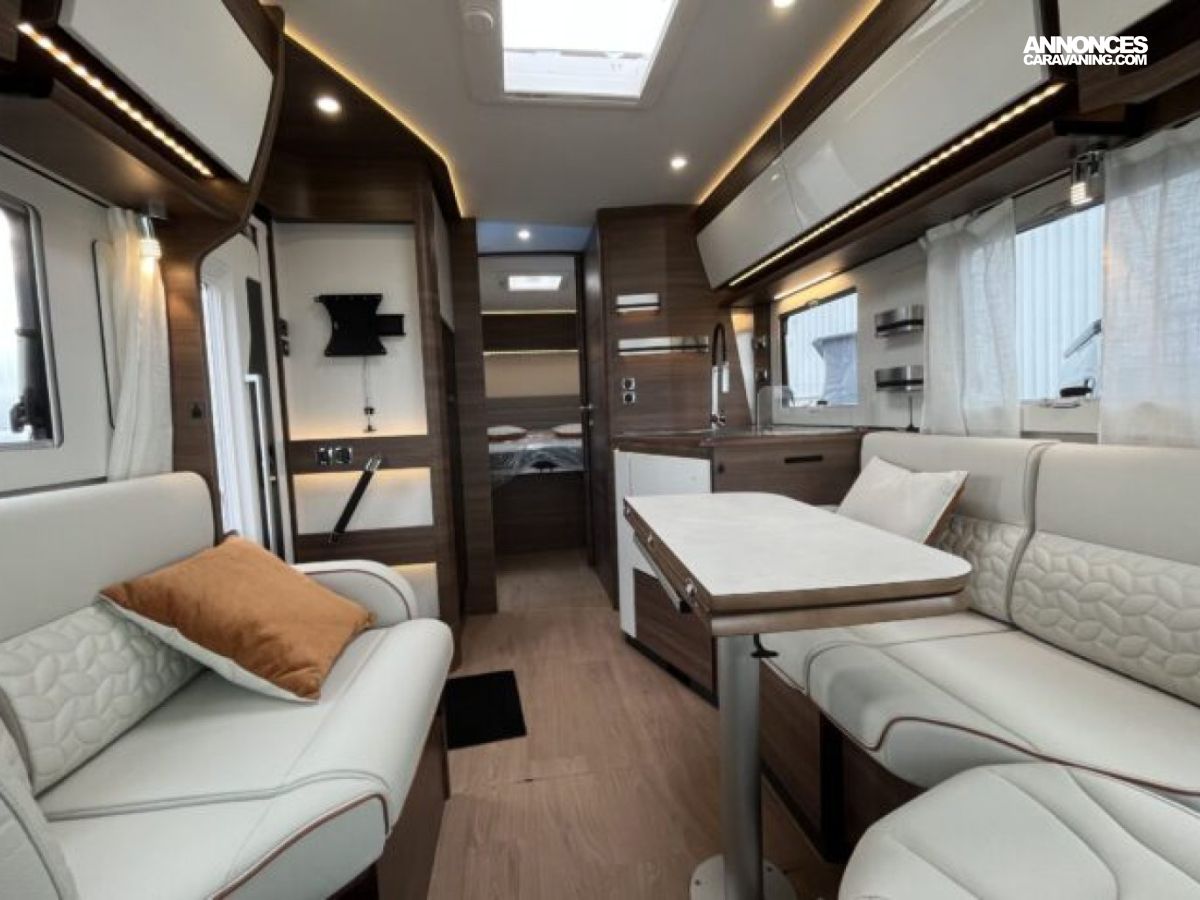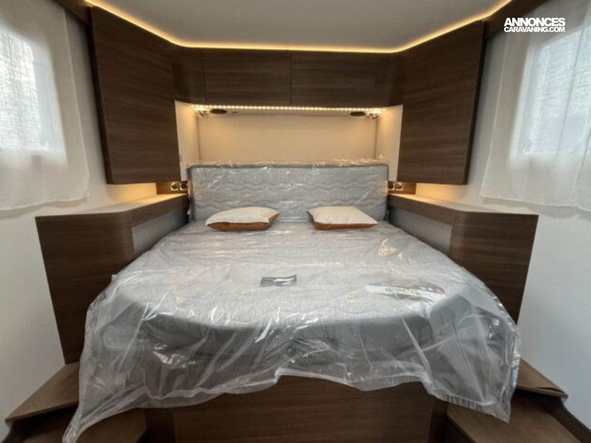 Son lit central, sa grande dinette face-à-face et son double plancher offrent un espace de vie spacieux et parfaitement isolé.