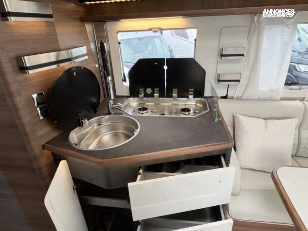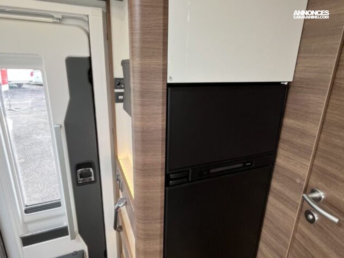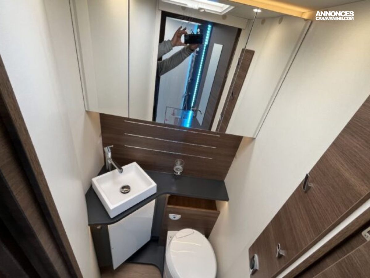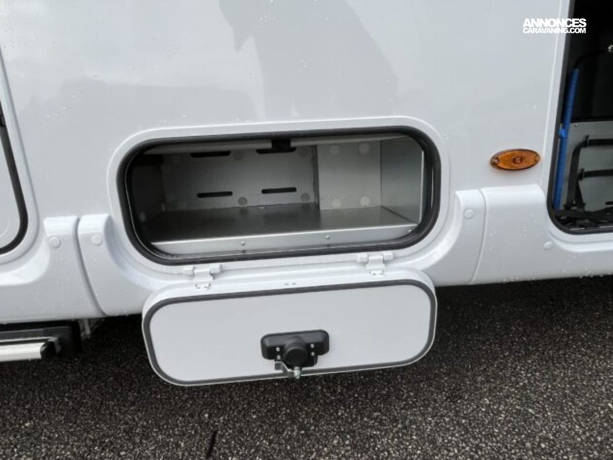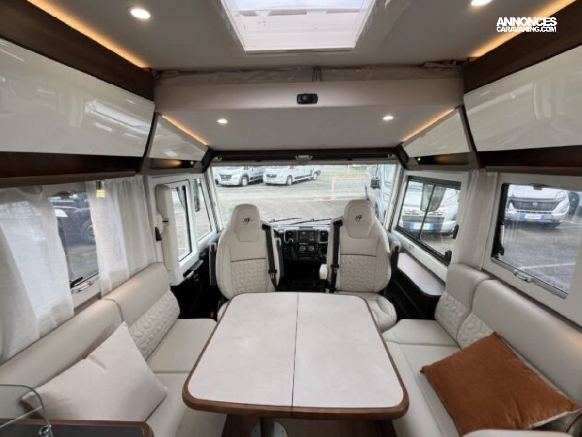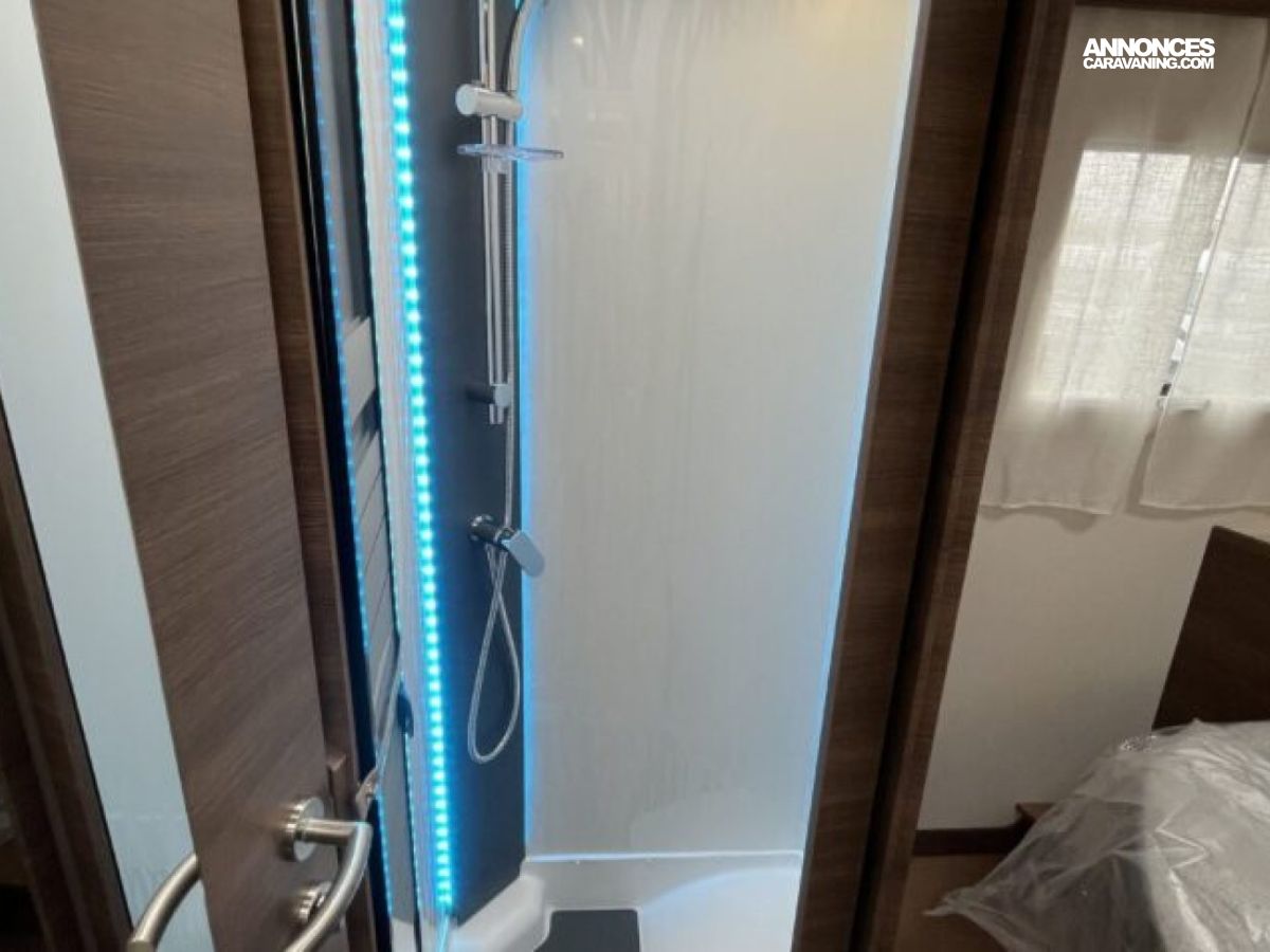Son lit central, sa grande dinette face-à-face et son double plancher offrent un espace de vie spacieux et parfaitement isolé.