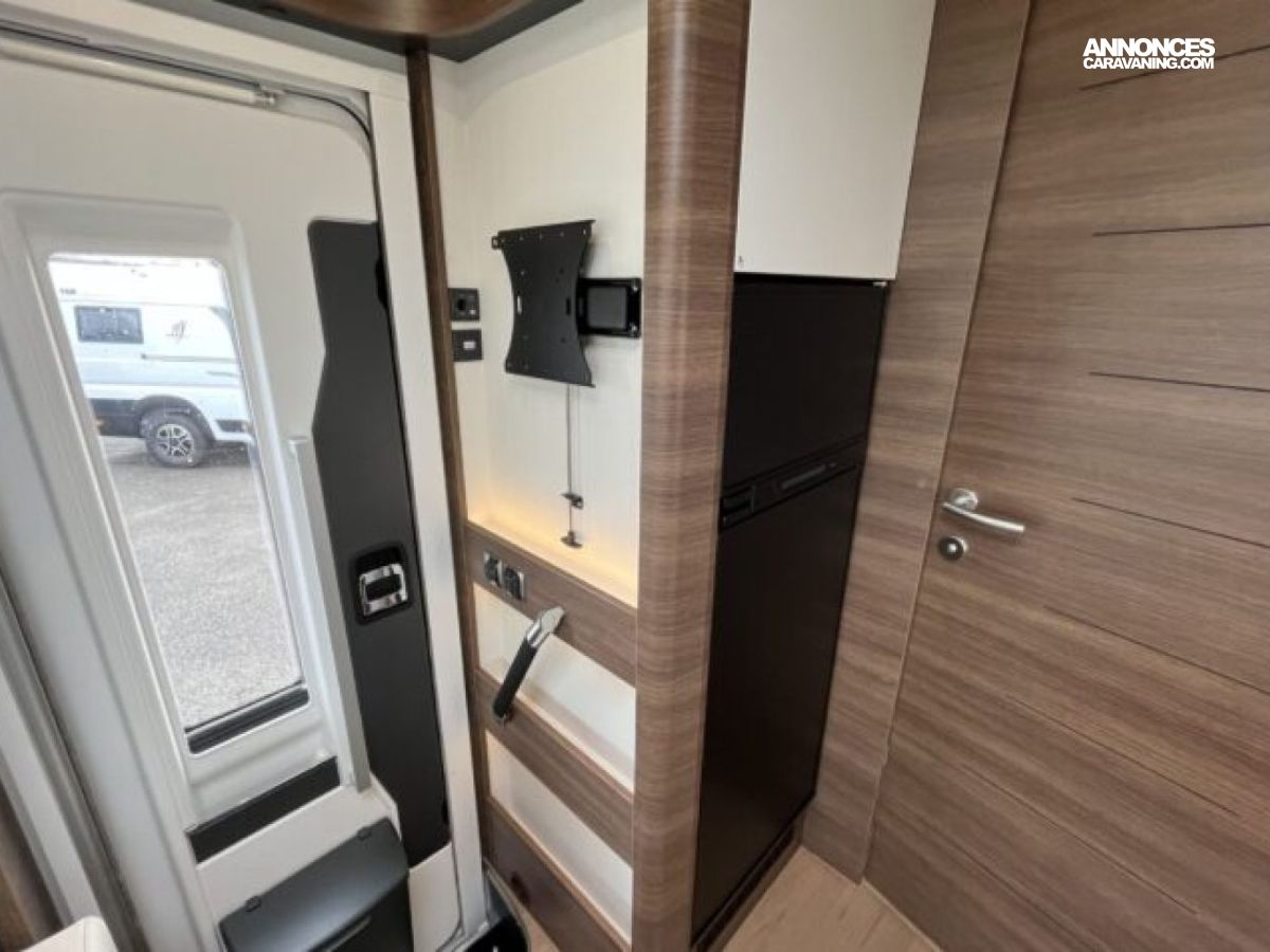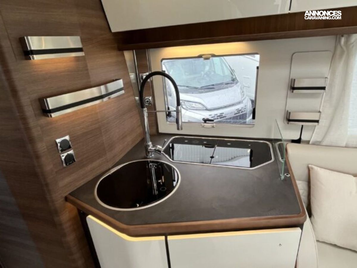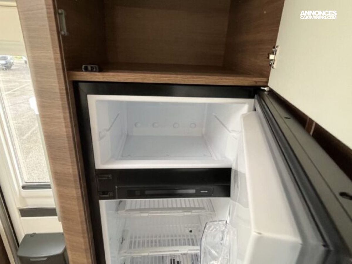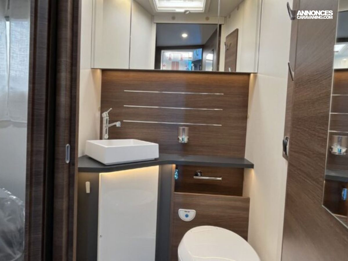 Son lit central, sa grande dinette face-à-face et son double plancher offrent un espace de vie spacieux et parfaitement isolé.