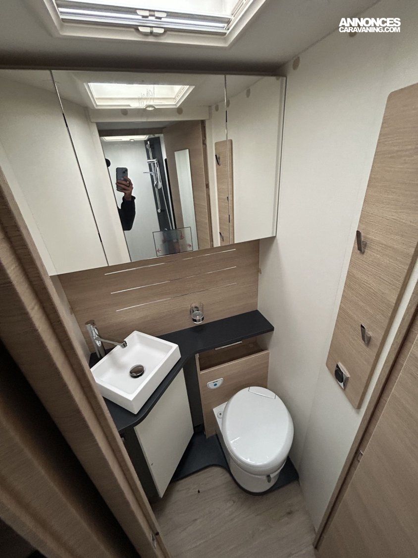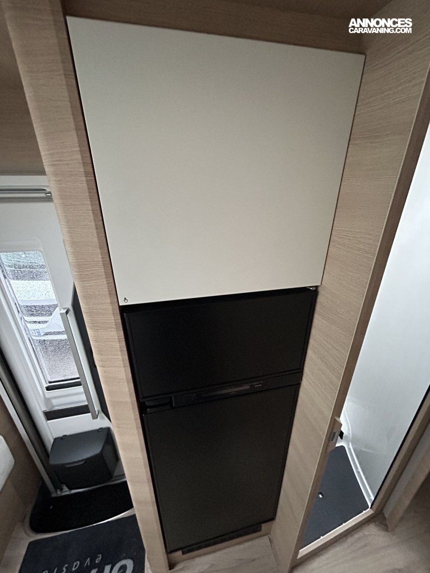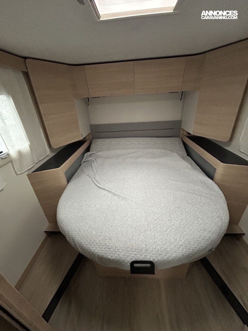 🛏️ Aménagement & confort intérieurLit permanent réglable en hauteur, assisté par vérins électriques