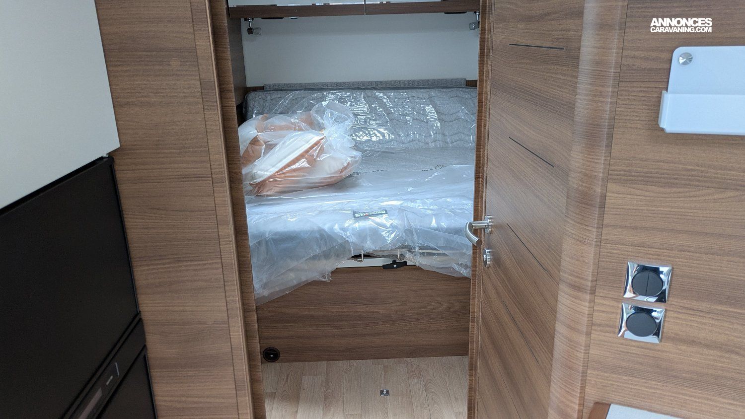 Couchage : Lit permanent arrière (196 x 160 cm), Lit de pavillon (191 x 140 cm)