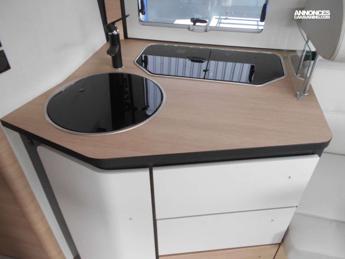SOUTE/GARAGE CHAUFFE, COFFRE A GAZ 2 BOUTEILLES 13KG, CASIERS DE RANGEMENT INTERIEUR SOUS PLANCHER, ACCOUDOIRS BANQUETTES FACE A FACE, RETROVISEURS EXTERIEURS TYPE BUS, MEUBLE DE RANGEMENT HAUT ET GRAND MIROIR RETROECLAIRE, COLONNE DE DOUCHE AVEC HABILLAGE PLEXI GRIS, MARCHEPIED ELECTRIQUE ACCES CELLULE, PORTE CELLULE XL, CHAUFFAGE TRUMA COMBI 6 AVEC CDE DE CHAUFFAGE INET X, ACC SALLE D'EAU EN FINITION CHROME, VEROUILLAGE CENTRALISE LIT CABINE, PLAQUE 2 FEUX INOX ALLUMAGE PIEZZO, ECLAIRAGE SOUS LE PLAN DE TRAVAIL, WC A CASETTE EXTRACTIBLE, SOMMIER LIT CENTRAL RETRACTABLE, CLIMATISATION CABINE MANUELLE, GRAND REFRIGERATEUR XXL 156L, EVIER INOX AVEC COUVERCLE VERRE, PARE-BRISE GRAND ANGLE PANORAMIQUE