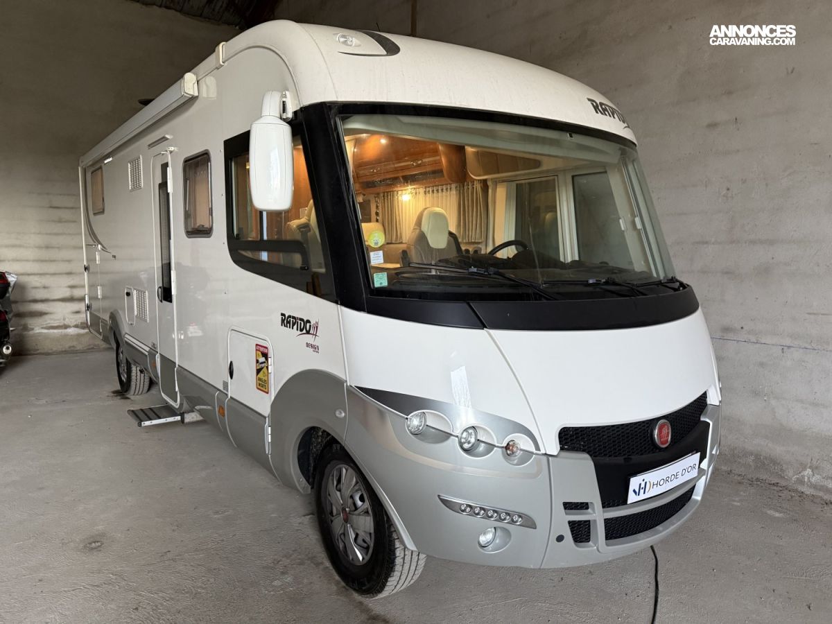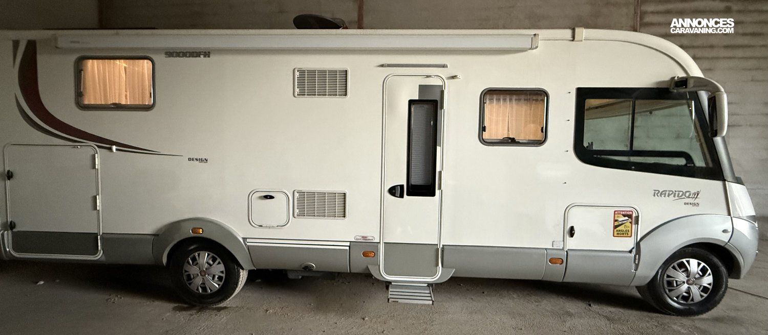Modèle haut de gamme de la série 90dF, ce Rapido 9000 dFH de 2016 s’adresse aux amateurs de voyages longue durée. Motorisé par le Fiat 3.0L 180 CH avec boîte automatique, il repose sur un châssis AL-KO 4,4T à suspensions indépendantes, reconnu pour sa tenue de route, sa stabilité et sa capacité de charge supérieure.