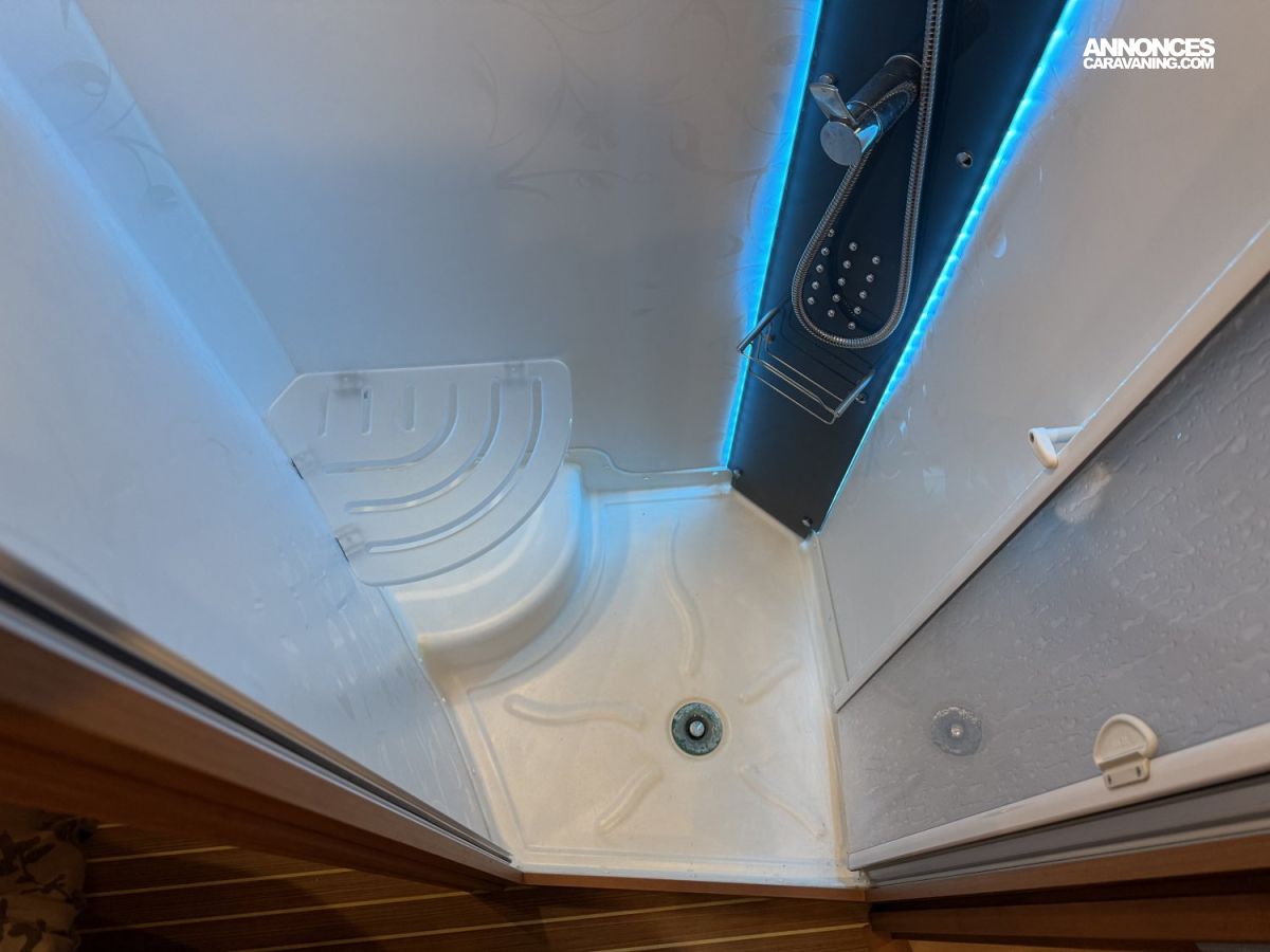 CHAUFFAGE CENTRAL ALDE, STORE EXTERIEUR 5M, CHAUFFAGE ROUTE, GAZINIERE 3 FEUX, FENETRE SDB, CUISINE EN L, DINETTE EN L, DOUCHETTE DANS SOUTE, DOUCHE ET WC SEPARES, ECLAIRAGE LED, HOTTE ASPIRANTE, MOUSTIQUAIRE DE PORTE CELLULE, REFRIGERATEUR TRI MIX, SECHE SERVIETTE, STORES PLISSES DE CABINE, TABLE TELESCOPIQUE, VOLET EXTERIEUR ISOTHERME, DOUBLE CLOISON DE SEPARATION, REFRIGERATEUR 177L