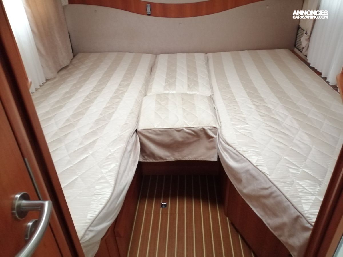 Couchage : Lit de pavillon (190 x 135 cm), Lit jumeaux arrière (198 x 80 cm et 198 x 80 cm)