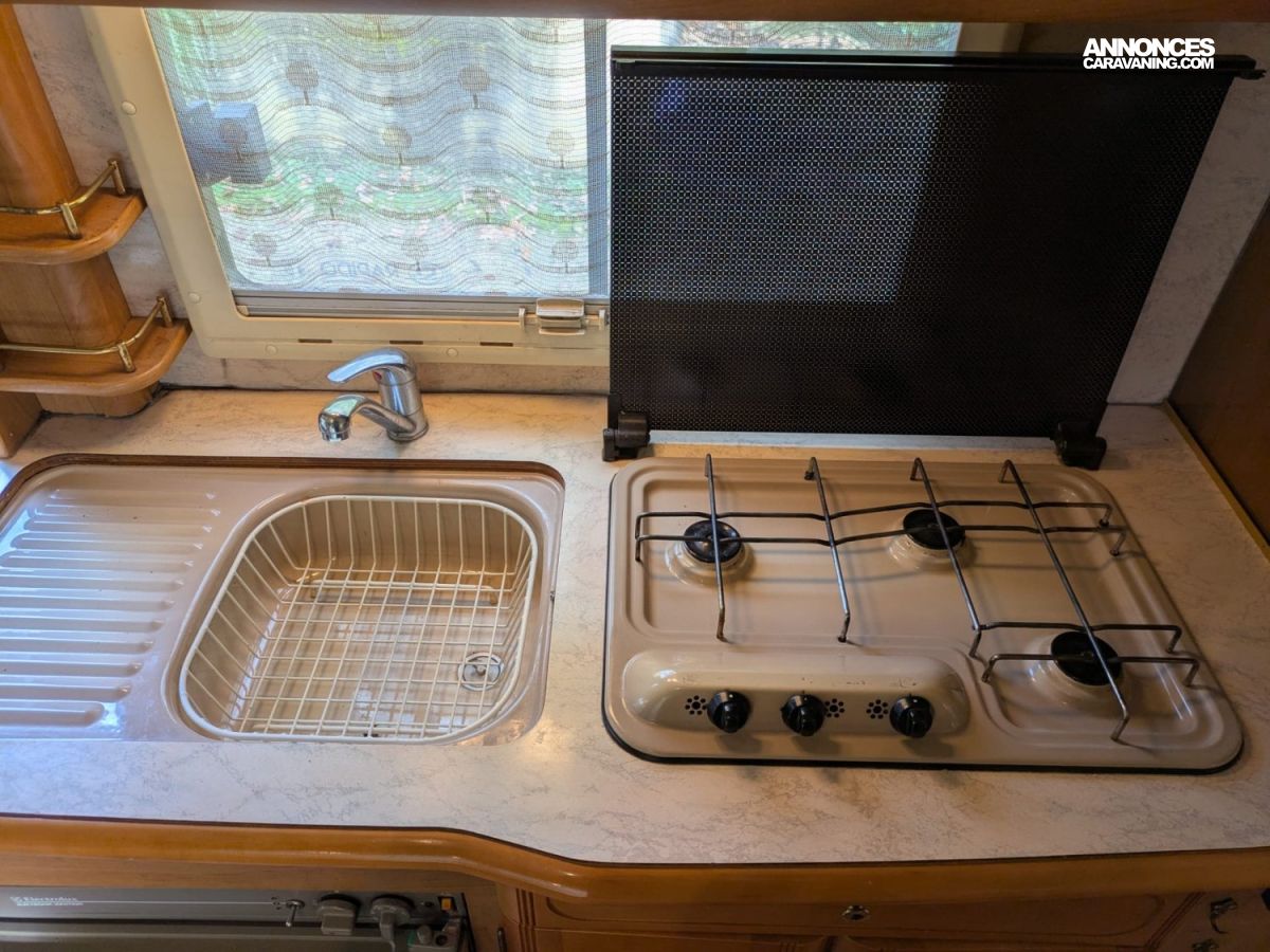 STORE EXTERIEUR 4.5M, GAZINIERE 3 FEUX, PORTE VELO, RAFRAICHISSEUR D' AIR, REFRIGERATEUR TRI MIX, DOUBLE CLOISON DE SEPARATION, SALON FACE A FACE, ASPIRATION CENTRALISEE, CHAUFFE-EAU GAZ