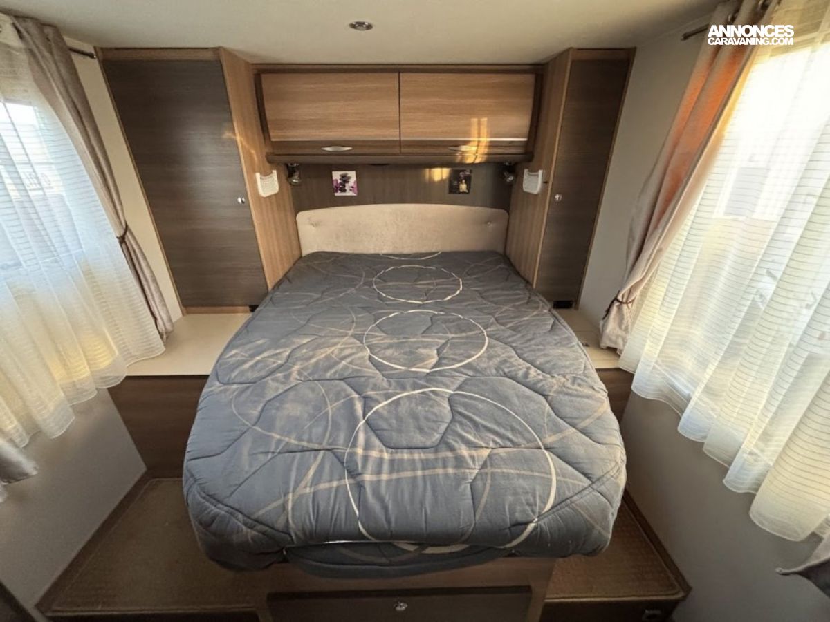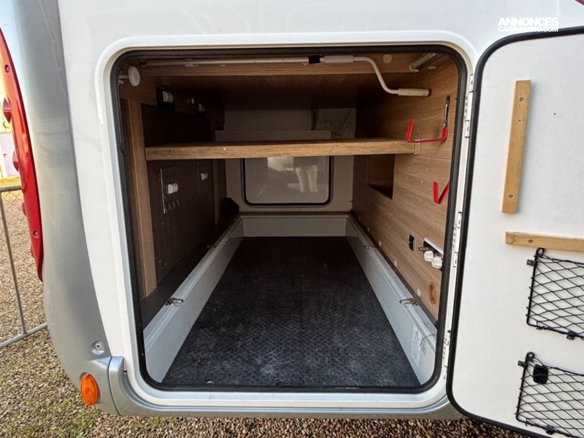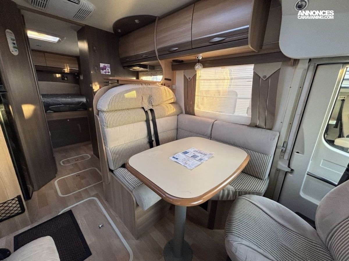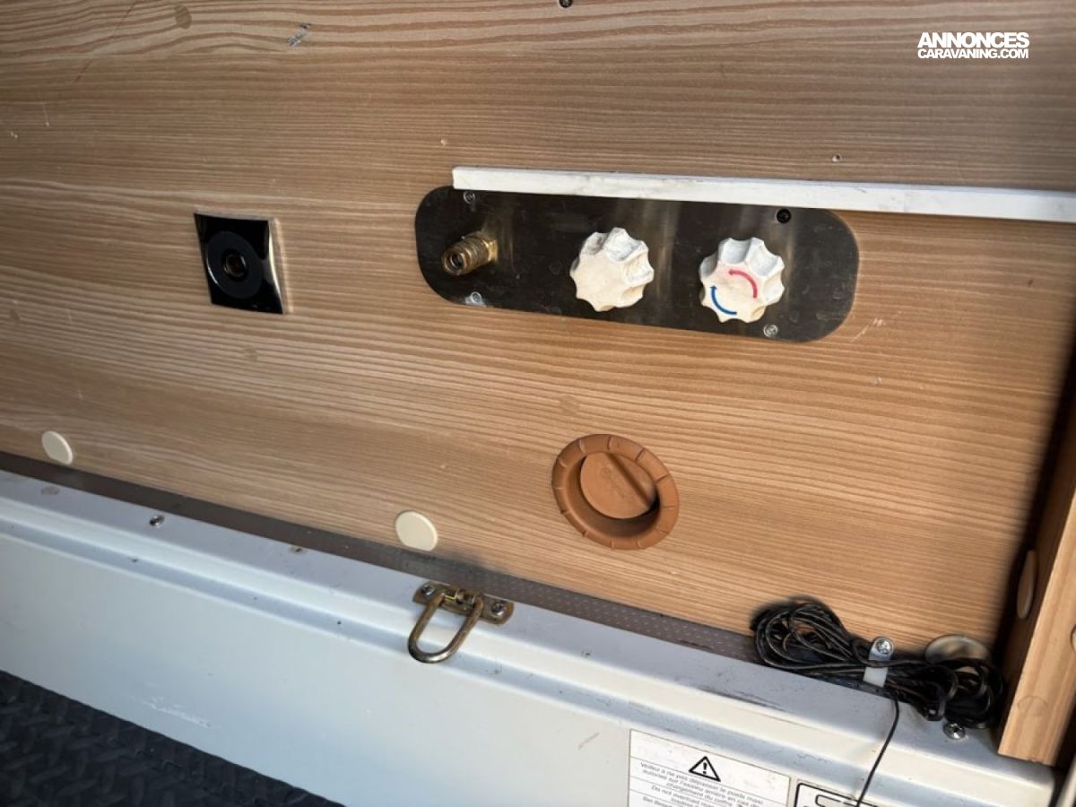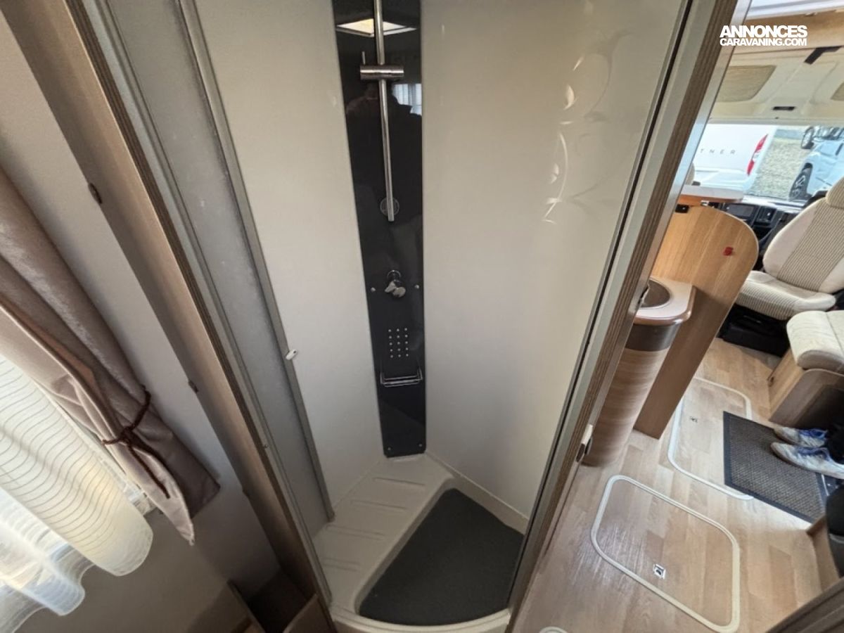 Cuisine en L, Douche indépendante, Lit central, lit pavillon cabine, Salon avant sièges pivotants, Salon en L, WC Cassette.