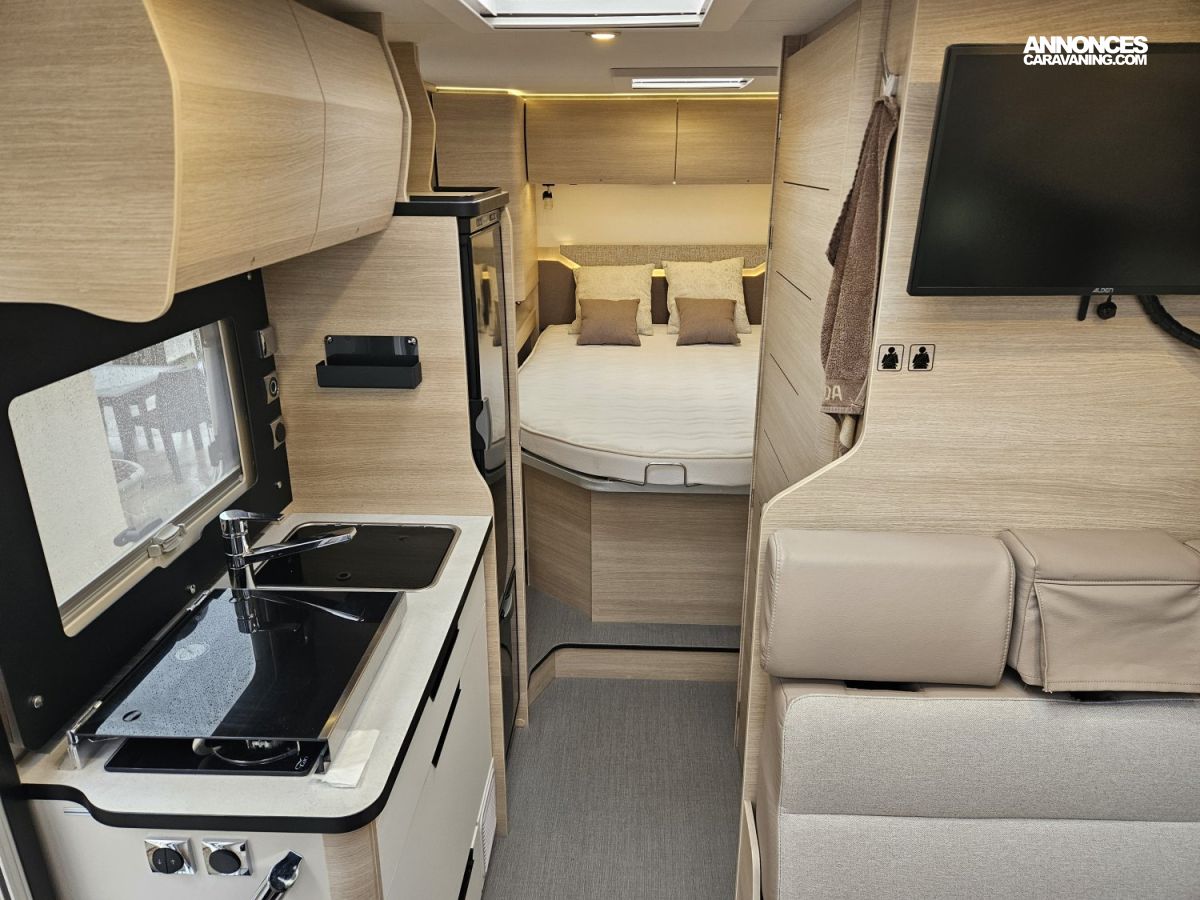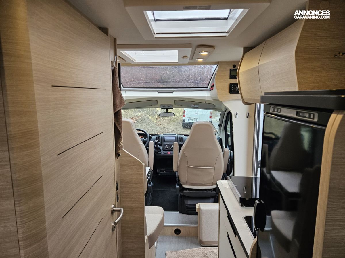 Ses dimensions équilibrées de 6,60 de long, 2,17 de large et 2,90 de haut assurent une excellente maniabilité tout en conservant un espace de vie confortable. L'aménagement intérieur propose 4 places repas, 4places CG et 3 couchages.