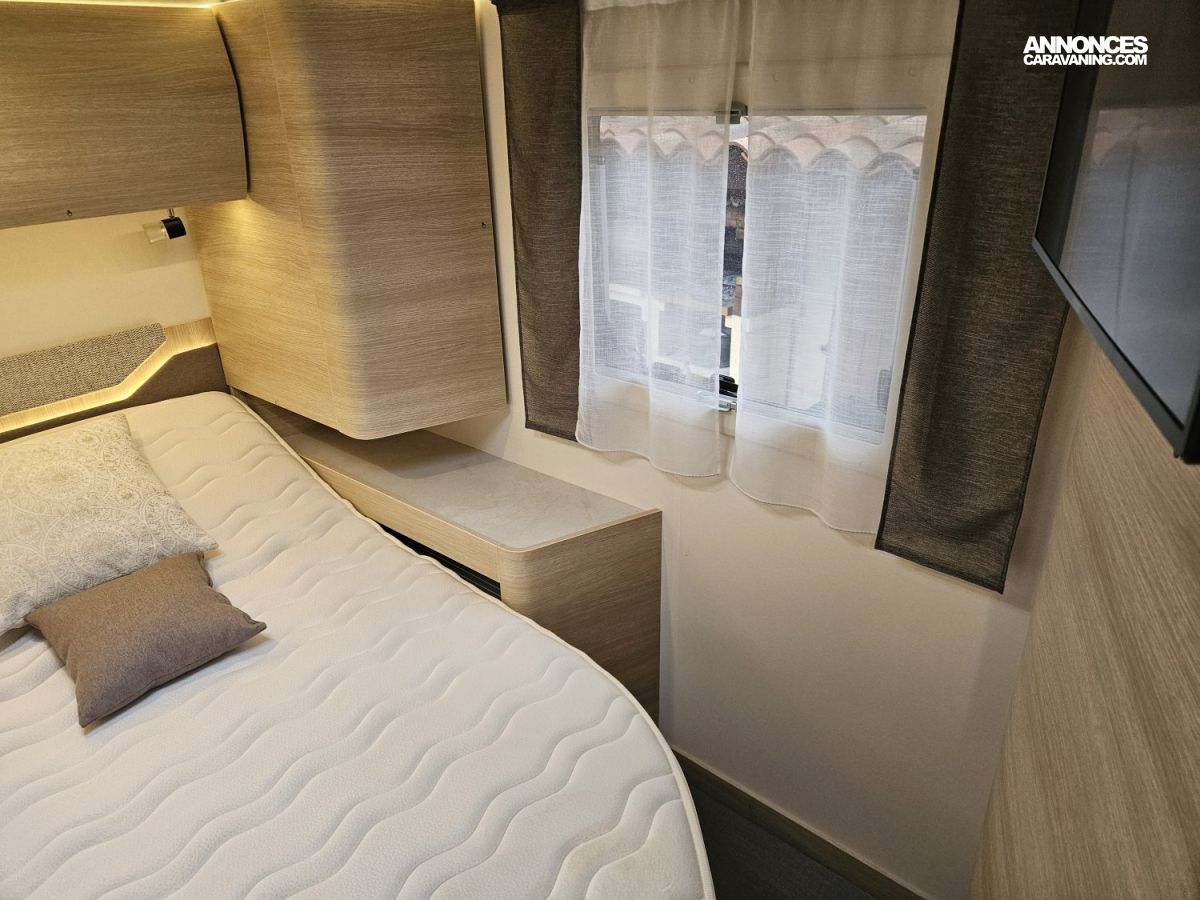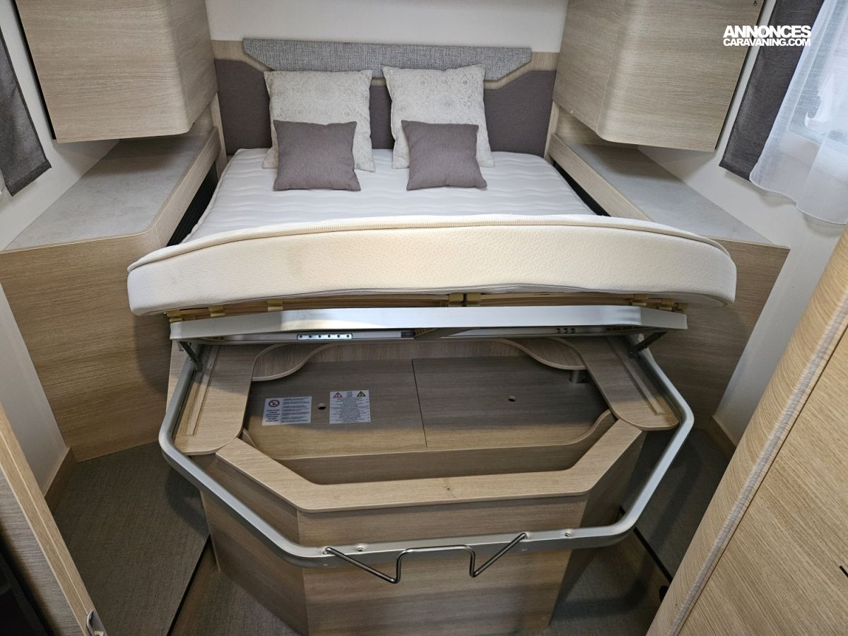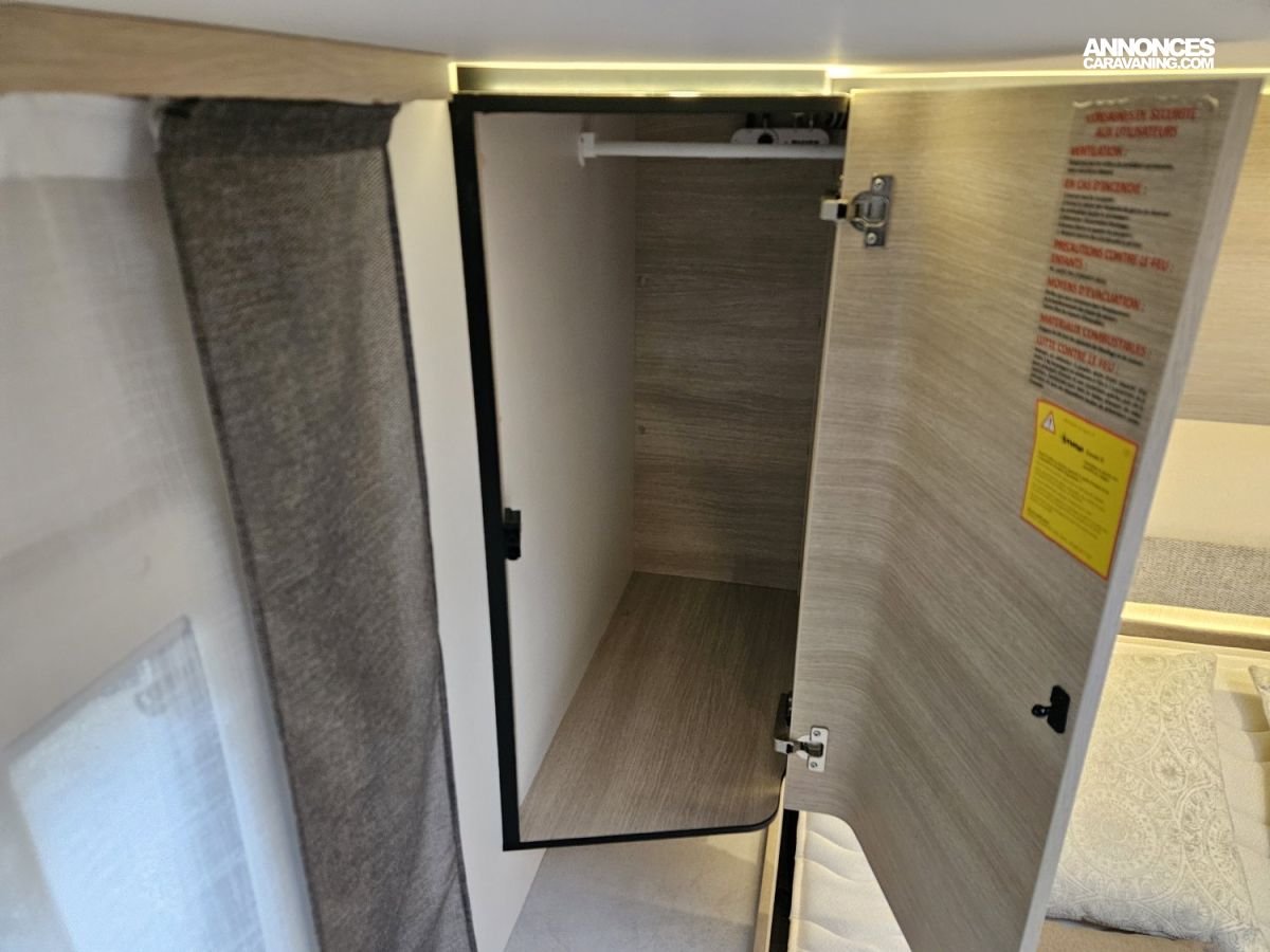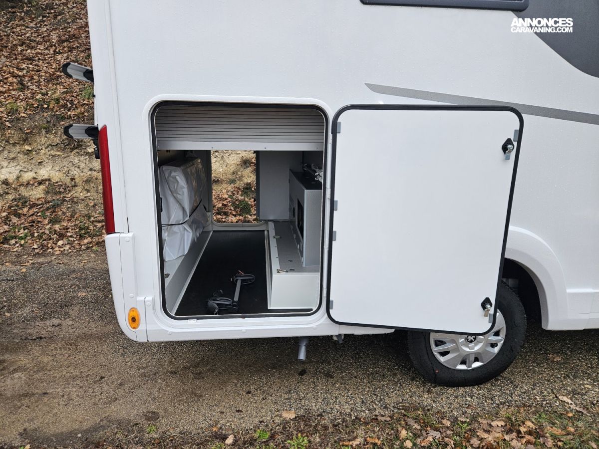 Il est équipé d'une roue de secours et d'une soute traversante. Un store extérieur de 3 mètres permet de profiter pleinement des moments en extérieur.