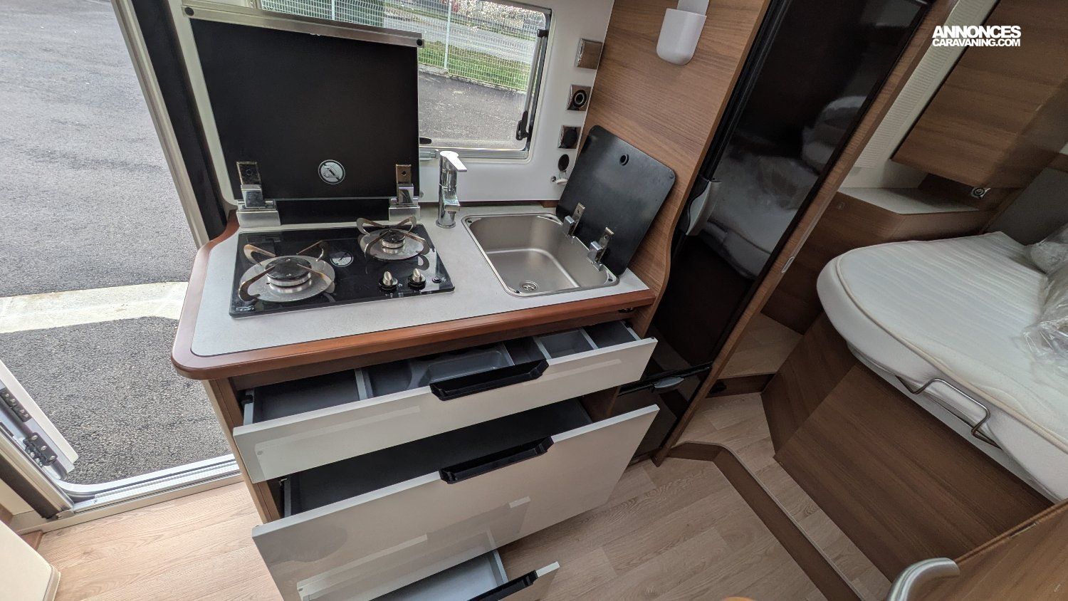 Couchages : lit central arrière (140 x 190 cm), lit de dînette (68/90 x 188 cm)