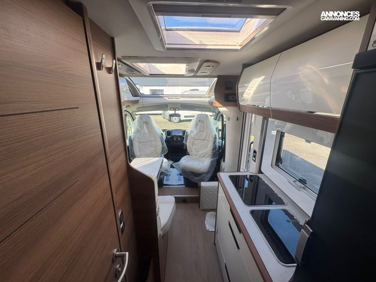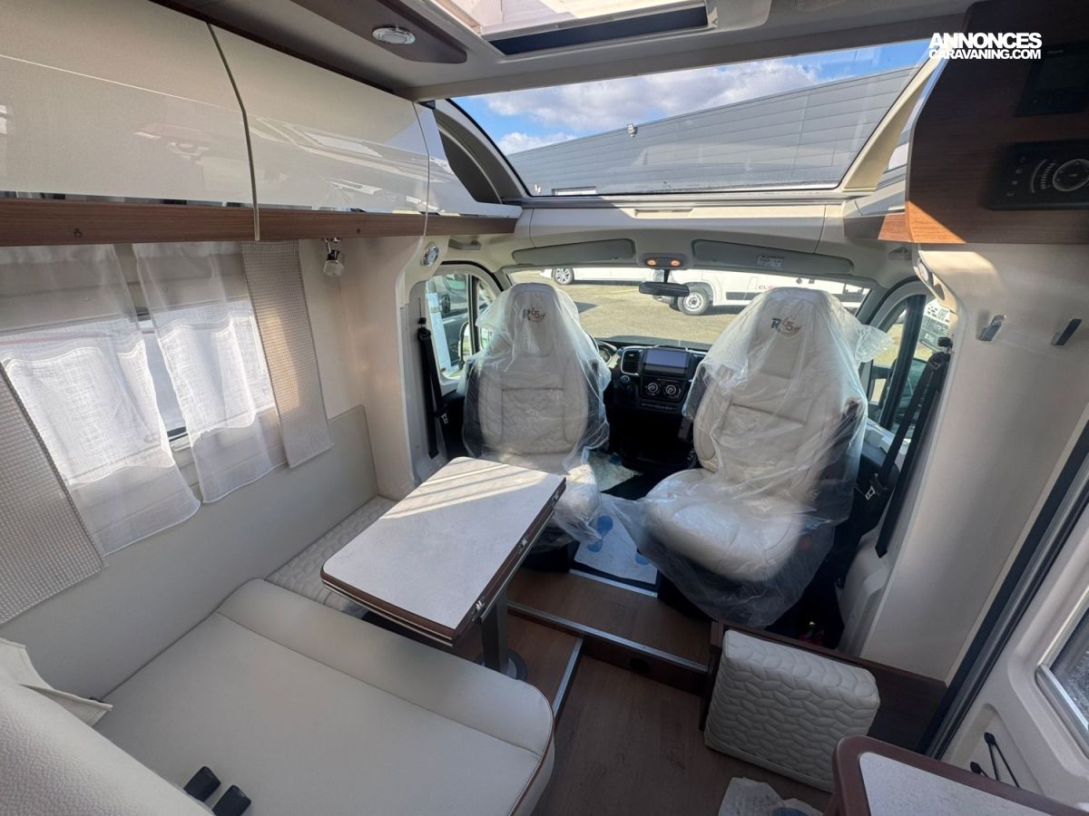Frein de stationnement électrique – Batterie cellule LITHIUM 100 Ah – Habillage gris aluminium sur bouche d’aération – Commandes au volant pour radio-Volant et pommeau de levier de vitesses cuir- Réservoir d’eaux usées chauffé – TRUMA Combi 4 DIESEL avec kit altitude et commande de chauffage CP PLUS