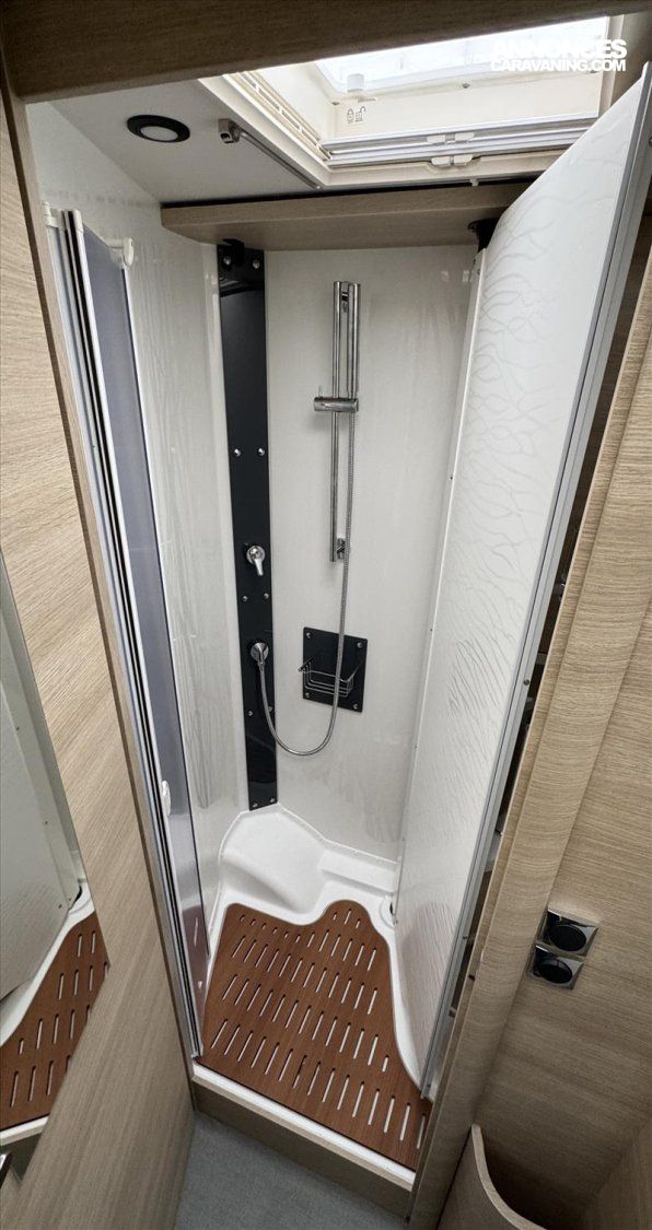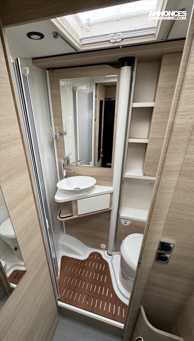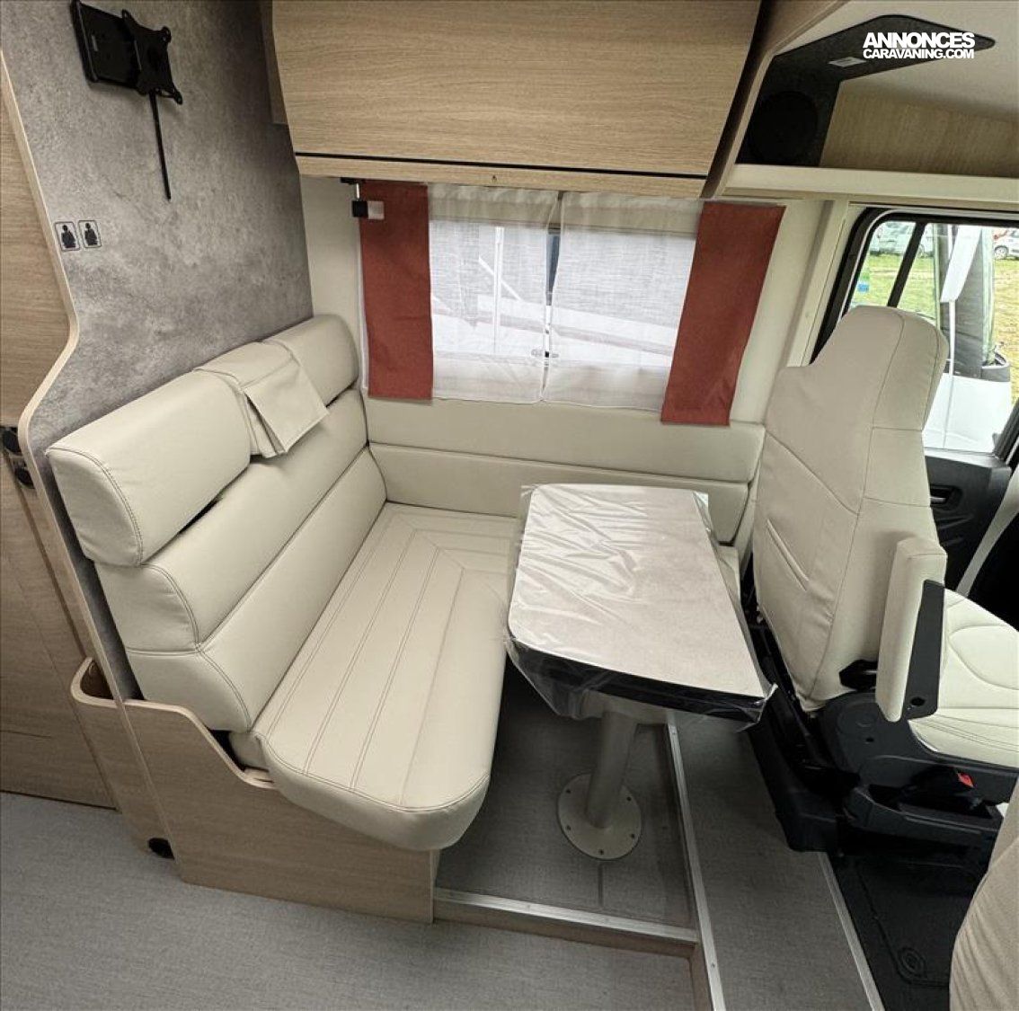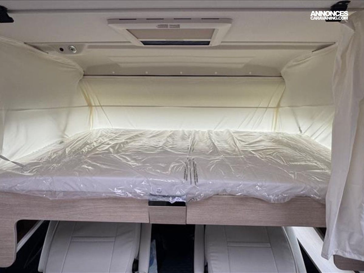 Réfrigérateur à compression 140 L, Hotte aspirante encastrée avec éclairage LED, Lits jumeaux (80 x 199 cm + 80 x 185 cm) transformables en l, Caillebotis douche type teck, Salon convertible en couchage d'appoint 1 place, Soute/garage chauffé