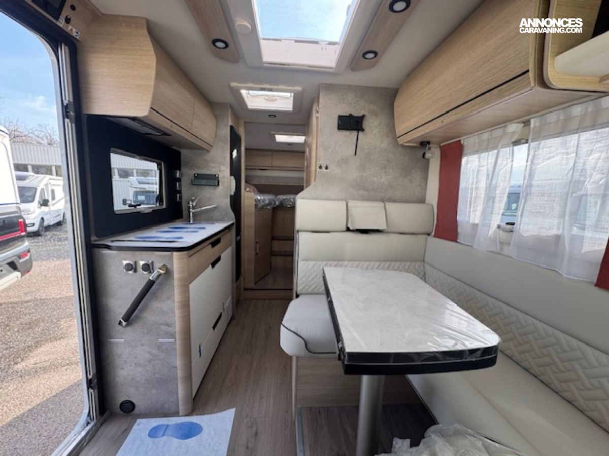 Batterie LITHIUM, Boite automatique, Chauffage TRUMA Combi 4 , Commande au volant pour radio, Fermeture centralisée, Hotte aspirante, Jantes alliage , Lit pavillon, Marche pied électrique, Moustiquaire de porte cellule, Panneau solaire, Porte cellule vitrée, Régulateur de vitesse, Réservoir carburant 90 L, Réservoir eaux usées isolé, Rétroviseurs électriques, Station multimédia Pioneer avec caméra, Stores plissés cabine, Traction +, Vitre electrique, Volant et levier de vitesse cuir