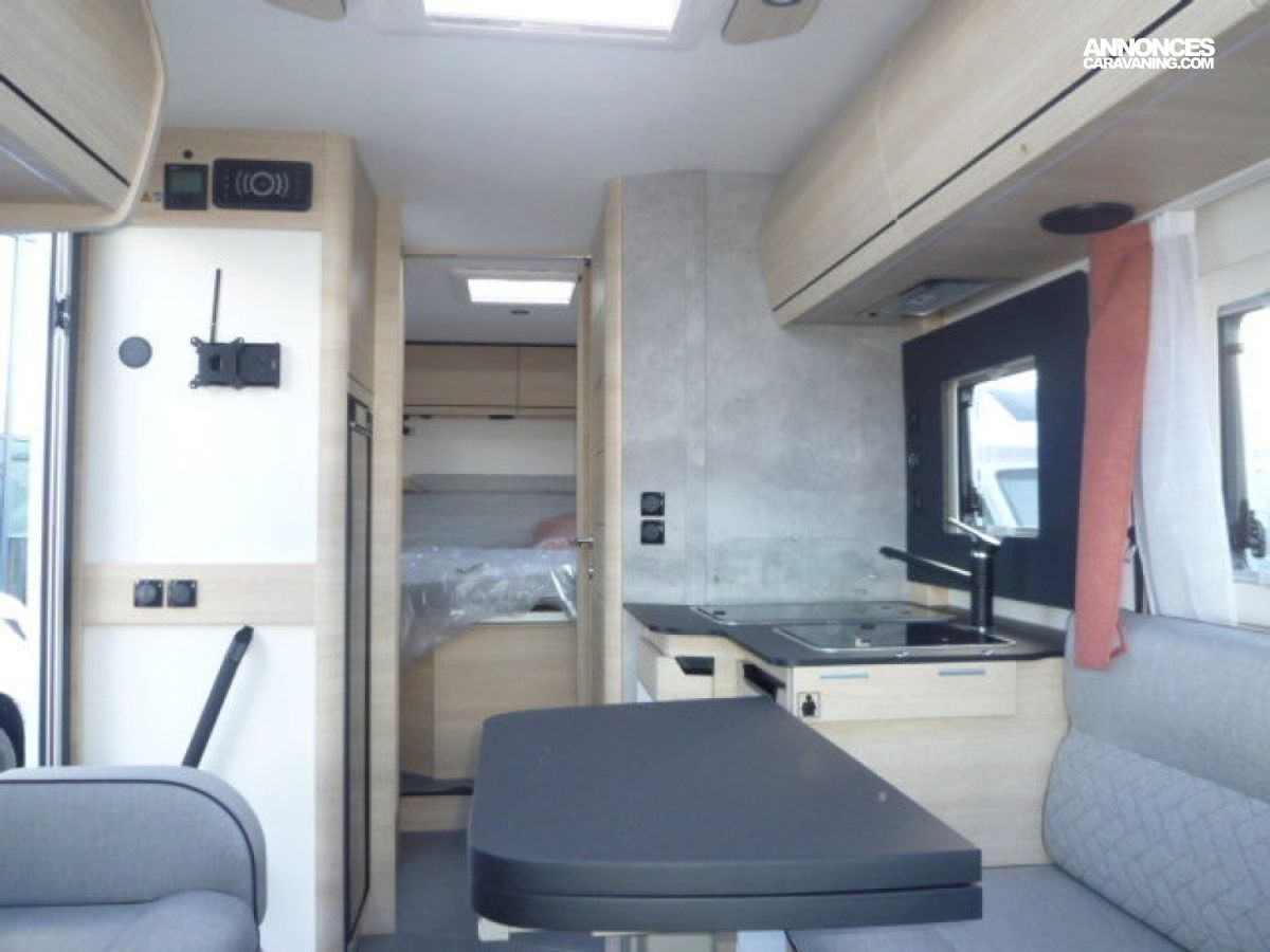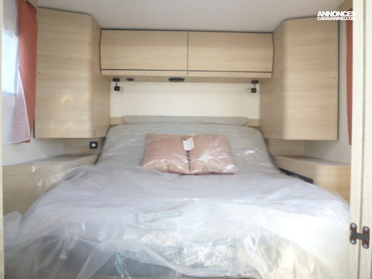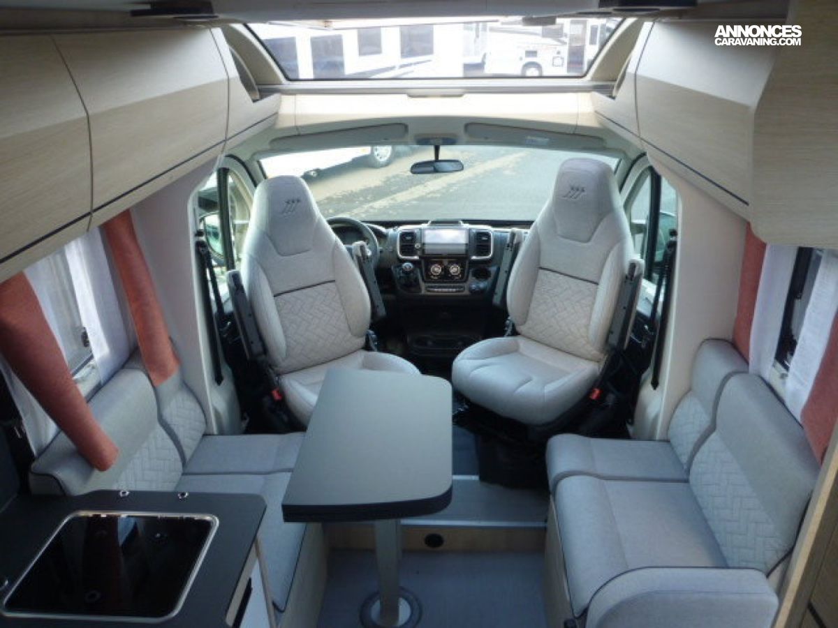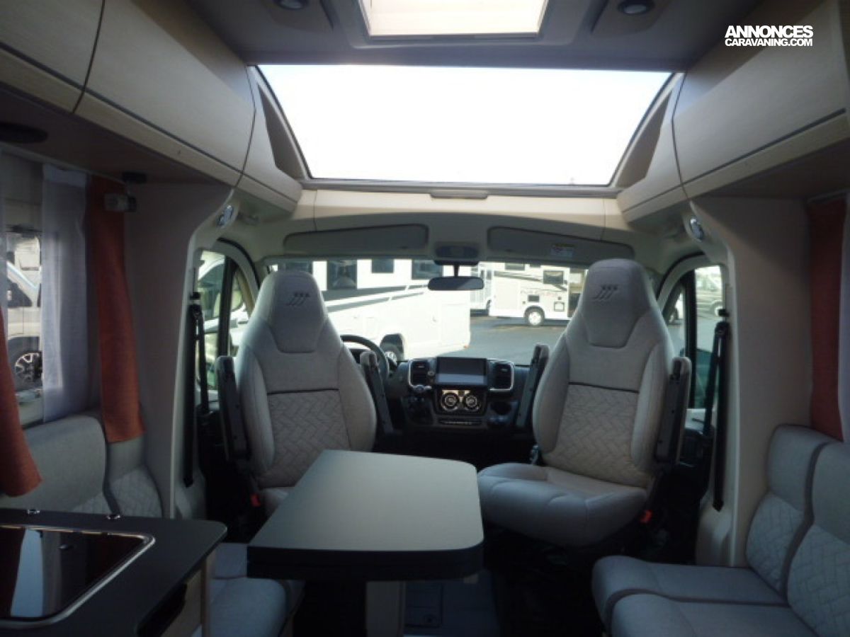 Cuisine en long, Douche indépendante, Lit central, Lit dînette avant, Salon avant banquettes face à face, Salon avant sièges pivotants, Soute réglable en hauteur, WC Cassette.