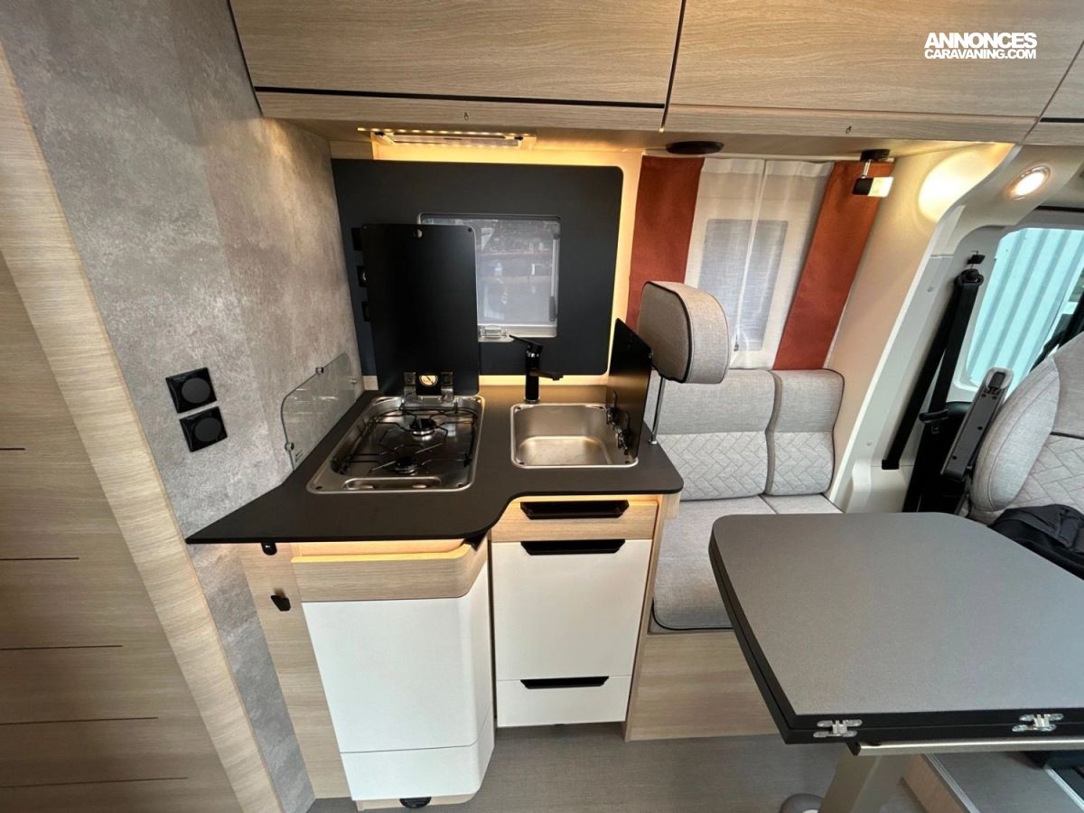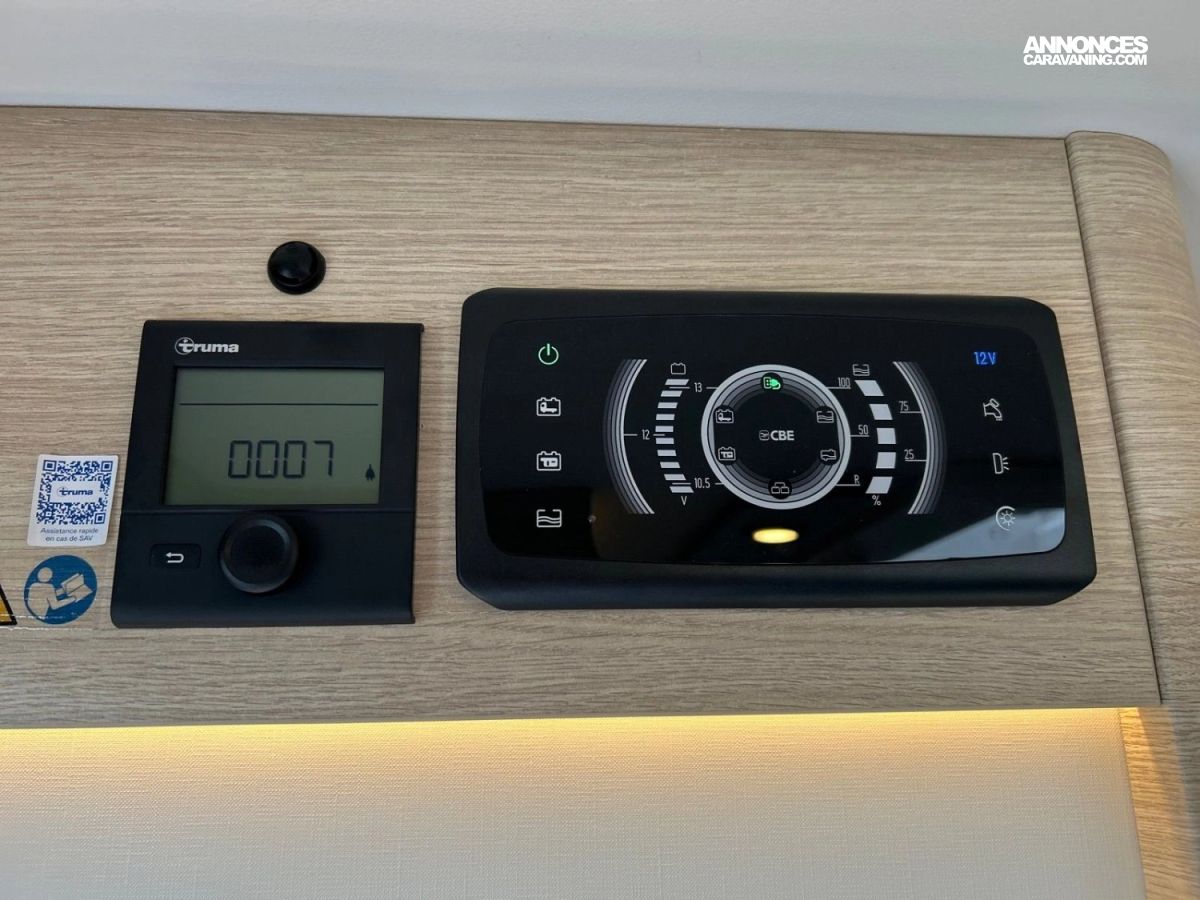 Cabine noire métallisée Décoration extérieure inédite et exclusive PACK SMART de série (jantes alliage léger 16" bi-ton, volant cuir, habillage gris sur aérateur) PACK RELAX de série (TPMS, frein de parc électrique) Station multimédia DAB avec grand écran tactile de 9", navigation intégrée et fonctions APPLE CAR PLAY/ANDROID AUTO Ambiance intérieure unique LUCEO avec accessoires noirs Ambiance tissu inédite et exclusive avec matelassage au motif géométrique : DUBROVNIK TRUMA Combi 4 EH DIESEL (diesel + électrique) avec kit altitude et commande de chauffage CP PLUS (implique 2e batterie cellule) Réservoir d’eaux usées chauffé Pack SELECT de série