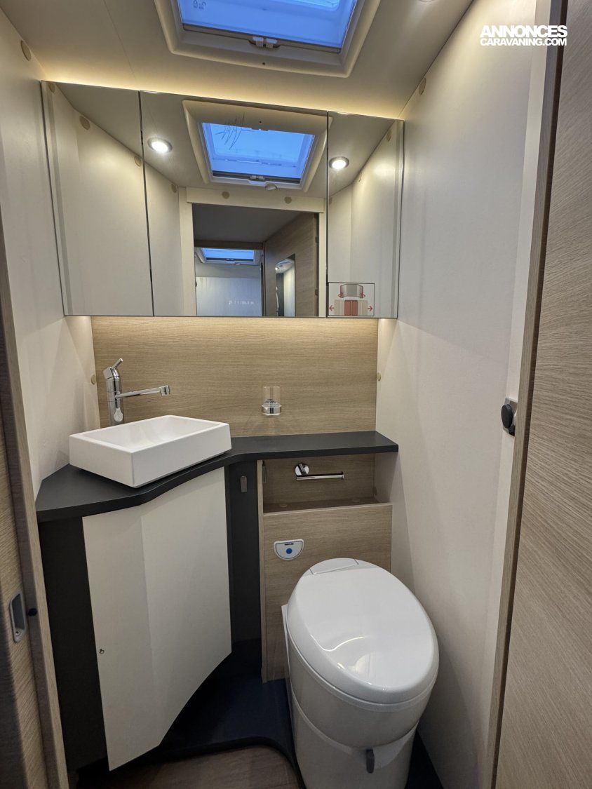 Pack 65e anniversaire : Décoration exclusive édition 65e anniversaire – caillebotis noir dans la douche – Jantes Alu 16 – Volant confort – frein de stationnement électrique – Station multimédias PIONNER avec écran tactile – Batterie Lithium – Panneau solaire – Réservoir d’eaux usées chauffées