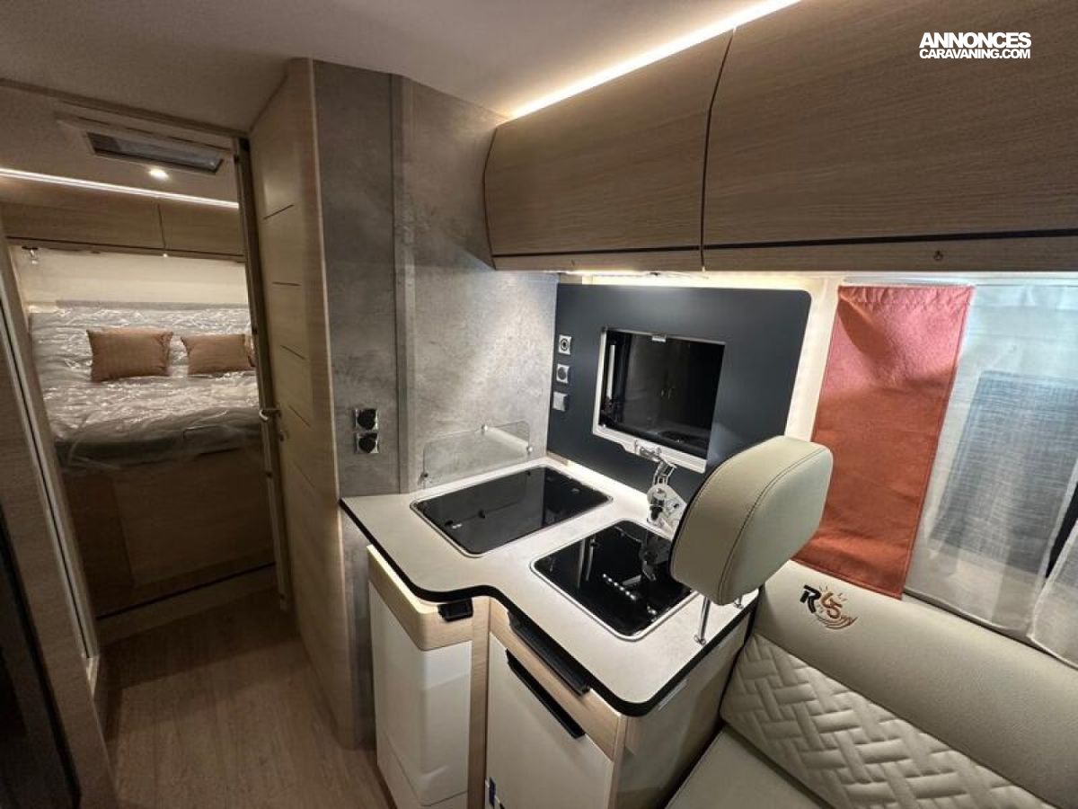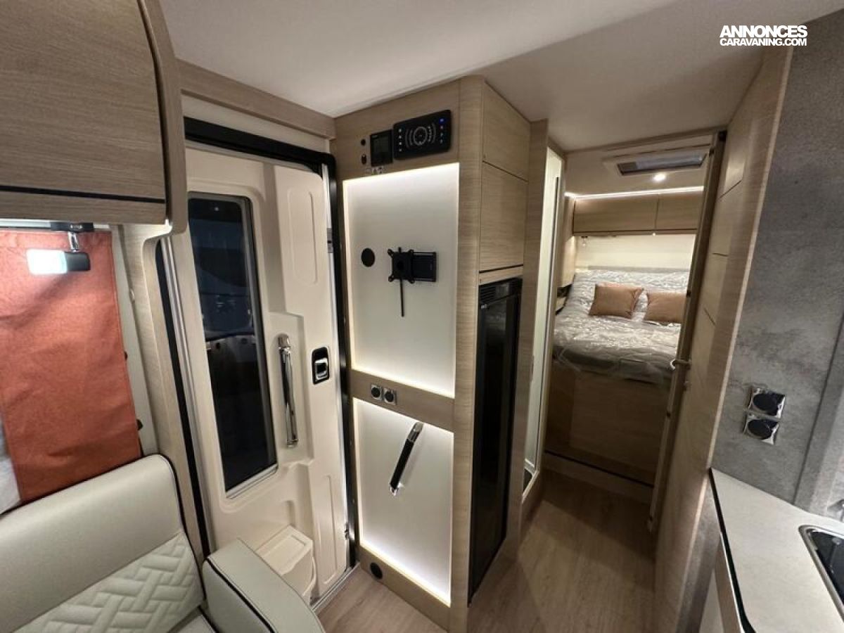 PACK SELECT Caméra de recul avec écran de contrôle intégré au tableau de bord • Station multimédia DAB PIONEER® avec écran 6,8" et fonctions APPLE CAR PLAY/ANDROID AUTO • Pneus all season 3PMSF • Traction+ avec Hill Descent Control (aide au maintien de la vitesse en descente) • Store pare-brise isotherme coulissant, double plissé : haut / bas (pare-soleil) • Porte cellule à serrure 2 points avec baie fixe et poubelle intégrée • Moustiquaire de porte cellule • 2e clef télécommandée (PLIP) • 2e batterie cellule AGM 92 Ah : 3900 €