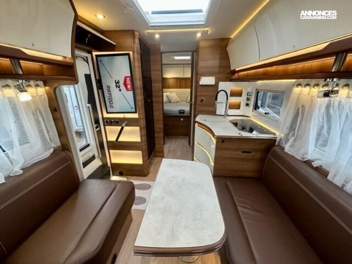 LES PLUS DU i 96M Grand salon ouvert avec banquettes face à face Lit central XXL : 160 x 196 cm Lit central réglable en hauteur électriquement de 30 cm avec grande soute Lit cabine électrique : 150 x 191 cm Sommier lit central rétractable Tiroir de rangement en façade de lit central Niches de rangement lit central rétroéclairées avec prises 12 V Spots liseuses chambre avec prise USB intégrée Réfrigérateur grande profondeur 171 L avec porte double charnière Cuisine au design incurvé Meuble TV intégré 32" Table portefeuille Accès double plancher intérieur/extérieur Porte cellule L : 540 mm : 0 €