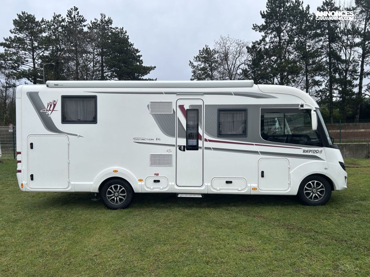 Magnifique camping-car intégral Rapido i96 Distinction, première main, reconnu pour sa qualité de fabrication et son confort de voyage. Mis en circulation en 06/2019, basé sur Fiat Ducato 2.3L 150 ch, il affiche seulement 34 900 km et repose sur un châssis AL-KO avec double plancher, offrant une excellente stabilité, une isolation renforcée et un réel confort de conduite.