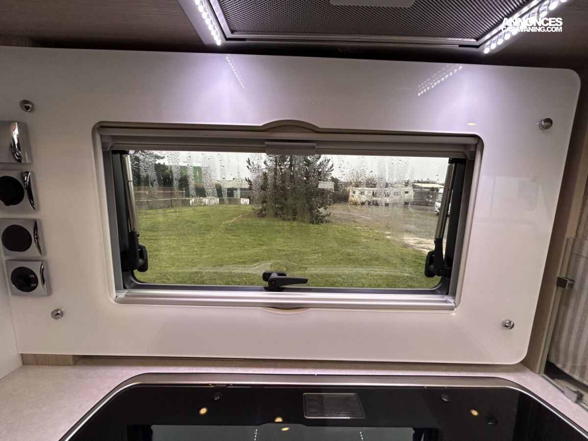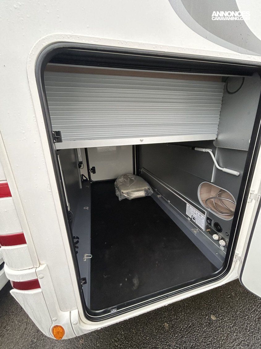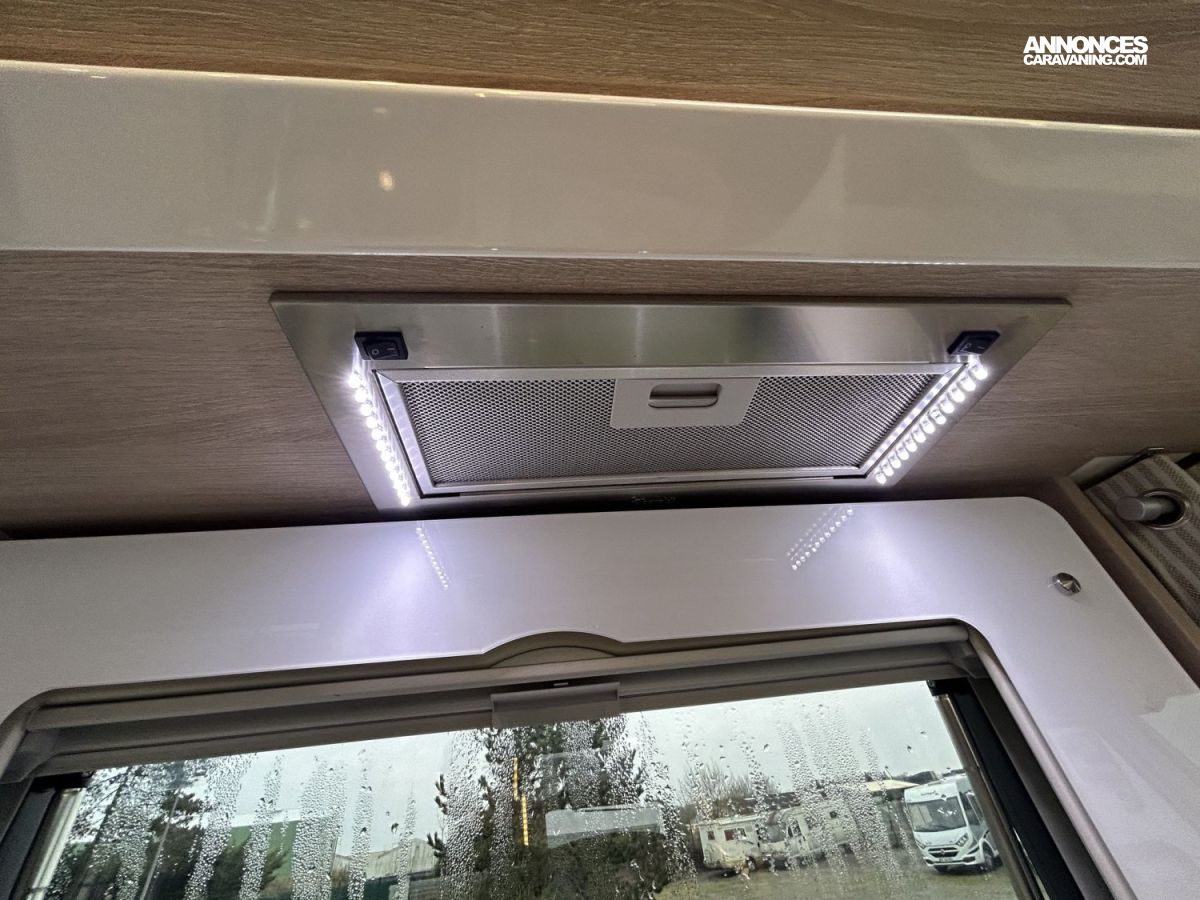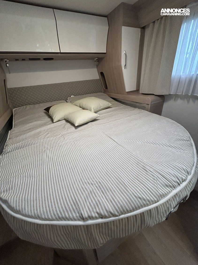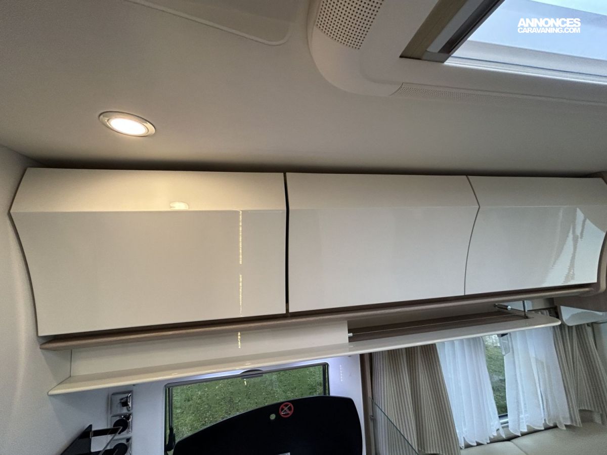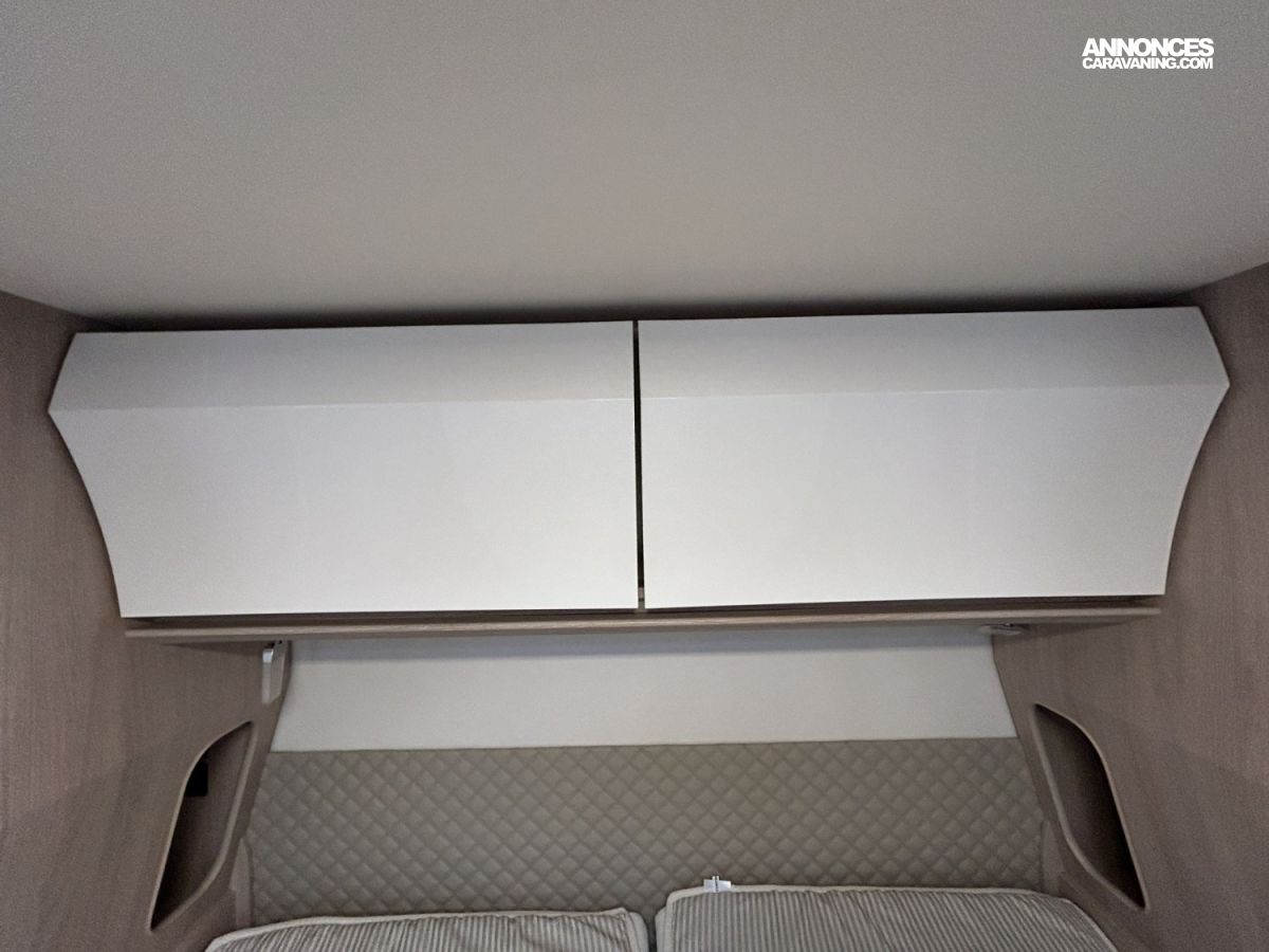 Avec ses 7,54 m, cet intégral propose un aménagement très apprécié : lit central réglable en hauteur avec surmatelas à mémoire de forme, lit pavillon électrique, jusqu’à 4 couchages et 3 places carte grise, dans un espace de vie spacieux, lumineux et parfaitement équilibré.