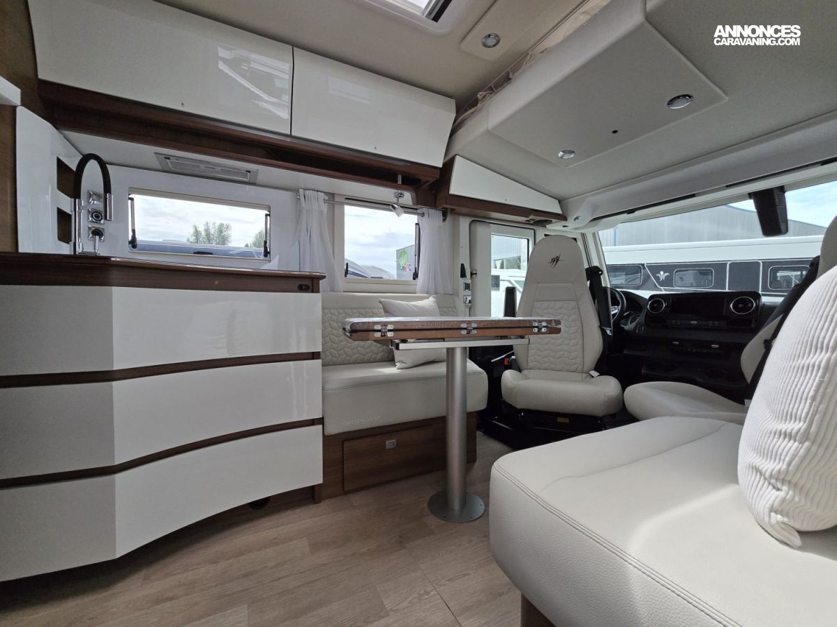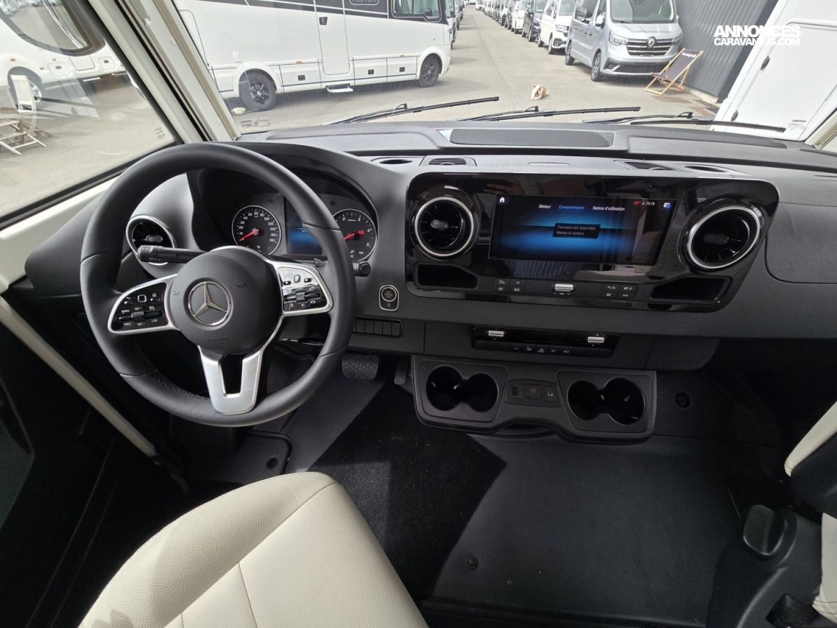 Boite automatique 9G tronic – Motorisation 170cv – Volant cuir – Frein de stationnement électrique – Phares antibrouillard avant – Lit de cabine avec sommier à lattes, matelas mousse BULTEX, escamotable électriquement – Couvercles rabattables vide-poches central et latéraux – Coupe batterie – Pack intégration pour smartphone – Jantes MERCEDES en alliage léger 16‘’