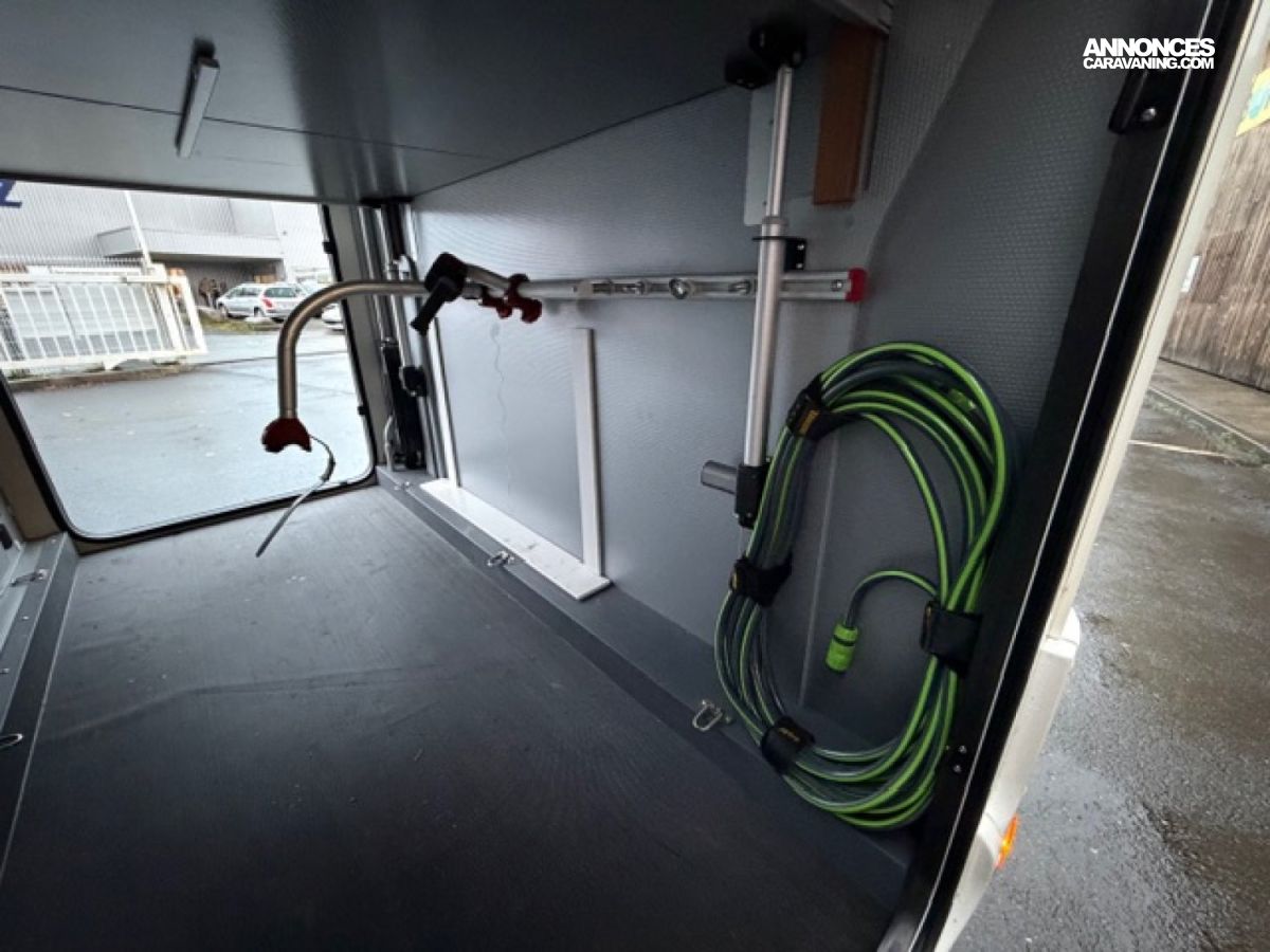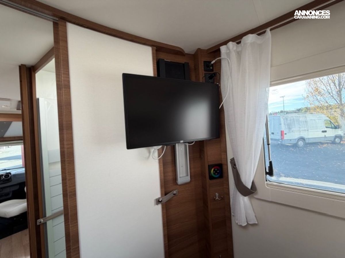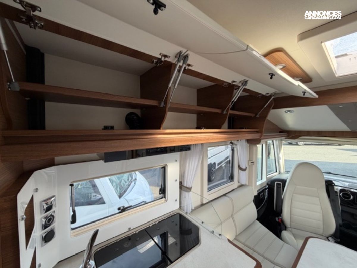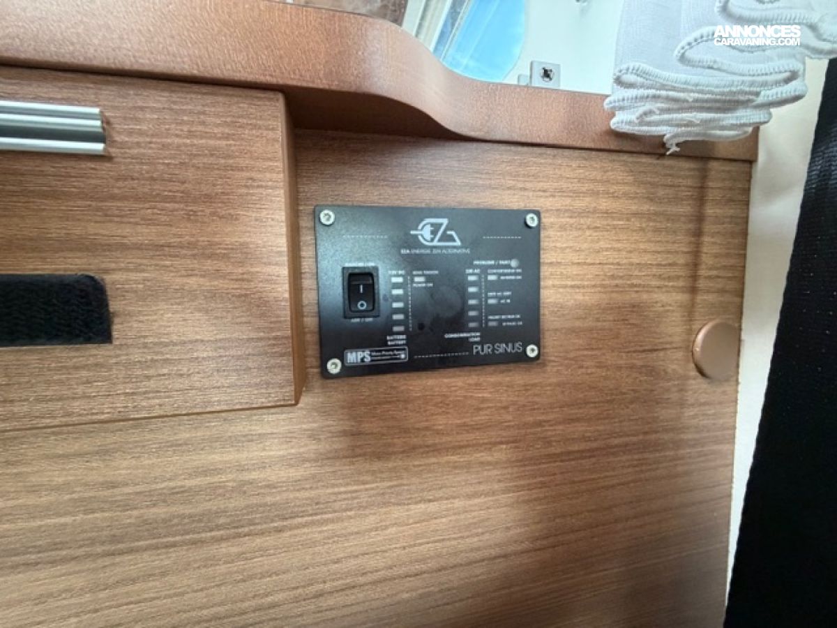 Pack M, Chassis alko, Detecteur de pluie, Alerte pression Pneumatique, Frein à main électrique, 2 télévisions, Soute réglable en hauteur, Moustiquaire de porte cellule, Batterie Lithium 160 AMP, Convertisseur 2 000W, Station multimédia /caméra de recul, Rétroviseur double optique, Hotte aspirante, Marche pied conducteur et cellule électrique, Porte vélo de soute, Occultant pare brise, Isolant extérieur sur mesure Clairval, 2 batteries AGM, Kit lino, Grand frigo congélateur, Volant multifonction, Antenne sat auto, Boite automatique 9 G Tronic, Jantes alliage, Store extérieur