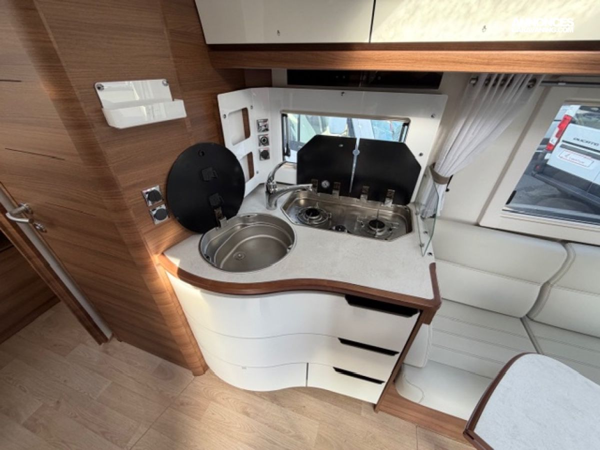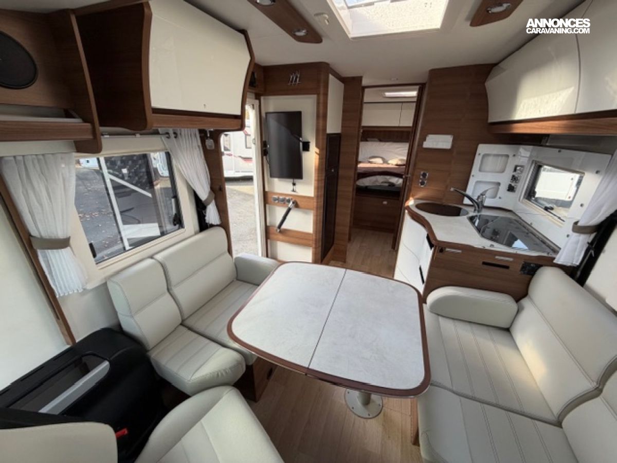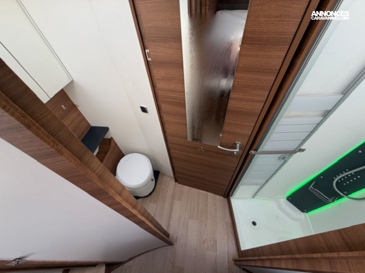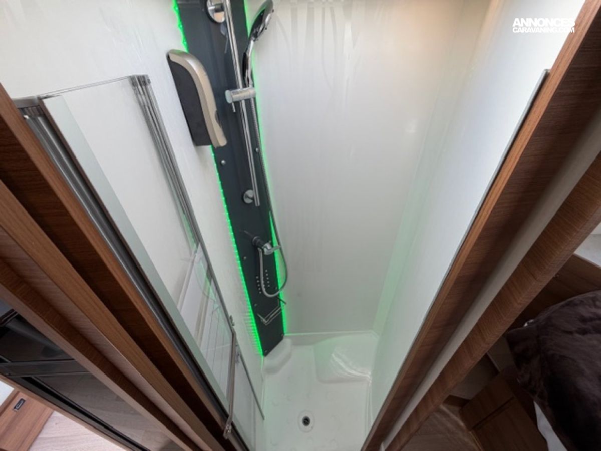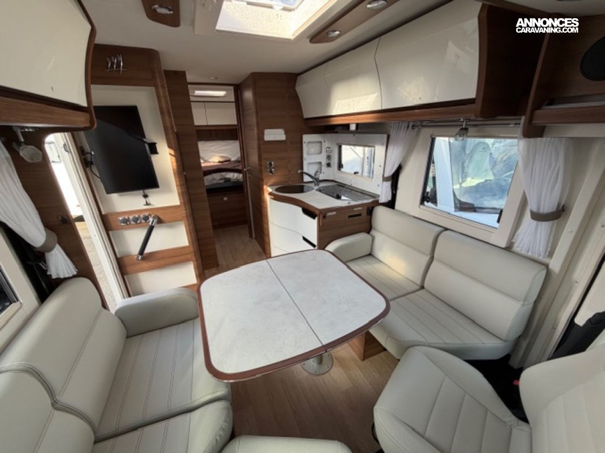 Pack M, Chassis alko, Detecteur de pluie, Alerte pression Pneumatique, Frein à main électrique, 2 télévisions, Soute réglable en hauteur, Moustiquaire de porte cellule, Batterie Lithium 160 AMP, Convertisseur 2 000W, Station multimédia /caméra de recul, Rétroviseur double optique, Hotte aspirante, Marche pied conducteur et cellule électrique, Porte vélo de soute, Occultant pare brise, Isolant extérieur sur mesure Clairval, 2 batteries AGM, Kit lino, Grand frigo congélateur, Volant multifonction, Antenne sat auto, Boite automatique 9 G Tronic, Jantes alliage, Store extérieur