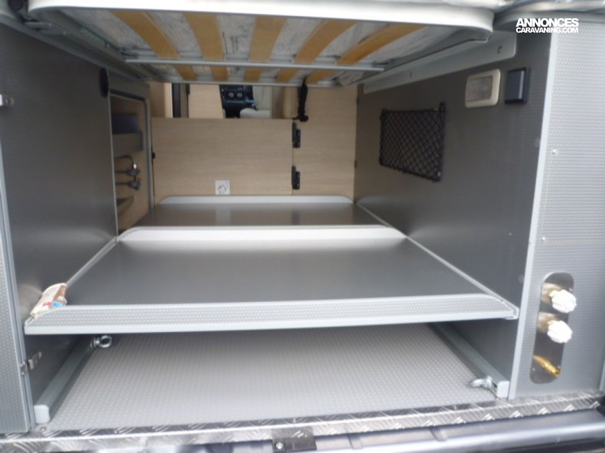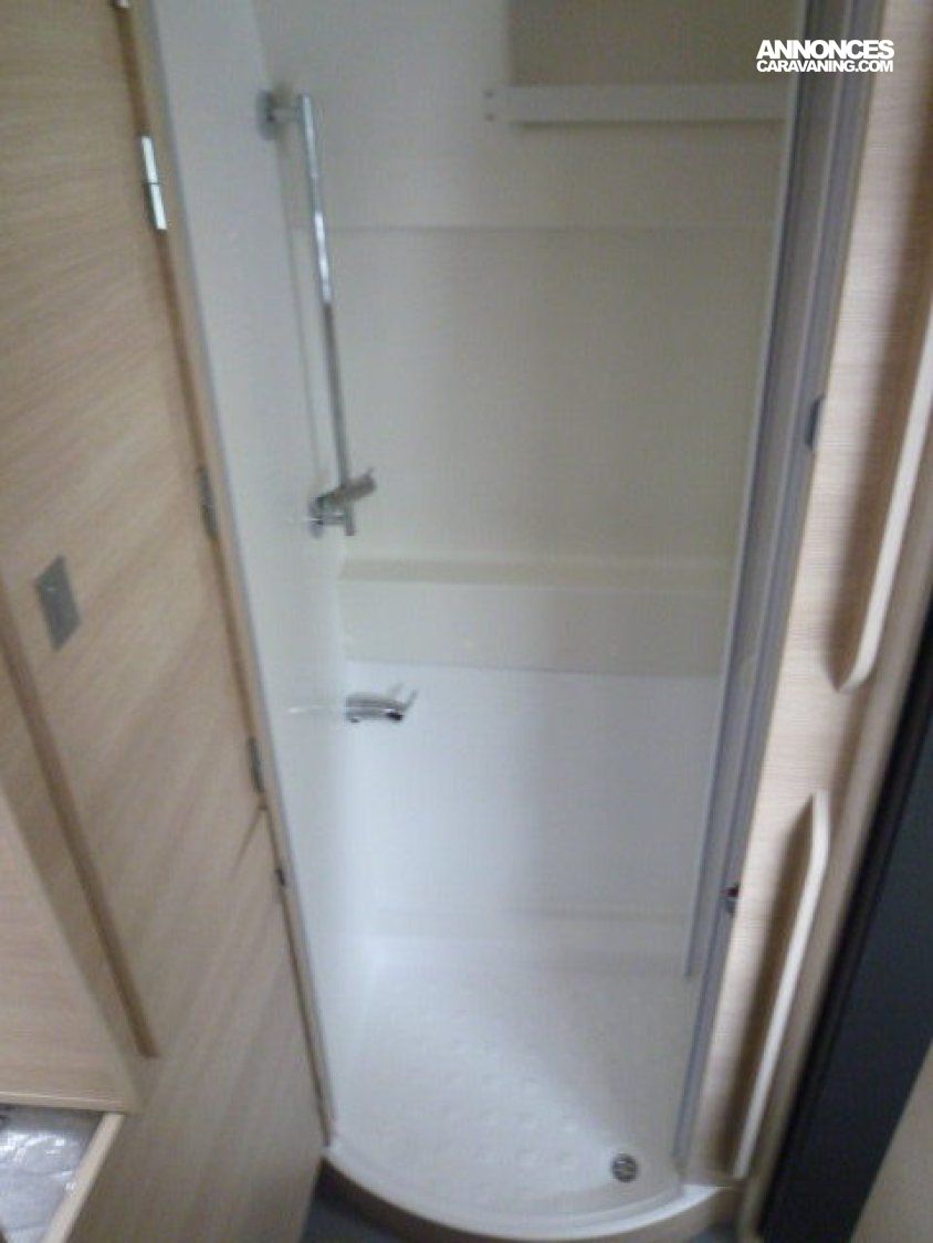 Douche indépendante, Douche extérieur, Lit arrière transversal, Lit dînette avant, Salon avant sièges pivotants, WC Cassette.