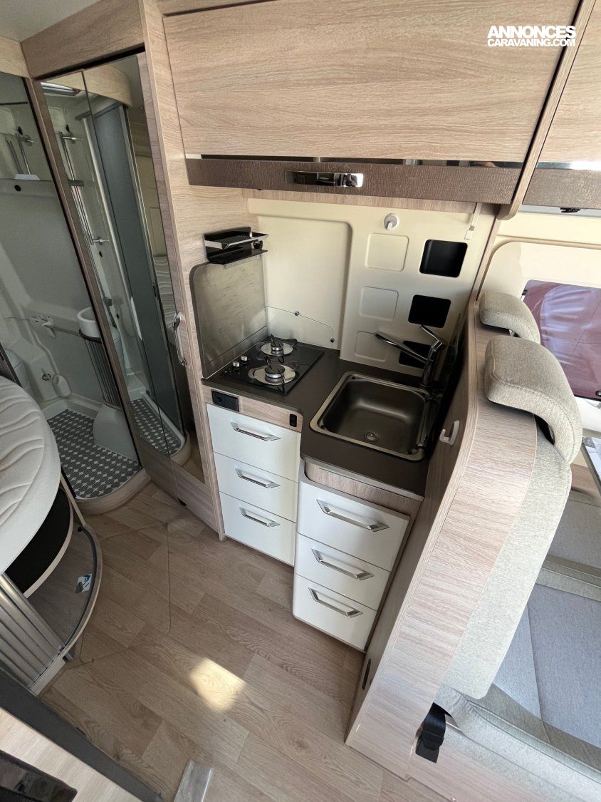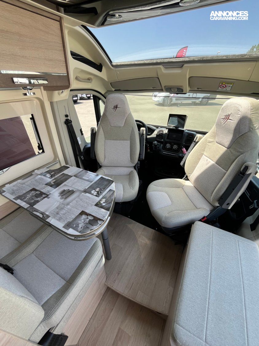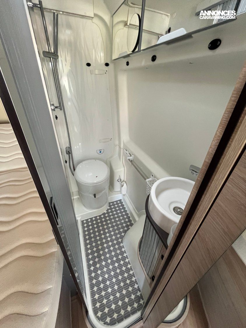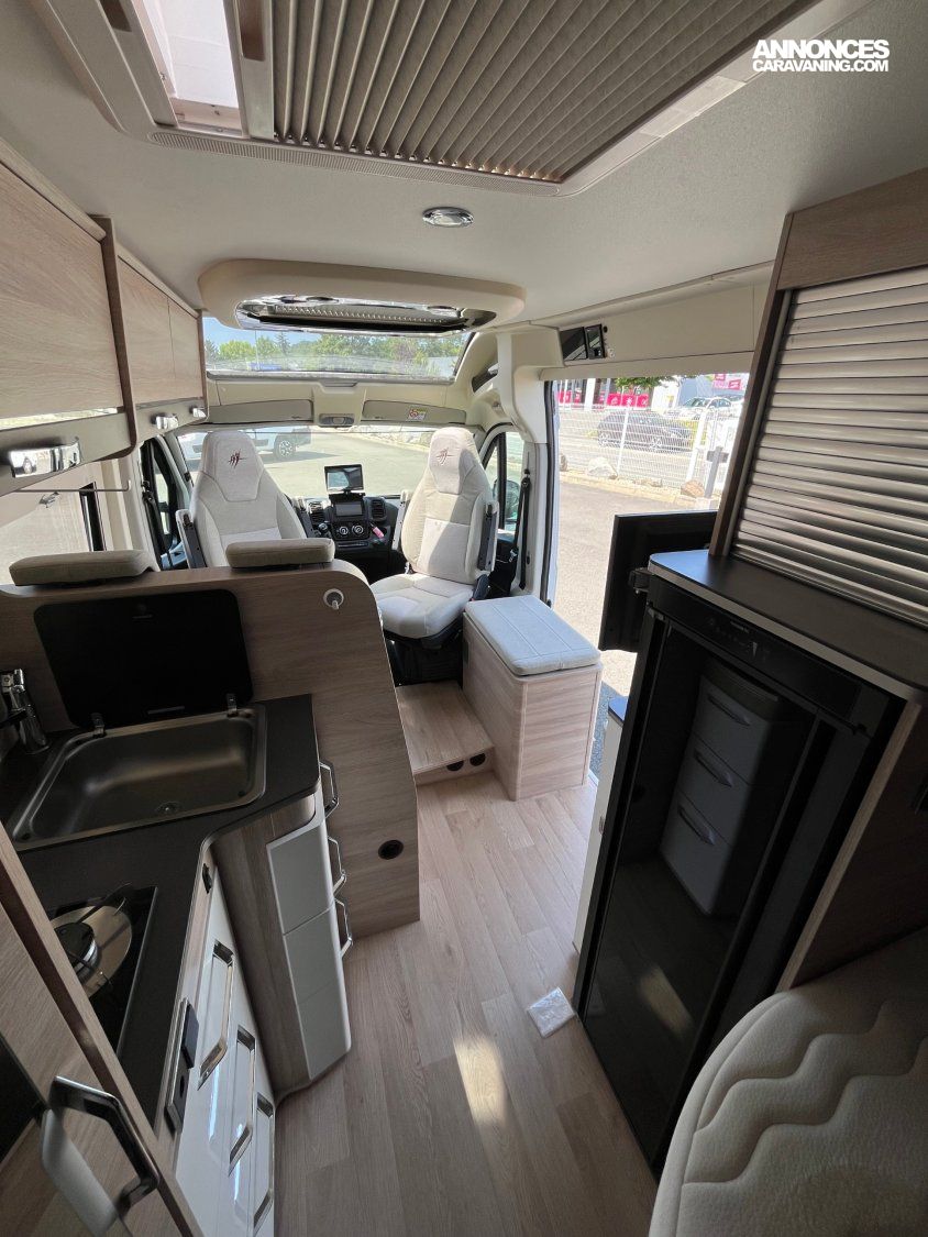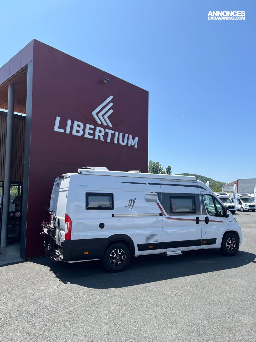 Camera de recul, Climatisation, Toit panoramique, Grand frigo AES 128L, Grande penderie, Lit à la française, Maxi salle de bain à l'arrière, Busbiker, Panneau solaire, Tv, Antenne, Store