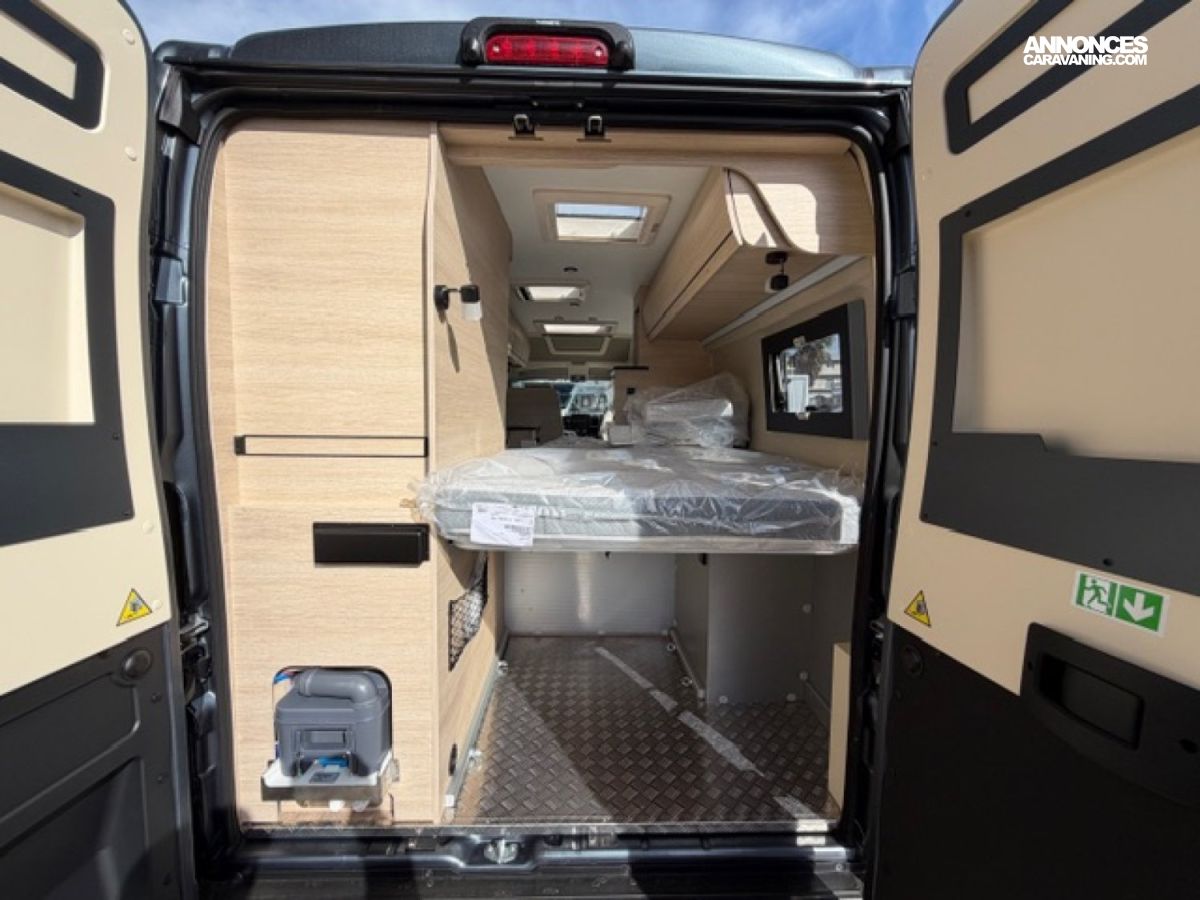 A peine arrivé dans la famille des vans, le nouveau fourgon profilé V62 se distingue déjà. En version anniversaire, il voit tout en grand : des espaces dignes d'un camping-car, une belle penderie lingère, une vaste salle d'eau, un salon spacieux, une cuisine en L, un lit à la française, ...