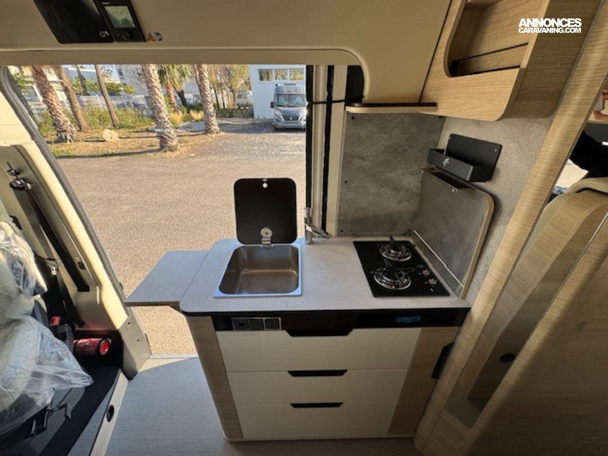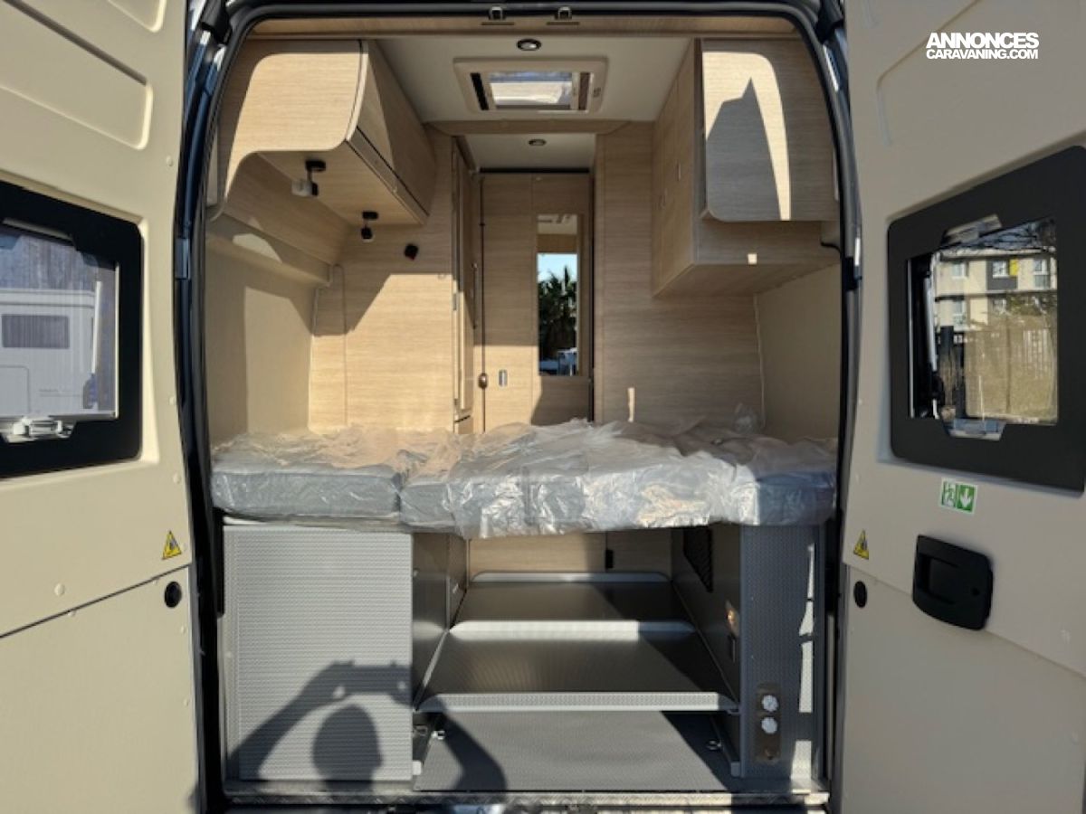 * pack Rapido Van : station multimédia Pioneer écran 6,8" avec caméra de recul intégrée, moustiquaire de porte cellule, inverseur automatique de gaz avec système anticrash, commandes radio au volant, 2ème clef télécommandée (PLIP), Traction + et Hill Descent