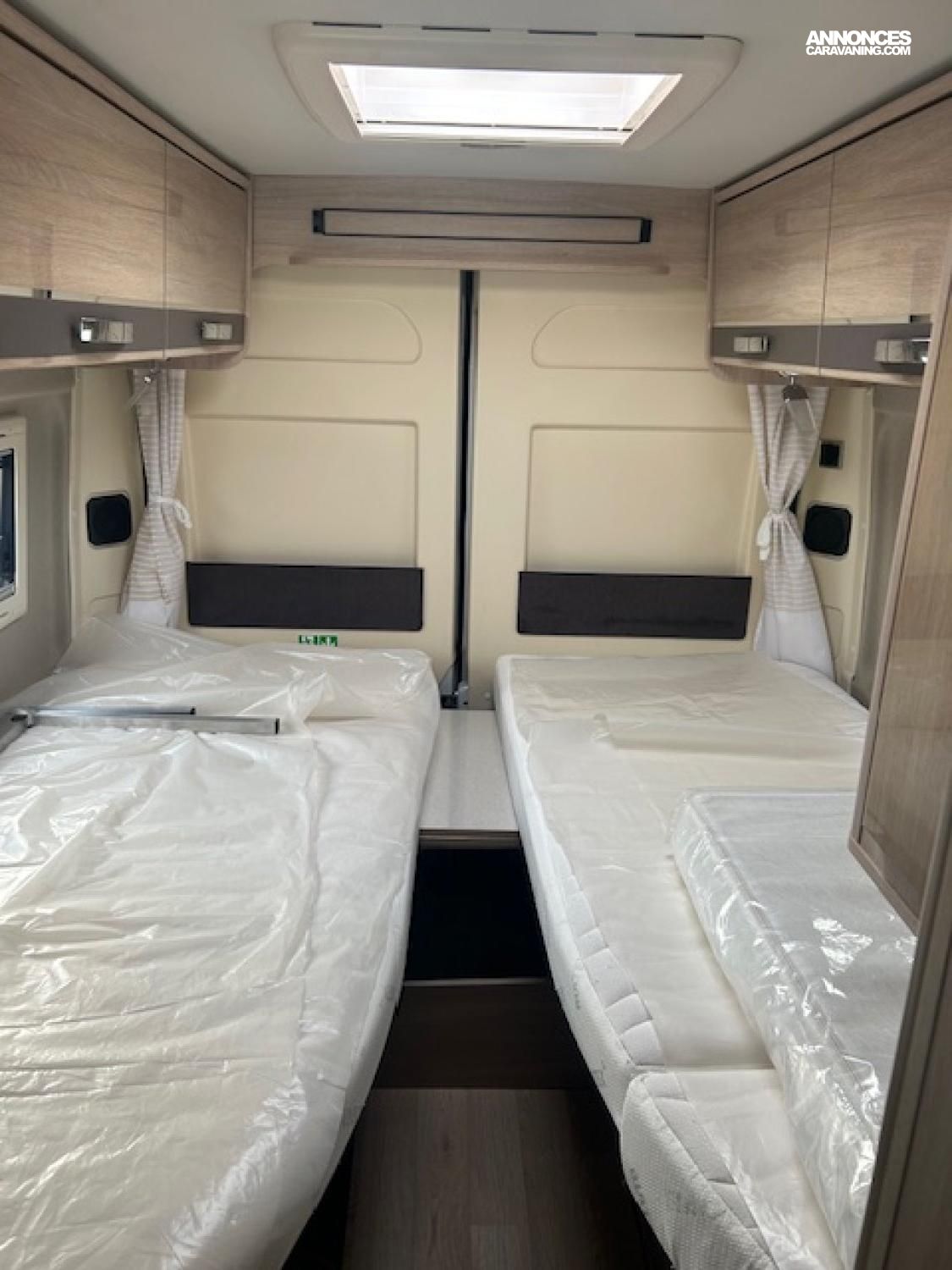 Ce fourgon de première main en très bon état vous propose un confortable couchage en lits jumeaux.