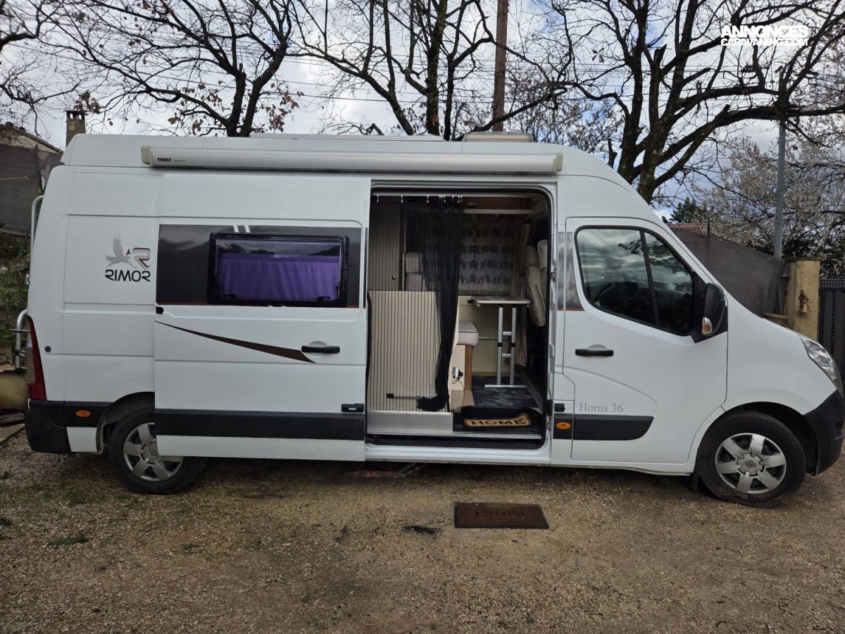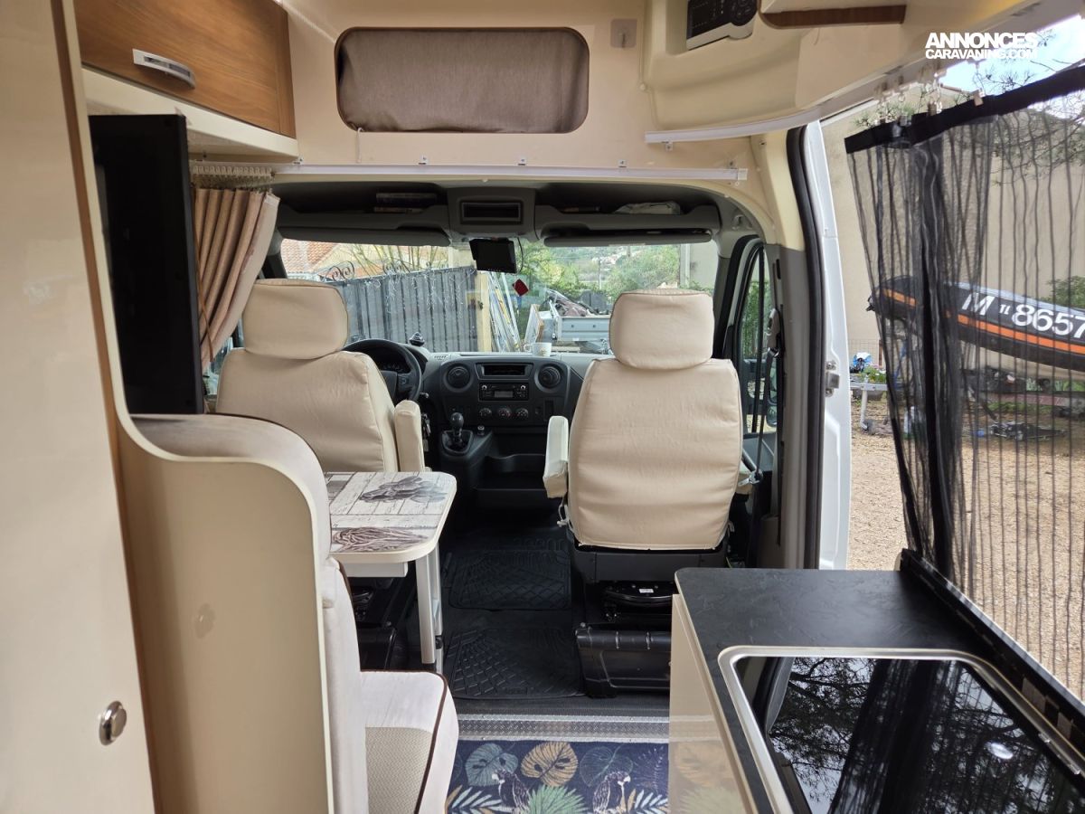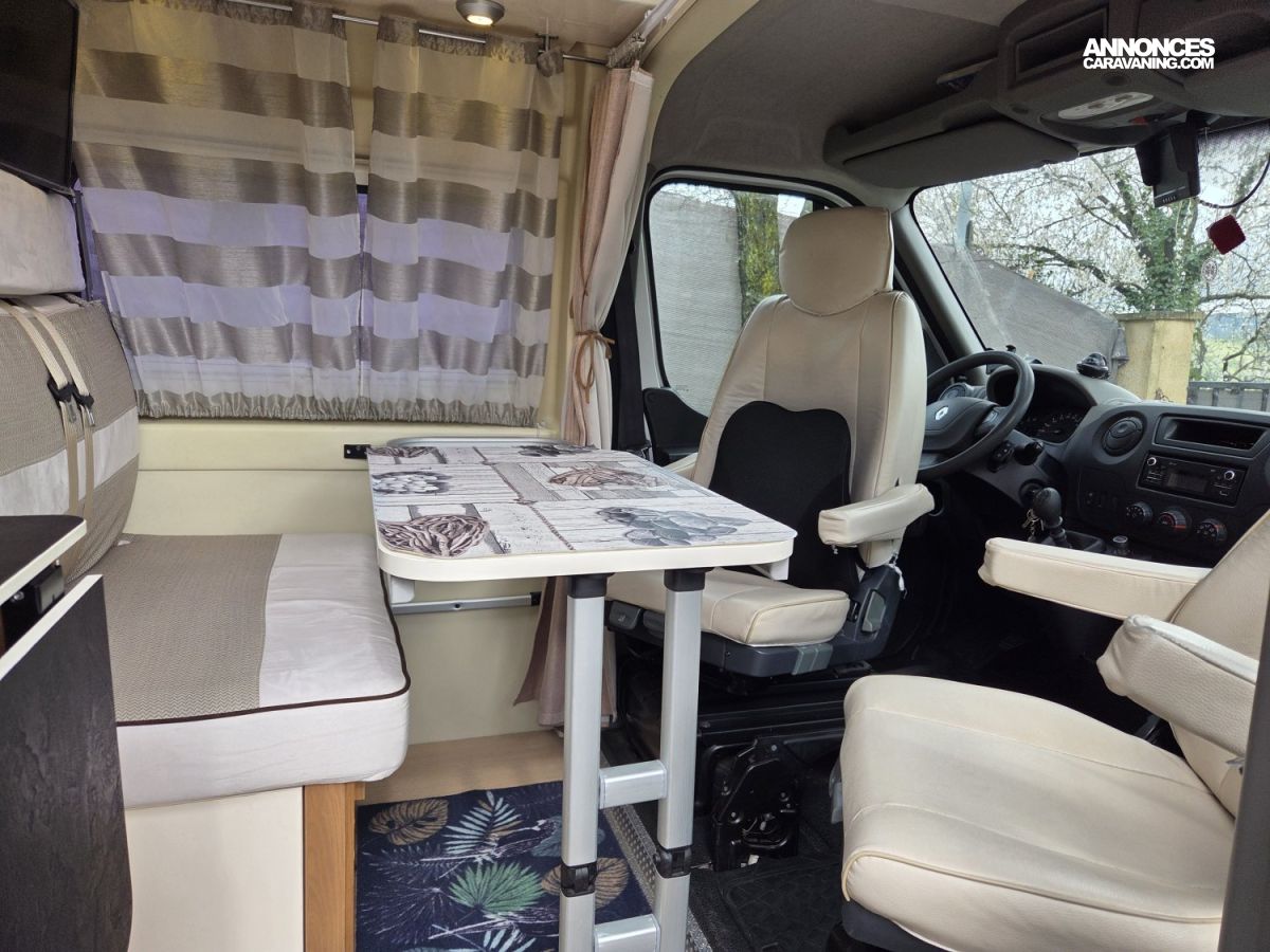 Le Rimor Horus 36 de 2017, basé sur un Renault Master 2,3 L 130 ch, avec seulement 45 500 km au compteur est un fourgon aménagé compact et fonctionnel est en bon état général et idéal pour voyager en toute liberté. Il dispose d’un lit double arrière, d’un coin cuisine équipé avec plaques de cuisson et réfrigérateur, ainsi que d’une salle d’eau avec douche et WC. Le véhicule est également équipé d’un chauffage carburant pour des séjours confortables même en hiver, d’une alarme, de nombreux rangements pratiques, de prises 12 V et USB, et de rideaux occultants pour plus d’intimité. L’éclairage intérieur LED et la banquette transformable en couchage supplémentaire complètent l’aménagement. Ce Rimor Horus 36 est prêt à prendre la route pour de nouvelles aventures et conviendra parfaitement à un couple ou une petite famille à la recherche d’un fourgon fiable et confortable.