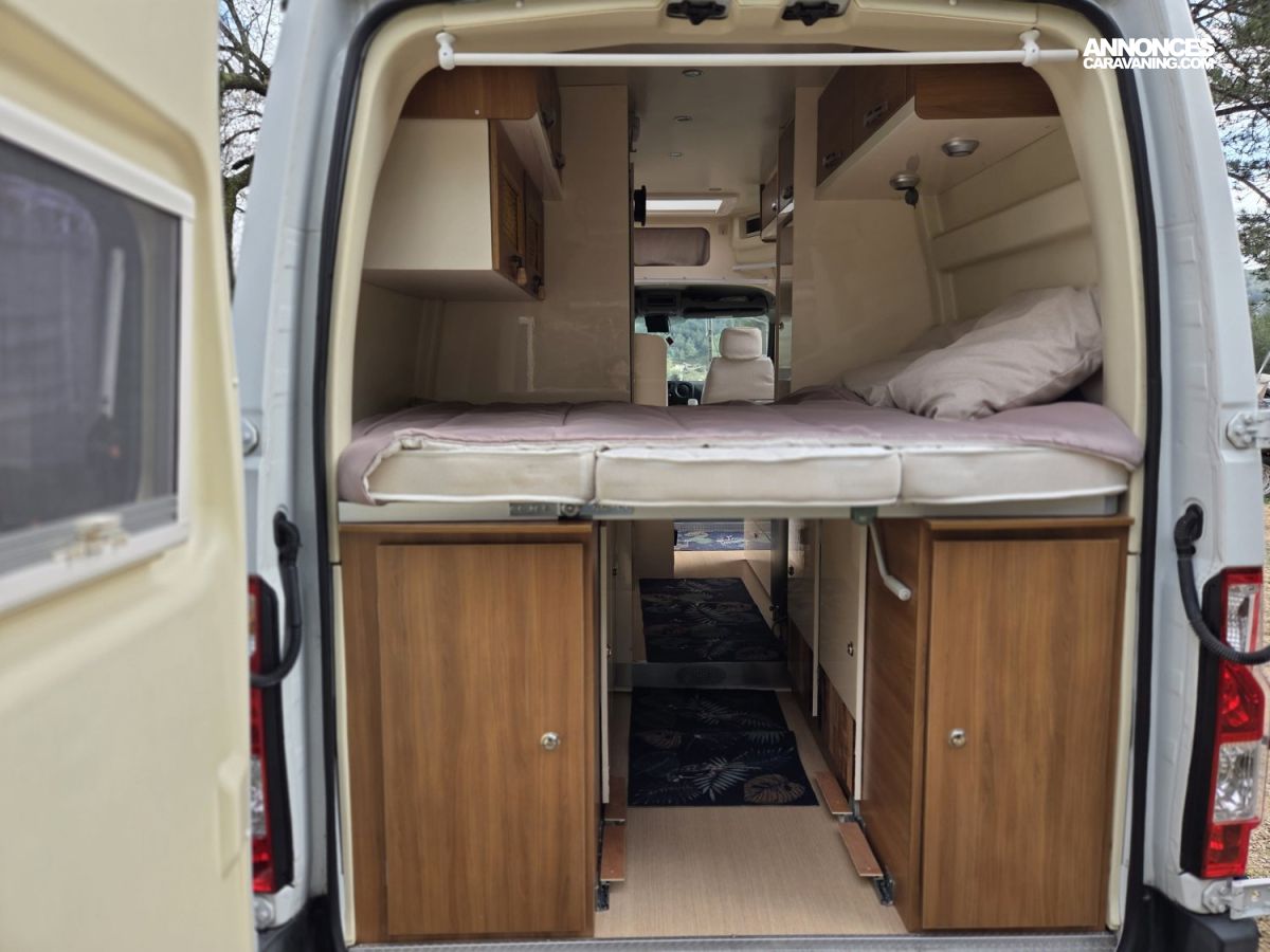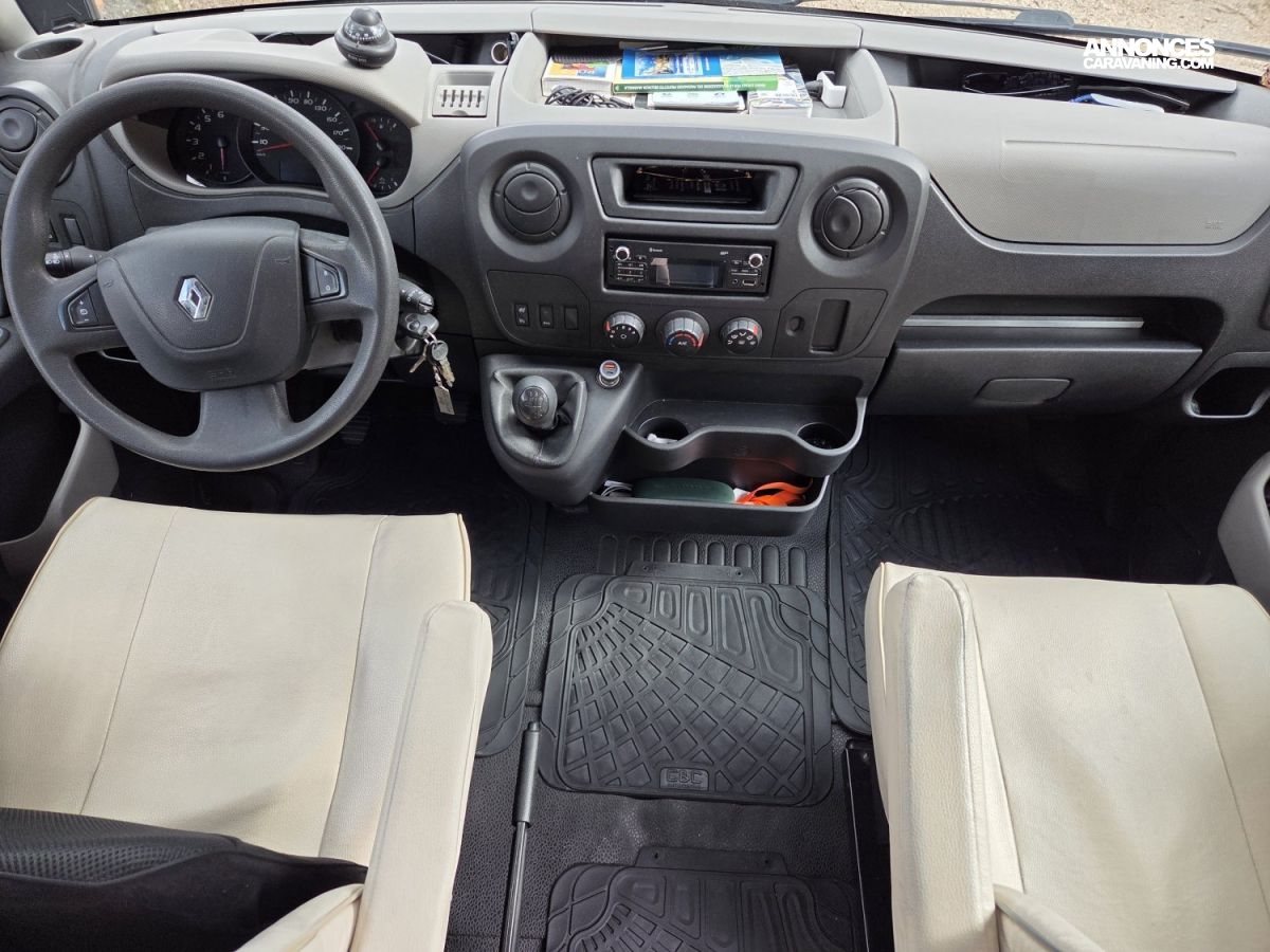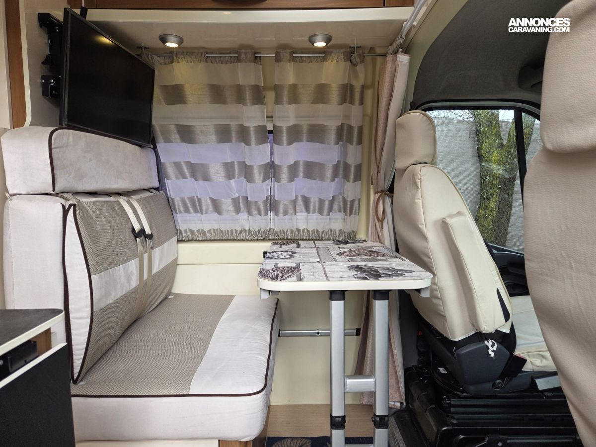 Le Rimor Horus 36 de 2017, basé sur un Renault Master 2,3 L 130 ch, avec seulement 45 500 km au compteur est un fourgon aménagé compact et fonctionnel est en bon état général et idéal pour voyager en toute liberté. Il dispose d’un lit double arrière, d’un coin cuisine équipé avec plaques de cuisson et réfrigérateur, ainsi que d’une salle d’eau avec douche et WC. Le véhicule est également équipé d’un chauffage carburant pour des séjours confortables même en hiver, d’une alarme, de nombreux rangements pratiques, de prises 12 V et USB, et de rideaux occultants pour plus d’intimité. L’éclairage intérieur LED et la banquette transformable en couchage supplémentaire complètent l’aménagement. Ce Rimor Horus 36 est prêt à prendre la route pour de nouvelles aventures et conviendra parfaitement à un couple ou une petite famille à la recherche d’un fourgon fiable et confortable.